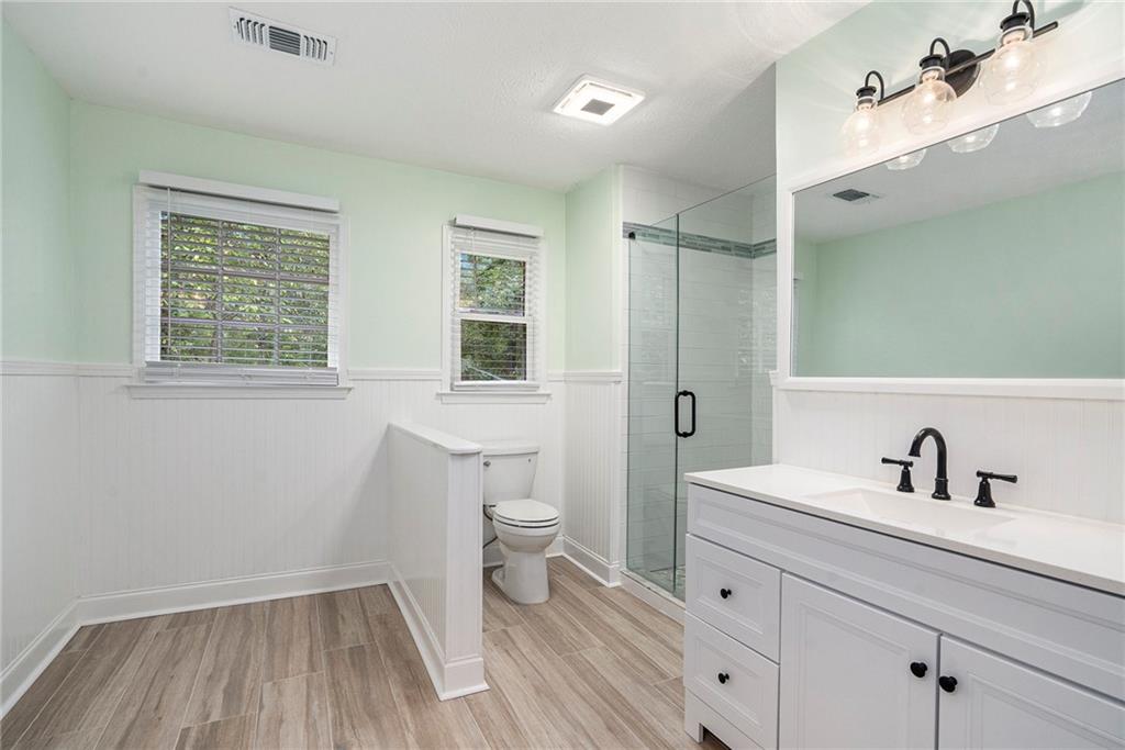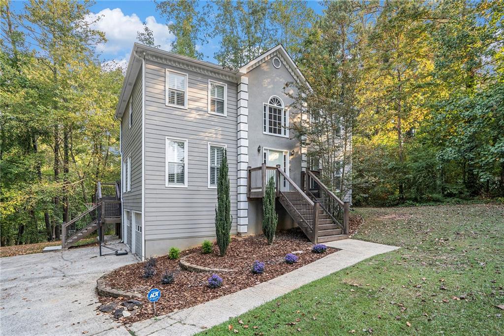 Beautiful Lake Front Home in Acworth. Discover the epitome of lakeside living in this highly sought-after Acworth residence, featuring a platform dock and stunning sunset views. This home boasts an open-concept main level designed for modern living and entertaining. The Main Level offers a renovated Kitchen with a new electric range and updated with modern amenities. The open-concept living and great room area boasts wonderful windows that provide a view to the lake. The gas-stone fireplace and hardwood floors create a warm and inviting atmosphere. The dining area is right off the kitchen to be sure all can gather in the kitchen with plenty of space. Looking for outdoor space this home offers a screened-in porch, a large deck for gatherings, and BBQ fun along with a newly poured 20x20 patio under the deck. Moving up to the Primary ensuite, enjoy a vaulted ceiling with a bath that features a separate shower. Jetted tub, dual vanities, and walk-in closet. 3 additional bedrooms and a newly renovated hall bath provide ample space and options. The terrace level offers a partially finished area perfect for that home office or game room. This home has been impeccably maintained, feel confident that you are buying a well-loved home. Enjoy the New windows, Newer HVAC systems, New hot water heater, New firewall and duct ventilation system, and water regulator, recently replaced the electric range and have Regularly inspected and cleaned the septic system. Imagine the tranquility of sitting on your dock as fall approaches, enjoying the breathtaking sunsets visible from your great room windows, outdoor deck, and screened porch. This impeccably maintained home offers the perfect blend of comfort, style, and stunning lake views.