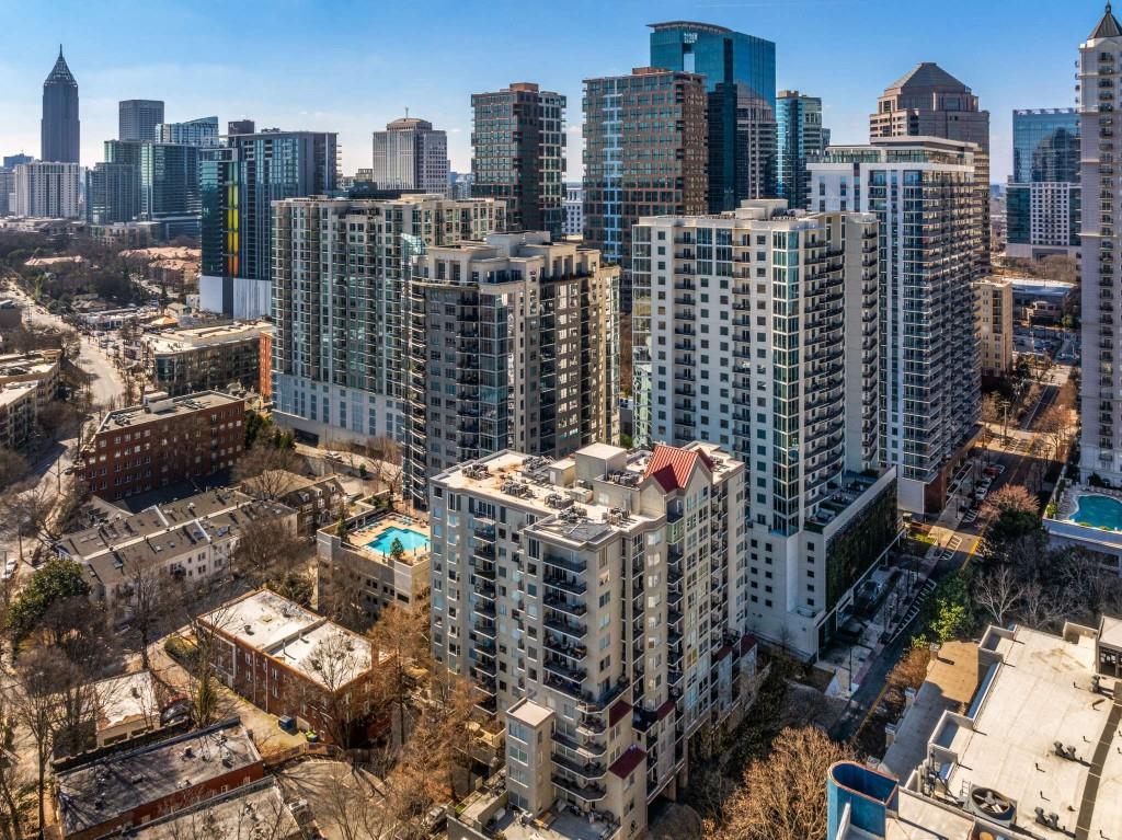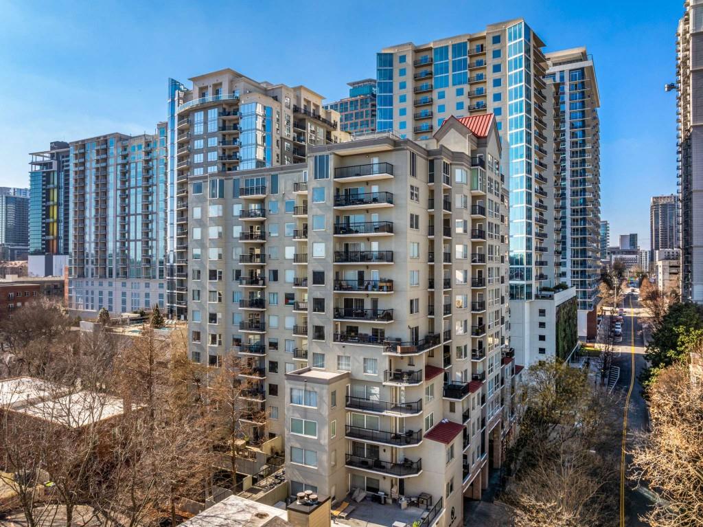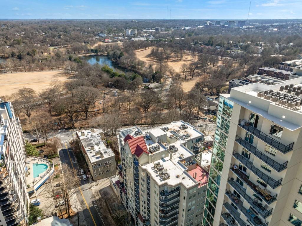 Located just steps from Piedmont Park, this bright and airy 2-bedroom, 1-bathroom condo offers the perfect blend of comfort and convenience in the heart of Midtown Atlanta. As you step inside, you're welcomed by a spacious living room that flows seamlessly into a private balcony, perfect for enjoying the outdoors. The open layout makes moving between rooms a breeze. The kitchen boasts newly installed quartz countertops and a view to both the dining area and balcony. The generously sized owner's bedroom features a charming bay window and a custom Elfa shelving closet. The secondary bedroom or den offers flexibility with plantation shutters, a glass block wall to invite additional natural light, and a wardrobe. The updated bathroom is a highlight, complete with new quartz counters and heated floors for ultimate relaxation. A Miele washer and dryer are included, and you'll enjoy the convenience of your own garage parking space. This home truly has it all convenient location, stylish updates, and a sense of tranquility.