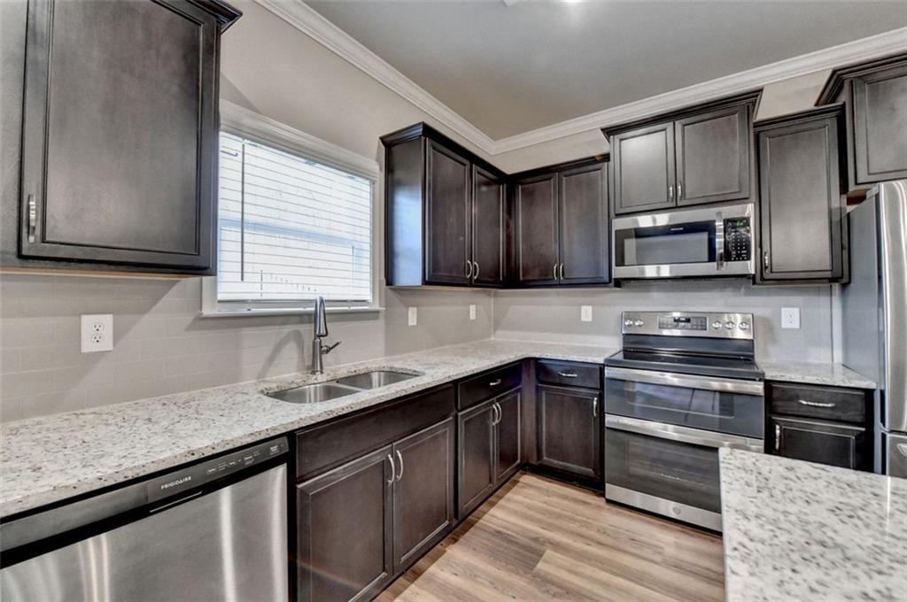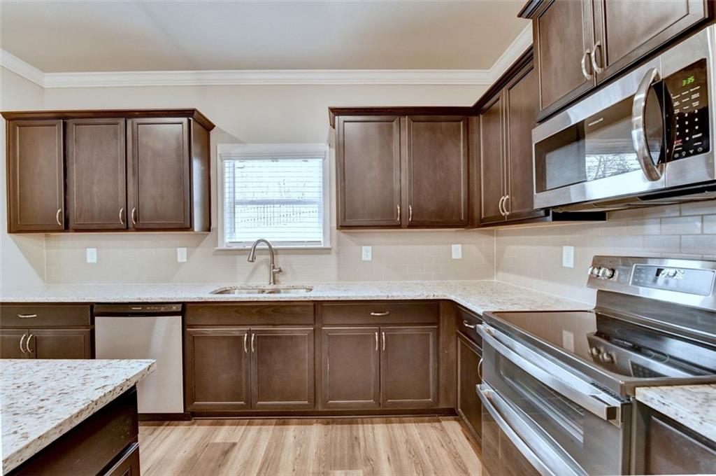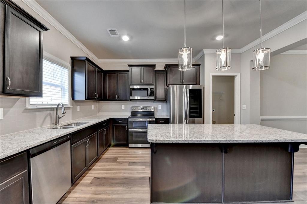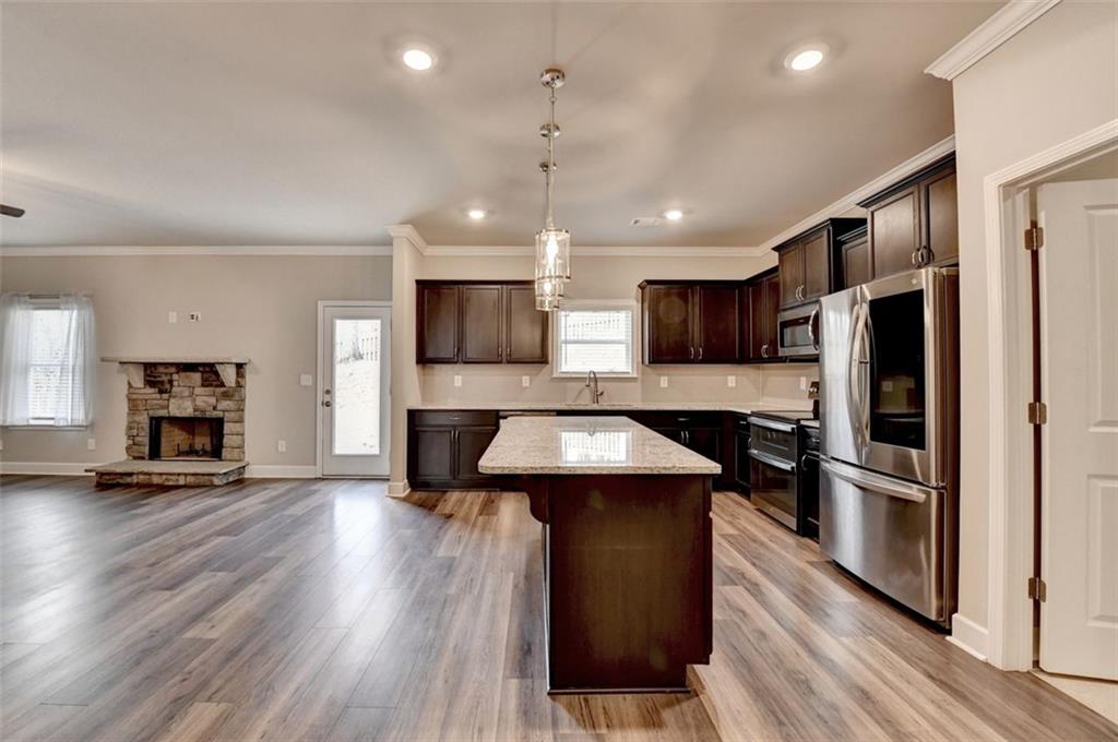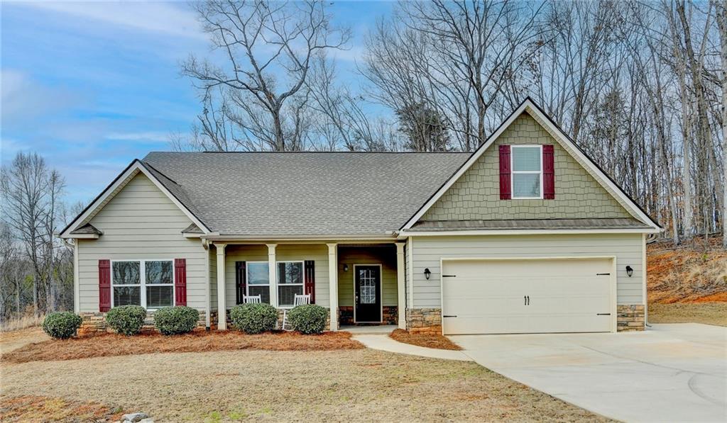 Welcome to the luxurious Avery Ranch plan, nestled in the highly coveted Highland Gates subdivision. Step into a home that exudes sophistication and style with 3 spacious bedrooms and 2 pristine baths on the main level. Upstairs, a bonus room awaits, perfect for your personal retreat or whatever your heart desires. From the moment you enter, the grand foyer opens to a stunning formal dining area, flanked by elegant decorative columns. The heart of this home is its expansive kitchen, featuring a massive center island adorned with sleek pendant lighting. It effortlessly flows into the cozy family room with a wood-burning fireplace ideal for both quiet evenings and entertaining guests in style. The kitchen and bathrooms are graced with luxurious granite countertops, while the main living areas showcase beautiful LVP flooring. Ceramic tile floors elevate the laundry/mud room and all bathrooms, providing both functionality and flair. A dream mud/laundry room, along with a spacious walk-in pantry, add that extra touch of convenience. The Primary suite on the main level is your personal oasis, featuring a tiled walk-in shower, dual vanity cabinets, and a spacious walk-in closet. Two additional generously sized bedrooms down the hall share a perfectly designed full bath. Upstairs, the bonus room is a blank canvas for your vision whether it's a home office, media room, or something in between. The long driveway leads to a two-car garage complete with openers, plus a parking pad for all your guests. Step outside to your private backyard paradise an oversized extended patio perfect for entertaining a crowd, with no immediate backyard neighbors to spoil the view. The large lot is fully fenced for privacy, and the property is just minutes away from North Hall Middle and High School. This isn't just a home; it's a statement. Come see it for yourself you deserve it.