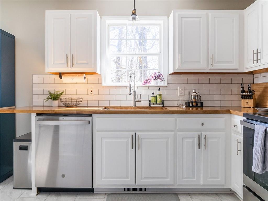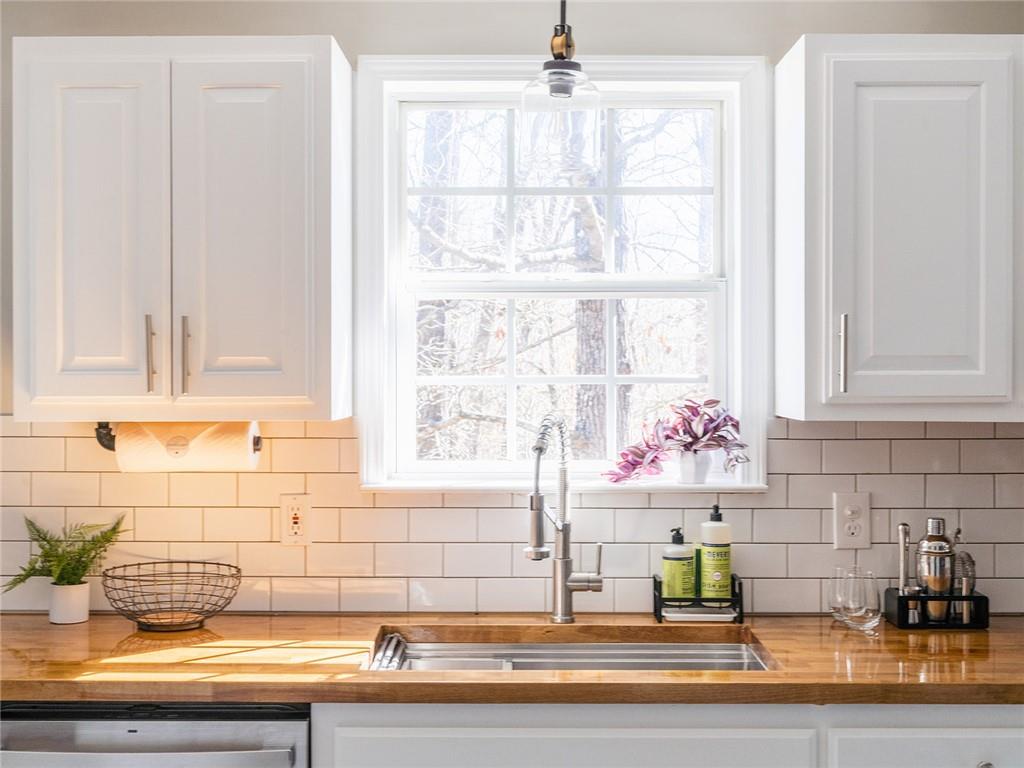 Discover this stunning, updated ranch home just minutes from the beautiful shores of Lake Lanier! Featuring luxury vinyl plank flooring throughout, this home offers a perfect blend of modern style and cozy comfort. The open-concept design creates a seamless flow between the spacious living room, dining area, and kitchen. Enjoy the warmth of a wood-burning fireplace while entertaining guests or relaxing with family. The kitchen is a true highlight, boasting white shaker-style cabinets, sleek stainless steel appliances, and elegant butcher block countertops. Whether you're preparing a gourmet meal or enjoying a casual breakfast, this space is both stylish and functional. With three generous bedrooms and two full bathrooms, this home provides ample space for comfortable living. The primary suite offers a peaceful retreat, while the additional bedrooms are perfect for family, guests, or a home office. Step outside to a large back patio, ideal for grilling, dining, or simply unwinding. The backyard is a private oasis, complete with a fire pit and surrounded by mature trees—perfect for cozy evenings under the stars. Recent upgrades include a brand-new roof (February 2025) and new energy-efficient windows (2023), ensuring peace of mind for years to come. This property is not within an HOA and has been a strong AirBNB property for the seller and can also be a good choice for a long term rental! Conveniently located near Lake Lanier, parks, shopping, and dining, this home is a rare find! Don’t miss the chance to make it yours—schedule your showing today!
