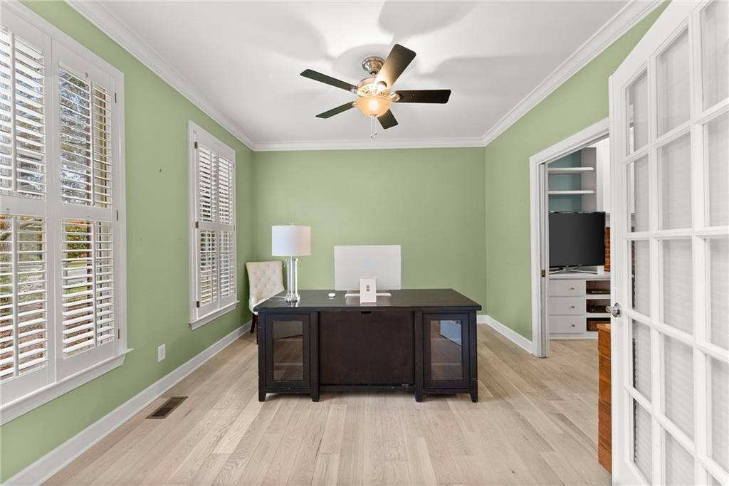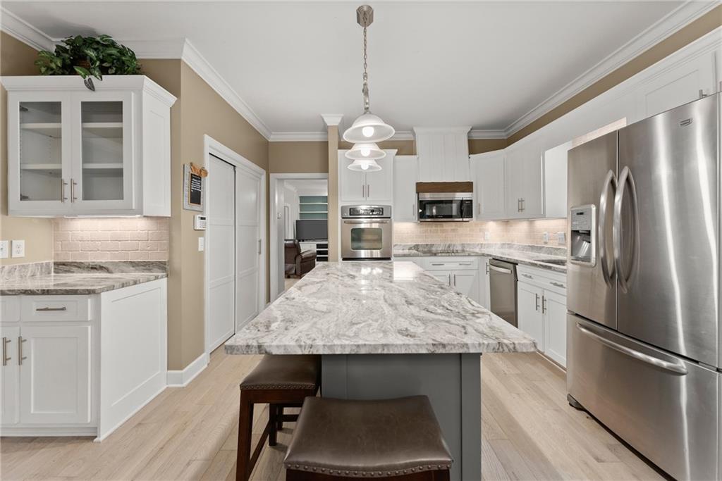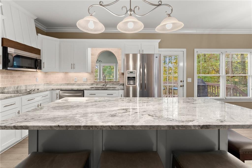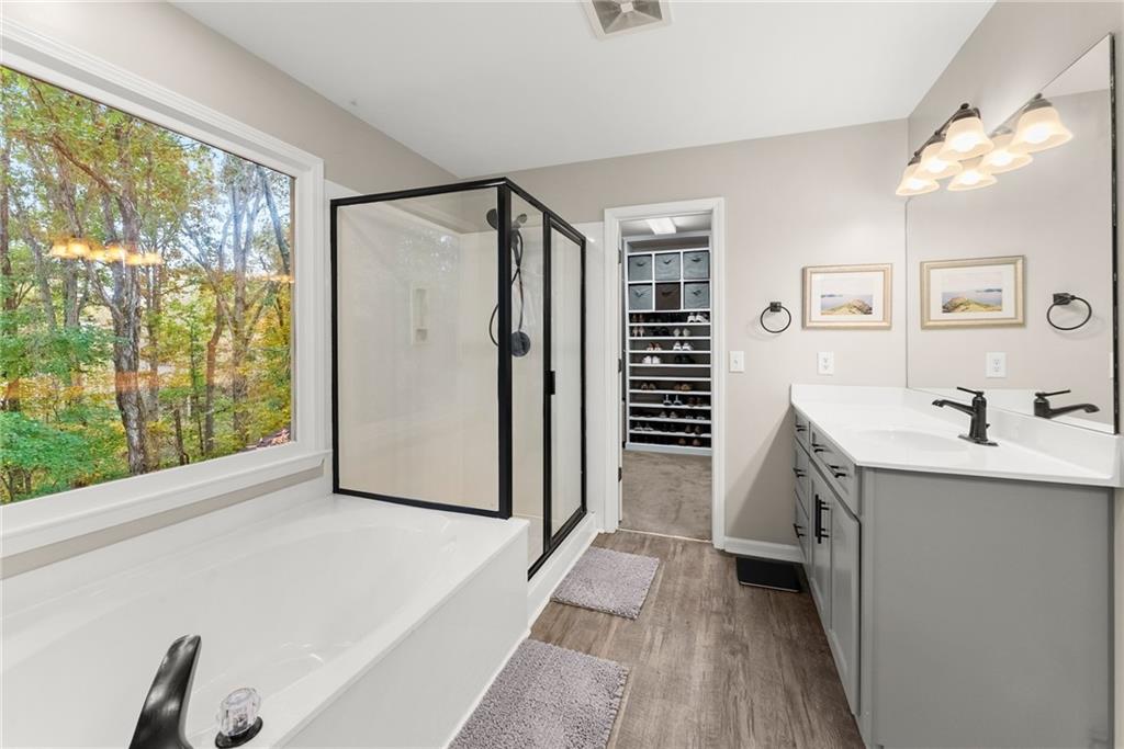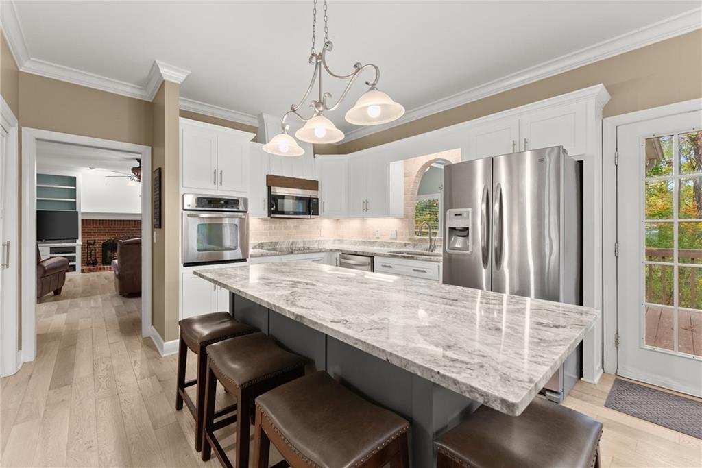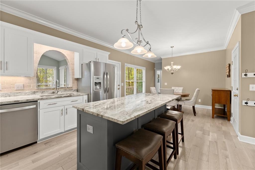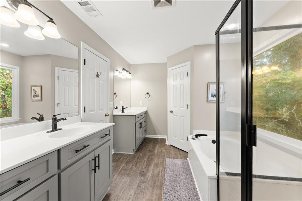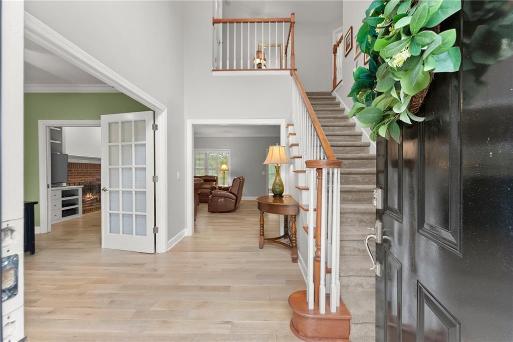 Discover timeless elegance and modern comfort in this beautifully updated home, perfectly situated in the highly sought-after Mount Vernon and North Hall school district. From the moment you step inside the grand two-story foyer, you'll be captivated by the warmth of the freshly updated hardwood floors and the seamless blend of sophistication and functionality. The heart of the home is the fully remodeled kitchen, boasting sleek, modern finishes that make it as stylish as it is practical—perfect for culinary enthusiasts and entertainers alike. The inviting living room, complete with a cozy fireplace, flows effortlessly into the formal dining room, dedicated office, and a cheerful sunroom that opens to a private, fenced backyard—ideal for hosting gatherings or enjoying peaceful moments. Designed with convenience in mind, this home features dual staircases leading to the upper level, where three spacious bedrooms and a versatile bonus room provide endless possibilities for relaxation or productivity. The expansive primary suite serves as a private retreat, offering a tranquil escape at the end of the day. Nestled in a prime location just minutes from downtown and the scenic shores of Lake Lanier, this home offers the perfect blend of quiet suburban charm and everyday convenience. Experience the best of North Hall living—schedule your private tour today!