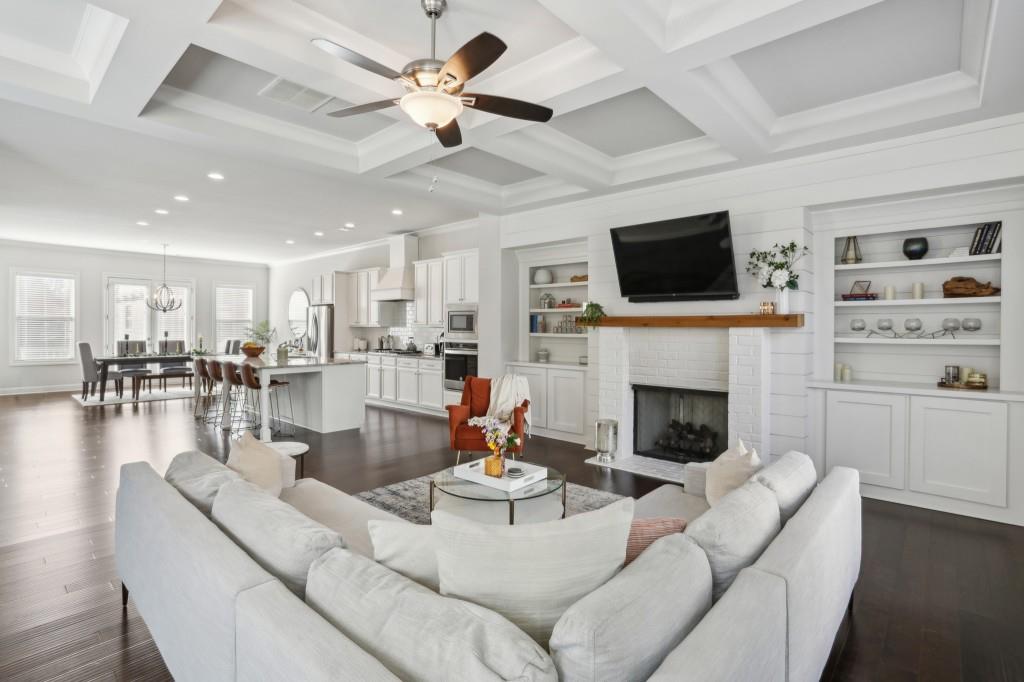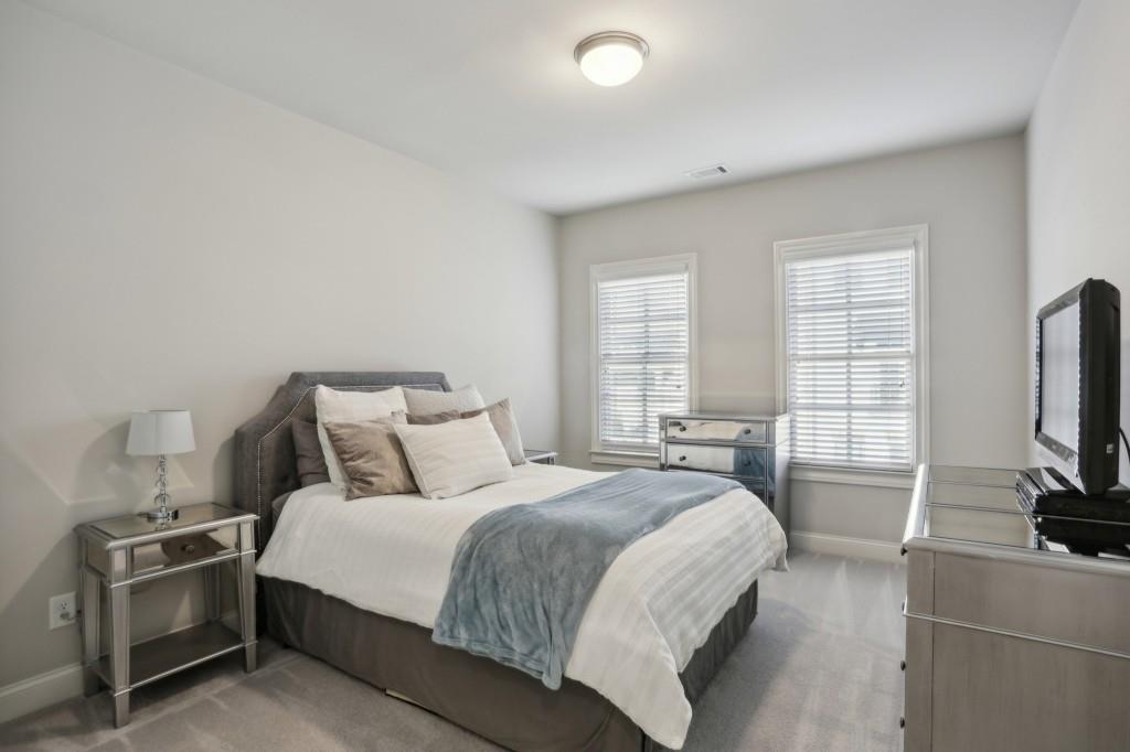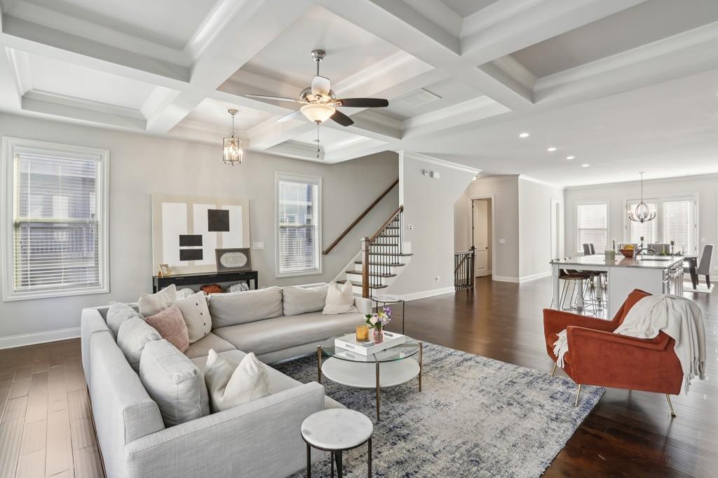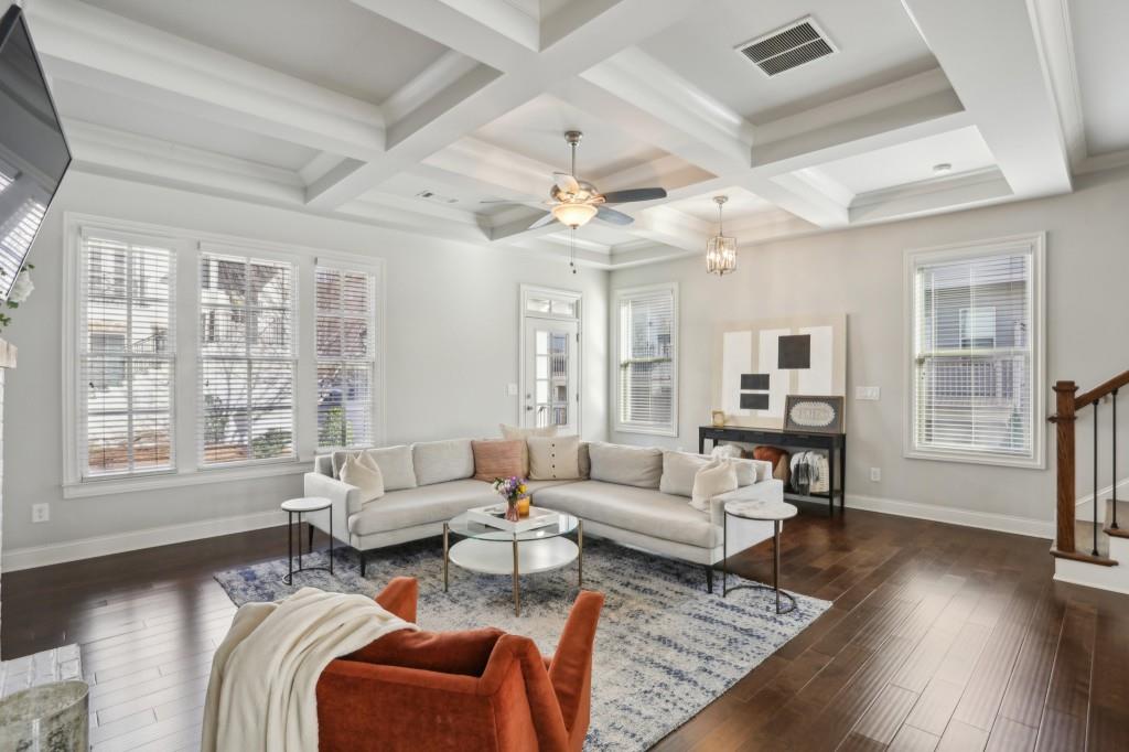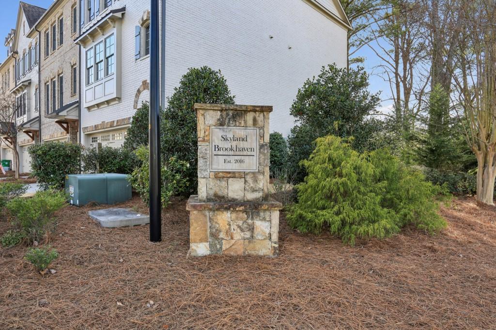 Welcome to this Exquisite End-Unit Townhome with the largest floor plan available in the highly sought-after Skyland Brookhaven community. Perfectly positioned with Scenic Neighborhood Views, this home offers an Ideal Location surrounded by Green Space, close to Top Amenities, and designed with Thoughtful Details throughout. As you step inside, you are greeted by Tall Coffered Ceilings, Dark Hardwood Floors, and an Open Floor Plan perfect for entertaining. The Fireside Family Room, flanked by Custom Built-Ins, is Bright and Airy, leading seamlessly into the Chef's Kitchen featuring a Massive Quartz Island perfect for casual dining and morning coffee. The Classic White Kitchen is adorned with Crisp White Cabinets, Soft Close Drawers, Subway Tile Backsplash, Stainless Steel Appliances, a Sleek White Range Hood, and a Walk-In Pantry to complete the space. Adjacent to the kitchen, the Formal Dining Area offers access to a Private Balcony, ideal for enjoying a quiet book or an evening cocktail. A Convenient Half Bath completes the Main Level Living. Head upstairs to the Luxurious Primary Suite, where Soaring Ceilings and Abundant Natural Light create a serene retreat. The Spa-Like Ensuite Bathroom boasts Double Vanities, a Soaking Tub, and a Separate Glass Shower. A Massive Walk-In Closet completes this stunning suite. Two additional Spacious Secondary Bedrooms, with Plenty of Storage including the Guest Room with a Walk-In Closet a Full Bathroom, and a Laundry Room round out the upper level.The First Floor offers a Versatile Large Bedroom that can serve as a Second Living Space, Media Room, Home Office, or Guest Suite complete with a Full Bathroom. The home also includes an Attached Two-Car Garage with Extra Storage. Living in this community comes with Unmatched Perks! Enjoy access to a Resort-Style Saltwater Pool, Clubhouse, Dog Park, and Fitness Center with a Cycle Bar within the community. An adjacent park offers a Playground, Scenic Walking Trails, Picnic Tables and Sand Volleyball Courts. Just minutes from everything you need Nightlife, Groceries, Recreation, Doctors, and easy access to I-75/I-85! Enjoy the Outdoors at Skyland Park, Brookhaven Park, PDK Park, or browse fresh finds at the Brookhaven Farmers Market on Dresden. Plus, you're surrounded by amazing Local Eats! Grab a slice at Avellino's Pizza, cool off with a sweet treat from Frosty Caboose, fuel up with a Bronx Bagel Buggy breakfast, or savor flavors from Savi, Grindhouse, and even more in Chamblee and the Town of Brookhaven. So many choices, all just around the corner! The owners have poured so much love into this home and will truly miss it, but they're excited for the next owner to enjoy it just as much as they did. Don't miss this incredible opportunity to make this beautiful townhome your own a perfect blend of modern living, tranquility, and convenience!