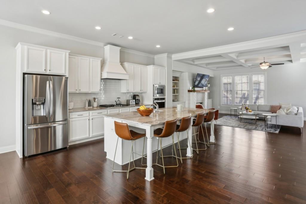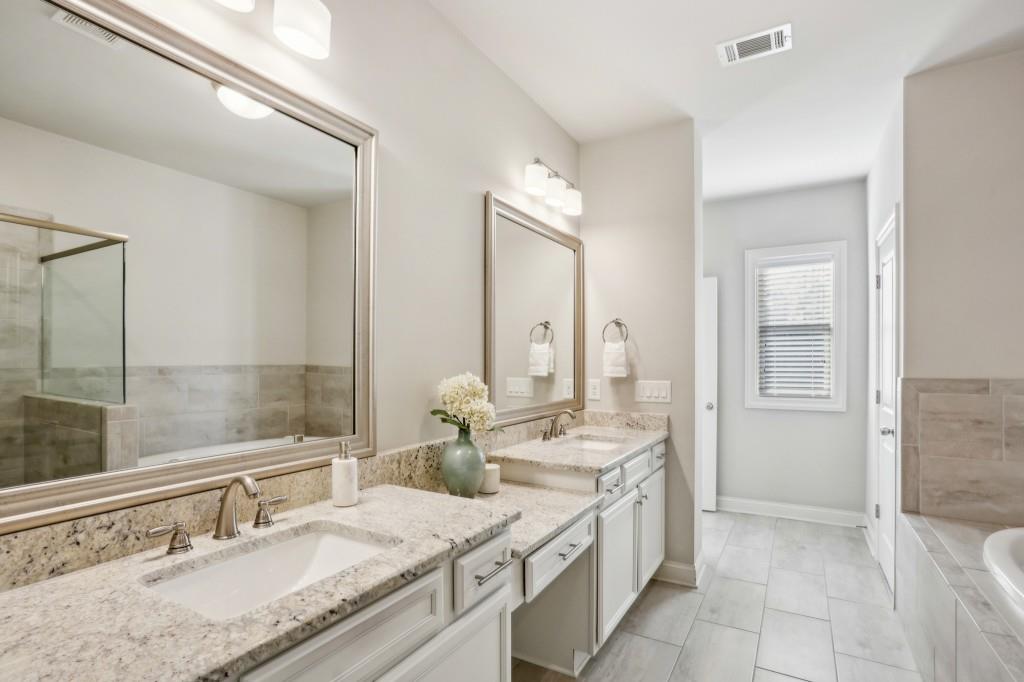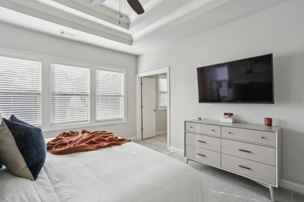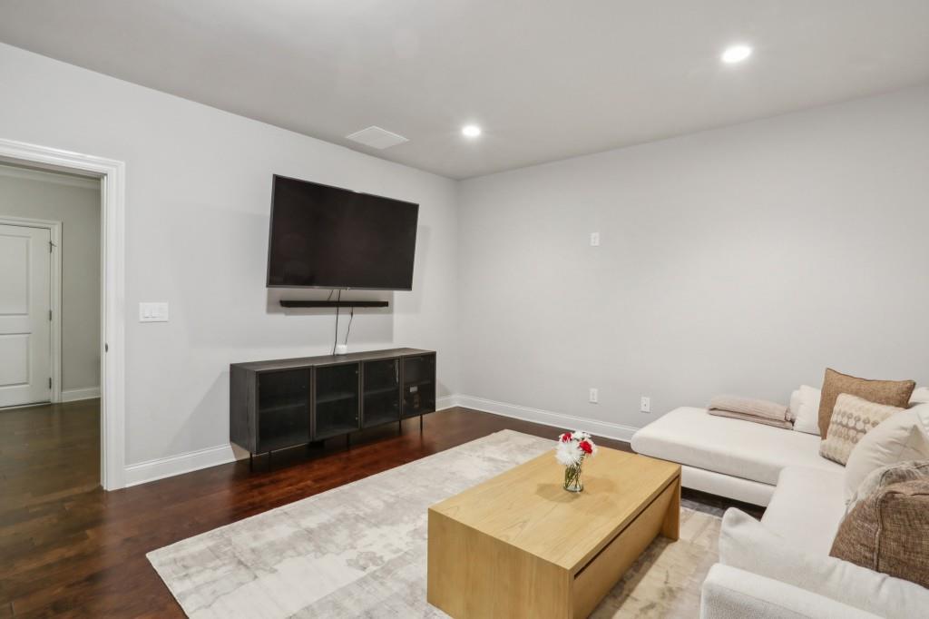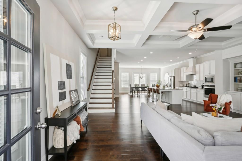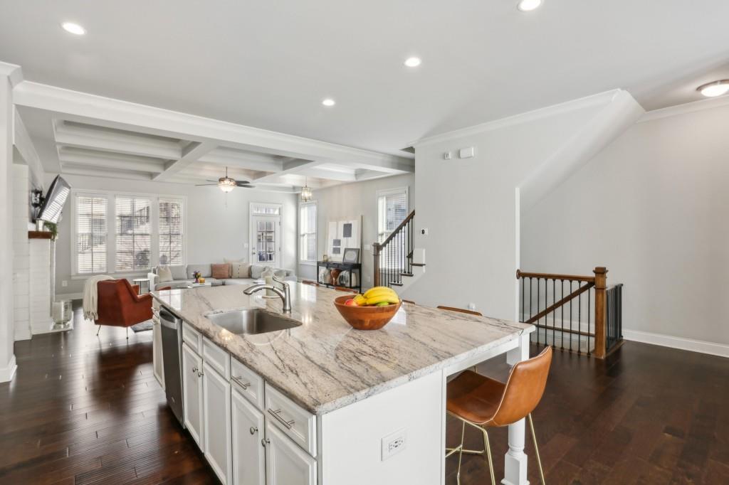 Welcome to this Exquisite End-Unit Townhome with the largest floor plan available in the highly sought-after Skyland Brookhaven community. Perfectly positioned with Scenic Neighborhood Views, this home offers an Ideal Location surrounded by Green Space, close to Top Amenities, and designed with Thoughtful Details throughout. As you step inside, you are greeted by Tall Coffered Ceilings, Dark Hardwood Floors, and an Open Floor Plan perfect for entertaining. The Fireside Family Room, flanked by Custom Built-Ins, is Bright and Airy, leading seamlessly into the Chef's Kitchen featuring a Massive Quartz Island perfect for casual dining and morning coffee. The Classic White Kitchen is adorned with Crisp White Cabinets, Soft Close Drawers, Subway Tile Backsplash, Stainless Steel Appliances, a Sleek White Range Hood, and a Walk-In Pantry to complete the space. Adjacent to the kitchen, the Formal Dining Area offers access to a Private Balcony, ideal for enjoying a quiet book or an evening cocktail. A Convenient Half Bath completes the Main Level Living. Head upstairs to the Luxurious Primary Suite, where Soaring Ceilings and Abundant Natural Light create a serene retreat. The Spa-Like Ensuite Bathroom boasts Double Vanities, a Soaking Tub, and a Separate Glass Shower. A Massive Walk-In Closet completes this stunning suite. Two additional Spacious Secondary Bedrooms, with Plenty of Storage including the Guest Room with a Walk-In Closet a Full Bathroom, and a Laundry Room round out the upper level.The First Floor offers a Versatile Large Bedroom that can serve as a Second Living Space, Media Room, Home Office, or Guest Suite complete with a Full Bathroom. The home also includes an Attached Two-Car Garage with Extra Storage. Living in this community comes with Unmatched Perks! Enjoy access to a Resort-Style Saltwater Pool, Clubhouse, Dog Park, and Fitness Center with a Cycle Bar within the community. An adjacent park offers a Playground, Scenic Walking Trails, Picnic Tables and Sand Volleyball Courts. Just minutes from everything you need Nightlife, Groceries, Recreation, Doctors, and easy access to I-75/I-85! Enjoy the Outdoors at Skyland Park, Brookhaven Park, PDK Park, or browse fresh finds at the Brookhaven Farmers Market on Dresden. Plus, you're surrounded by amazing Local Eats! Grab a slice at Avellino's Pizza, cool off with a sweet treat from Frosty Caboose, fuel up with a Bronx Bagel Buggy breakfast, or savor flavors from Savi, Grindhouse, and even more in Chamblee and the Town of Brookhaven. So many choices, all just around the corner! The owners have poured so much love into this home and will truly miss it, but they're excited for the next owner to enjoy it just as much as they did. Don't miss this incredible opportunity to make this beautiful townhome your own a perfect blend of modern living, tranquility, and convenience!