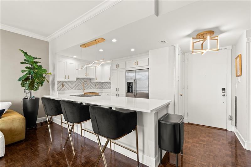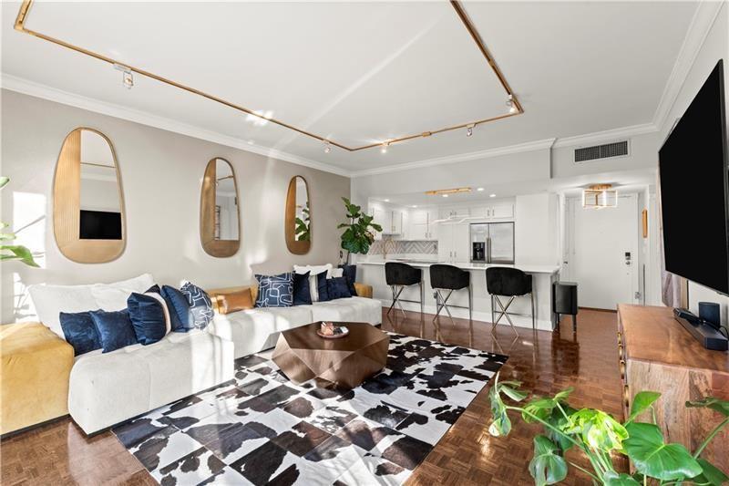 Absolutely STUNNING condo in amazing Buckhead / Midtown location. This unit will not disappoint even the most discerning homebuyer with pristine updates galore. It features a gorgeous designer kitchen with stainless steel appliances, thoughtfully selected stone countertops, crisp easy-close white cabinets, a hidden washer and dryer, as well as an expansive and inviting breakfast bar. The large open living / dining room space has custom lighting, high ceilings and plenty of natural light. The well-sized bedroom is adjoined to the sunroom that boast floor to ceiling windows. Let's not forget about the south facing view that overlooks the community swimming pool and the midtown skyline. If you want to feel like you are on vacation in your own home, this is THE condo for you. The charming and close knit community is perfect for someone who desires to be in the mix of it all, but nestled quietly a few blocks away in privacy. Just a short walk to the Atlanta Beltline Trail, parks, dining, shopping, Piedmont Hospital, Marta and more. Super convenient location with easy access to Buckhead, Midtown, Downtown, Piedmont Park, Interstates 85 and 75 and all that Atlanta in town living has to offer. The gated underground deeded parking ensures both convenience and peace of mind... Of which this unit includes a deeded dedicated parking space. Don't miss out on this incredible opportunity to immerse yourself in the vibrant in-town living experience. Schedule a viewing today and embrace the unparalleled charm and convenience this home has to offer!
