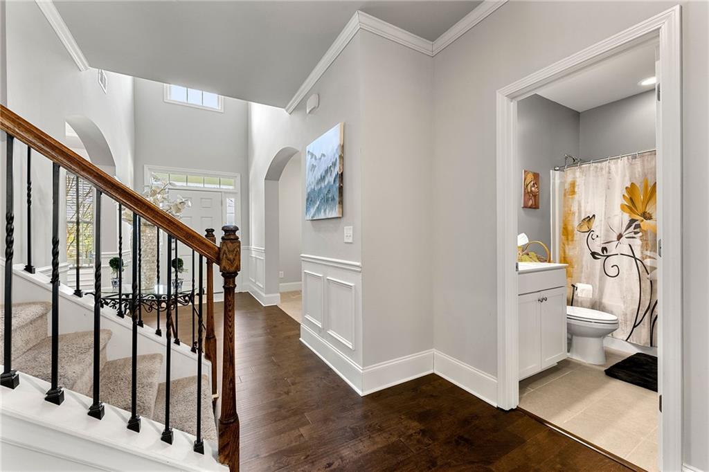 Welcome to this stunning 5-bedroom, 3-bath home in the desirable Tributary at New Manchester community. This meticulously maintained property boasts a private and peaceful wooded view, offering a serene escape from the hustle and bustle. Better than new, this home is filled with natural light and features an open floorplan perfect for modern living. On the main level, you'll find a guest bedroom, a spacious family room with a cozy fireplace, and a chef's kitchen equipped with a smart refrigerator, gas cooktop, double oven, and microwave. Upstairs, there are three additional bedrooms and the luxurious owner's suite, which includes a huge sitting room with a fireplace, a garden tub, separate shower, double vanity, and a large walk-in closet. The full basement is stubbed and ready to be finished, providing endless possibilities for customization. Monthly HOA dues include high-speed internet, TV service, and access to community amenities such as the swimming pool, tennis courts, clubhouse with gym, and two playgrounds Don't miss out on this incredible lifestyle opportunity!
