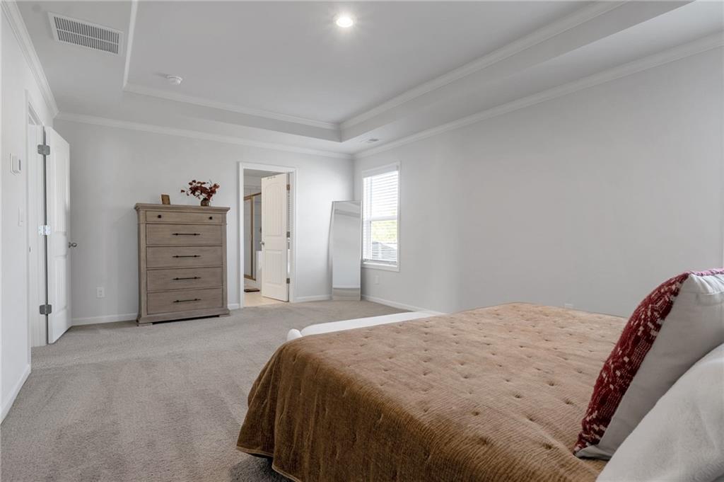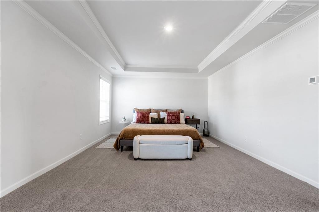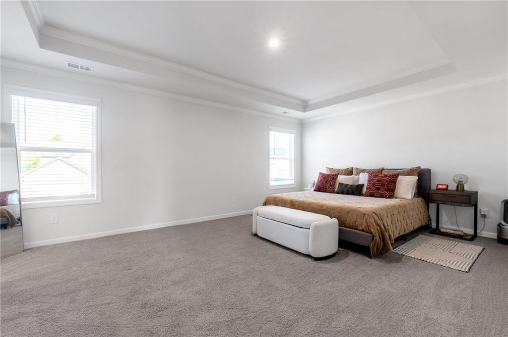 Your search stops here! Welcome home to this stunning property in the sought after Tributary community. With 5 bedrooms/3 bathrooms, this elegant floorplan offers so much space, style and comfort for any homeowner. The main level boasts a cozy bedroom with a huge closet and full bath perfect for guest retreat. Very stylish flex room which can be used as a formal dining room or a home office complimented with coffered ceilings. A very modern kitchen boasts top of the line stainless appliances to stay including refrigerator, wall oven and microwave, chef’s cooktop and dishwasher with a great walk-in pantry. The kitchen island easily seats 4-5 guest along with the enormous dining area ideal for casual or elegant dining. You will be in awe of the huge loft area on the second floor which can serve as a playroom or additional family room perfect for movie nights with the family. All 3 secondary bedrooms are oversized with tons of closet space. The master retreat is a dream with trey ceilings and more space than you can imagine. The master bath features double sinks, huge oversized shower with bench and spacious walk-in closet. Very large fenced backyard and rear 2 car garage further compliment the perfectly landscaped front yard. This home is practically brand new and has been meticulously maintained. Go show and sell!