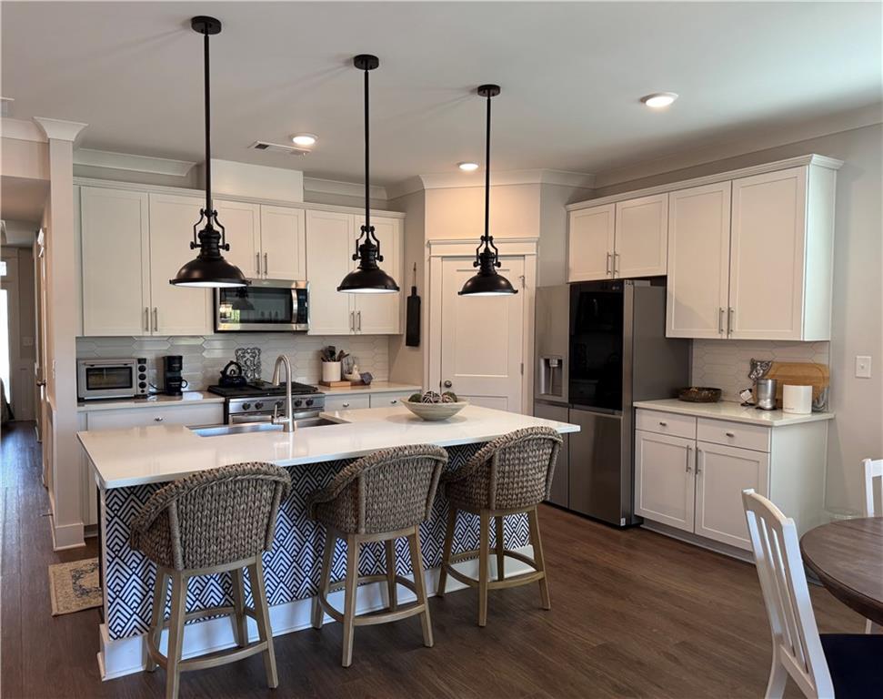 Welcome to 186 Sunshower Ridge, a beautifully maintained 4 bedroom, 3 bathroom home in Sunrise Cove at Great Sky! This thoughtfully designed home boasts a spacious main-level primary suite with upgraded flooring, luxurious primary bathroom with upgraded finishes and walk-through access to the laundry room, two secondary bedrooms, a full guest bathroom with upgraded finishes, and a drop zone area just off the main entry and garage. The kitchen is open to the dining area and family room and features a spacious island, upgraded pendant lights, quartz countertops, crisp white cabinetry, stainless steel appliances, and a walk-in pantry. Upstairs offers an additional guest suite that includes a bedroom, full bathroom, bonus room/flex space, and a full-size unfinished storage room. Step outside to relax and unwind on the covered patio overlooking a fenced back yard with trees/woods and mountain views. This home is located within walking distance of Great Sky’s fabulous resort-style amenities including four tennis courts, four pickleball courts, three pools (including a separate lap pool), a basketball court, playgrounds, walking trails, and rentable event space, as well as a full calendar of community activities and events!