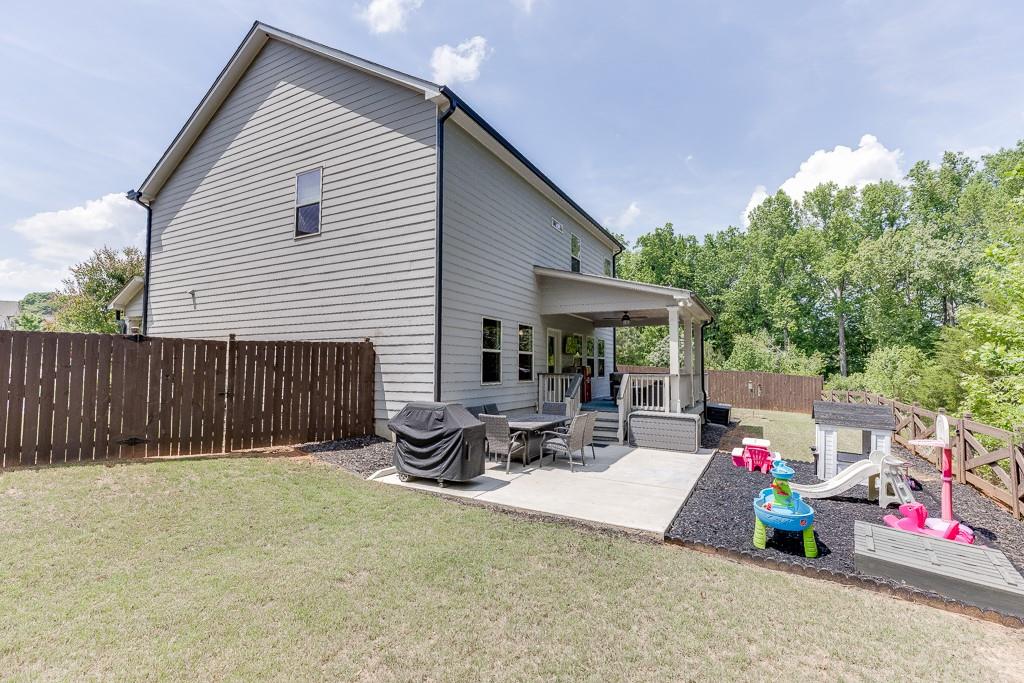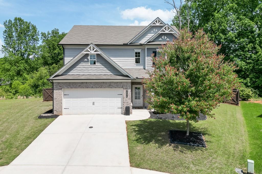 Welcome to this charming 4-bedroom, 2.5-bath home located in the desirable Brighton Park neighborhood of Hoschton, GA. Tucked away on a quiet cul-de-sac, this beautifully landscaped property offers comfort and convenience, with a two-car garage featuring kitchen-level entry. Inside, you'll find a separate dining room perfect for gatherings, and a spacious kitchen complete with white cabinets, a large island, stone countertops, and a breakfast area that opens to the family room. The cozy family room includes a gas log fireplace, creating a warm and inviting atmosphere. All four bedrooms are located upstairs, including the spacious master suite with an ensuite bathroom featuring double vanities and a beautifully designed shower. Step outside to enjoy the covered back deck and private backyard, ideal for relaxing or entertaining. This home is within walking distance to community amenities and just minutes from downtown Braselton and downtown Hoschton.