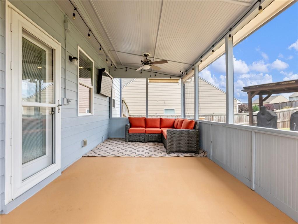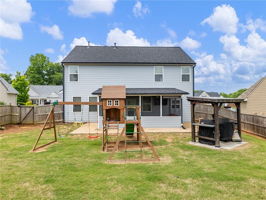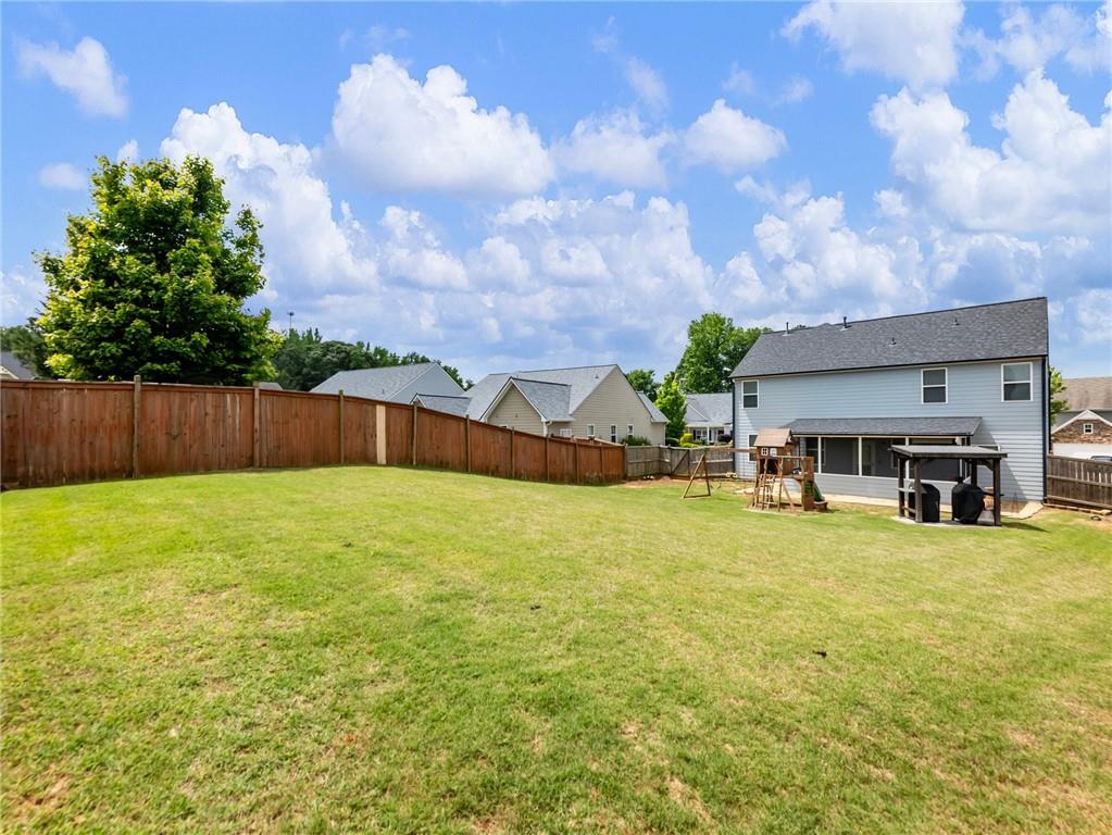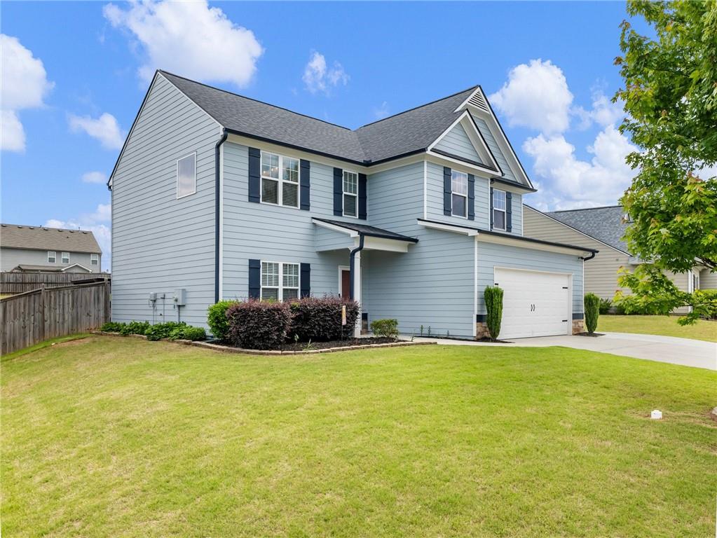 Welcome to this beautiful well maintained 4 bedrooms, 2 and half bathroom home with an open-concept kitchen and living room that is perfect for family gatherings or having friends over for the game. The kitchen offers granite countertops, tile backsplash, large granite center island and a walk-in pantry. The upgraded stone fireplace sets off the living room making it even more enjoyable on those chilly evenings. The separate dining room adds a touch of elegance for those special dinners and or use it as a play / TV room for the kids. The master bedroom features 2 generous walk-in closets, one larger than the other for who has the most shoes. The upgraded tile / stone shower, vanity and mirrors adds to the utopia experience. The 3 other bedrooms are all spacious and have large closets for kid's clothes or those storage boxes. Step outside from the kitchen to an enclosed covered porch great for watching football games or taking the afternoon nap while gazing at your backyard that is enclosed with a privacy fence. This home has been freshly painted with upgraded shutters, newer roof, front stone elevation with a 3rd car parking pad on the side of the extra-large garage. This home is located in the Hoschton school district, near shopping, restaurants, golfing and much more.