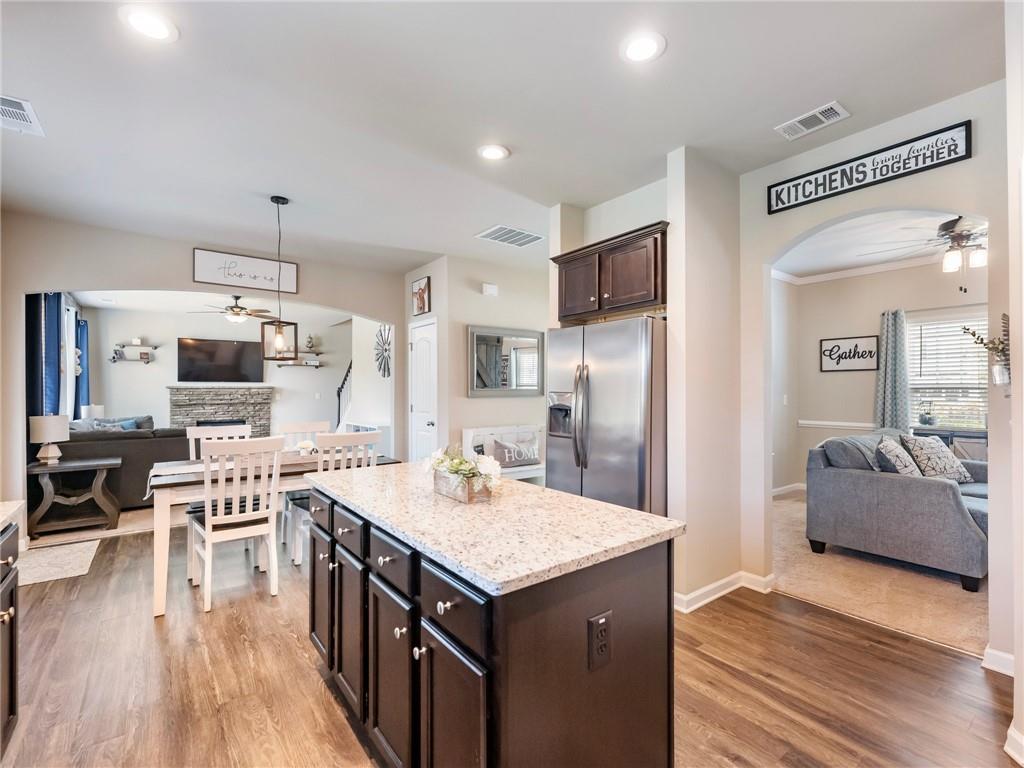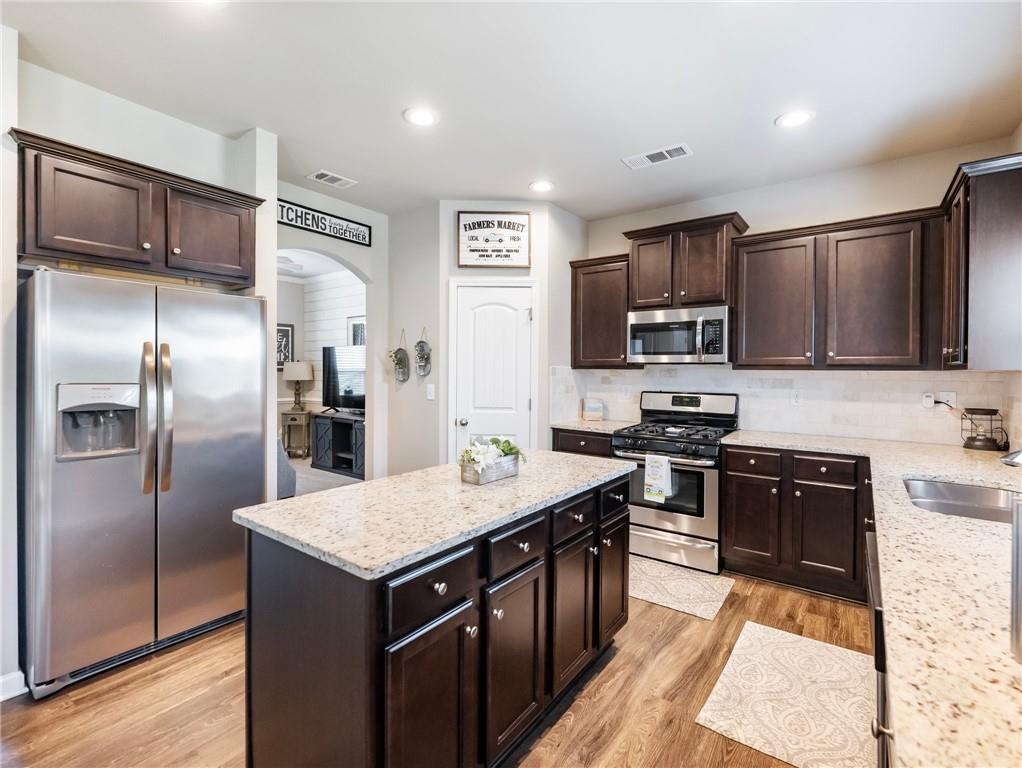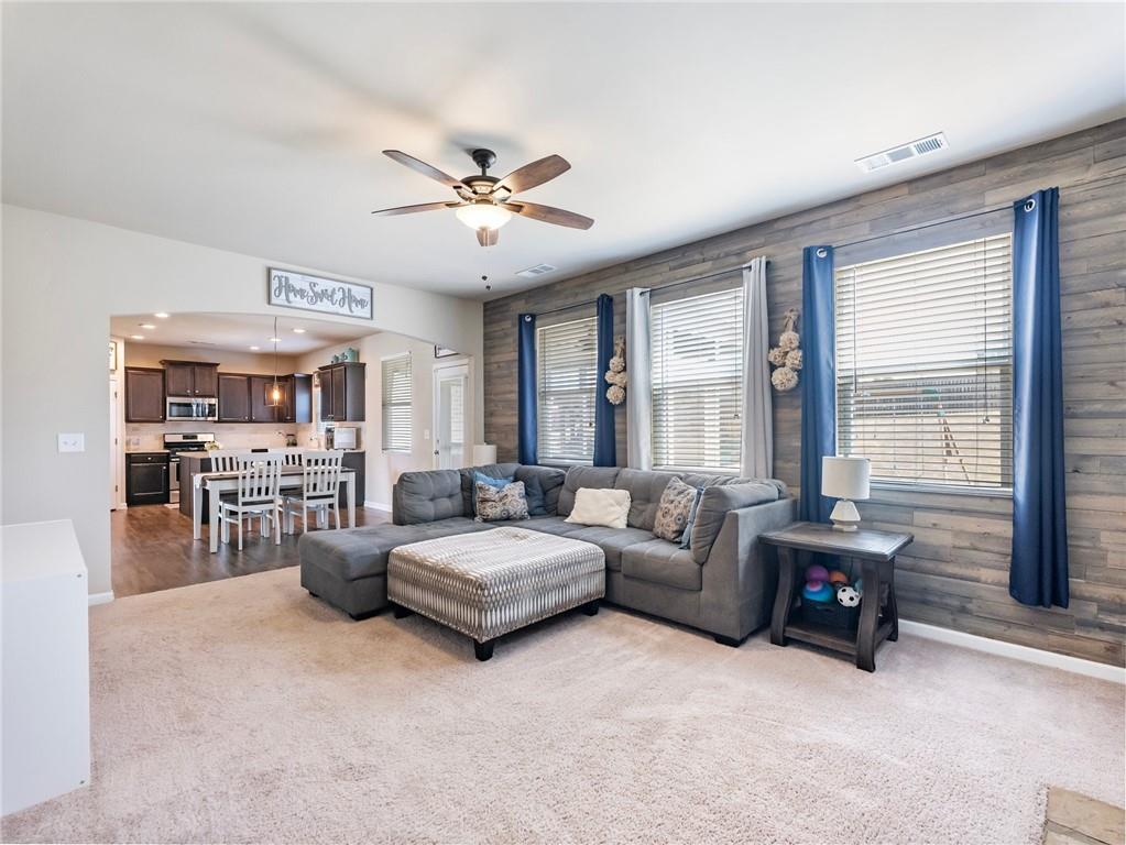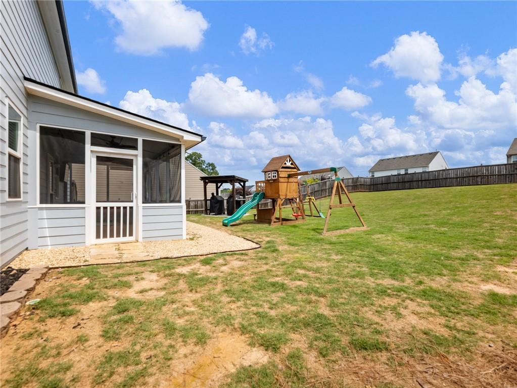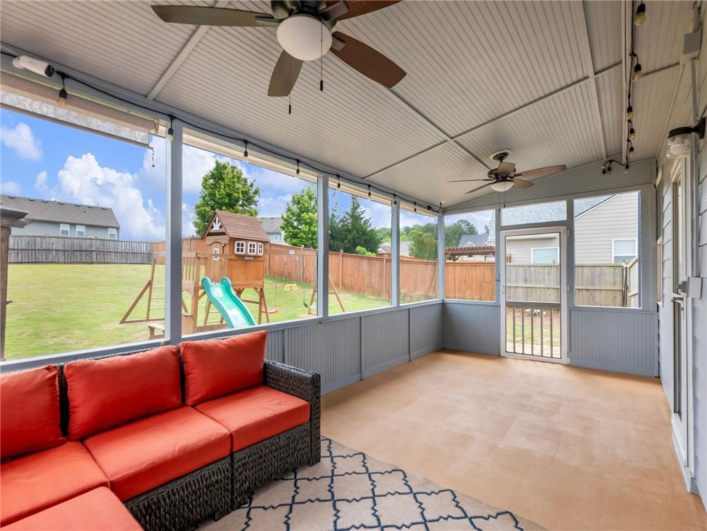 Welcome to this beautiful well maintained 4 bedrooms, 2 and half bathroom home with an open-concept kitchen and living room that is perfect for family gatherings or having friends over for the game. The kitchen offers granite countertops, tile backsplash, large granite center island and a walk-in pantry. The upgraded stone fireplace sets off the living room making it even more enjoyable on those chilly evenings. The separate dining room adds a touch of elegance for those special dinners and or use it as a play / TV room for the kids. The master bedroom features 2 generous walk-in closets, one larger than the other for who has the most shoes. The upgraded tile / stone shower, vanity and mirrors adds to the utopia experience. The 3 other bedrooms are all spacious and have large closets for kid's clothes or those storage boxes. Step outside from the kitchen to an enclosed covered porch great for watching football games or taking the afternoon nap while gazing at your backyard that is enclosed with a privacy fence. This home has been freshly painted with upgraded shutters, newer roof, front stone elevation with a 3rd car parking pad on the side of the extra-large garage. This home is located in the Hoschton school district, near shopping, restaurants, golfing and much more.