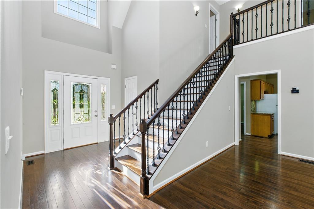 Discover this spacious 4-bedroom, 3.5-bath home ideally located just 10 miles from downtown Gainesville and a little over a mile from the highly sought-after Mount Vernon Elementary and North Hall Middle/High Schools. The main level boasts stunning hardwood floors, a large primary suite with a spa-like en-suite bath featuring a jetted tub, double vanity, and walk-in closet. Upstairs, you'll find two additional bedrooms, a full bath, and a generous bonus room-perfect for a playroom, gym, or home theater. Step outside to enjoy breathtaking sunrise views from the two-level deck overlooking a fully fenced backyard and a picturesque, gently flowing creek on your 1+ acre lot. The finished basement offers even more living space with a full bath, oversized bedroom, spacious living area, and an additional bonus room ideal for a home office or guest suite. This Hall County gem blends comfort, convenience, and natural beauty-don't miss your chance to make it yours!