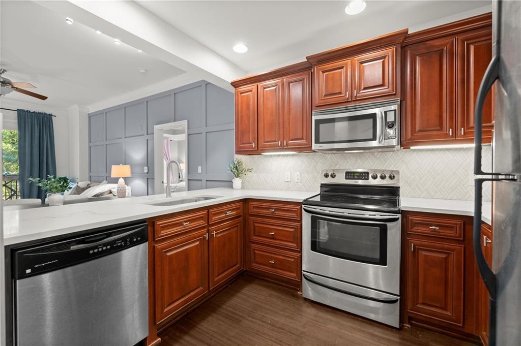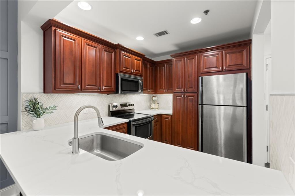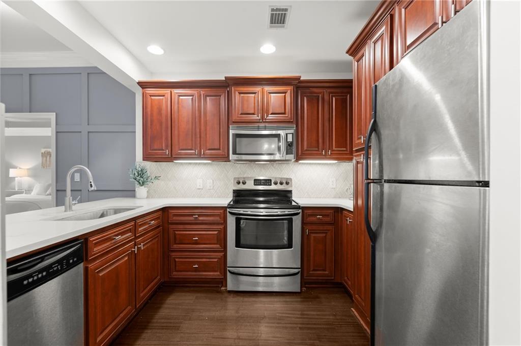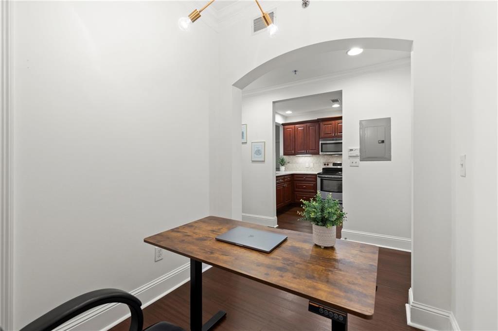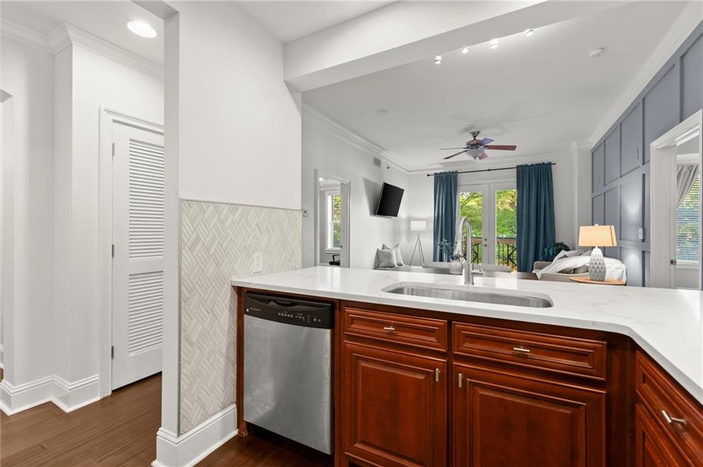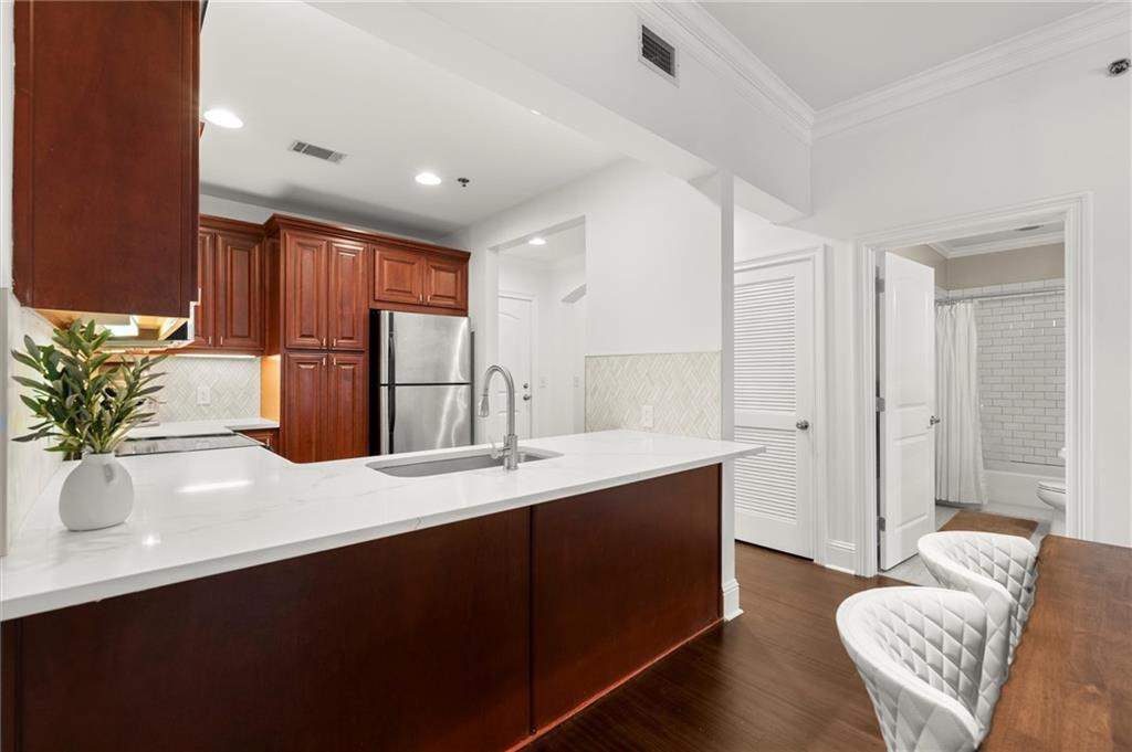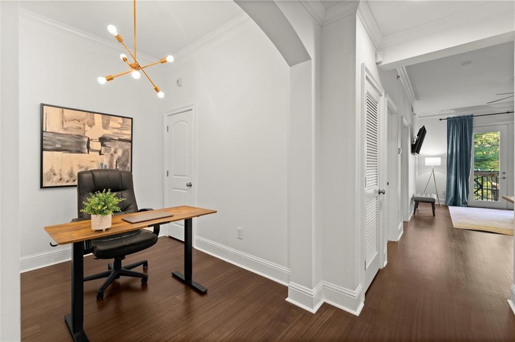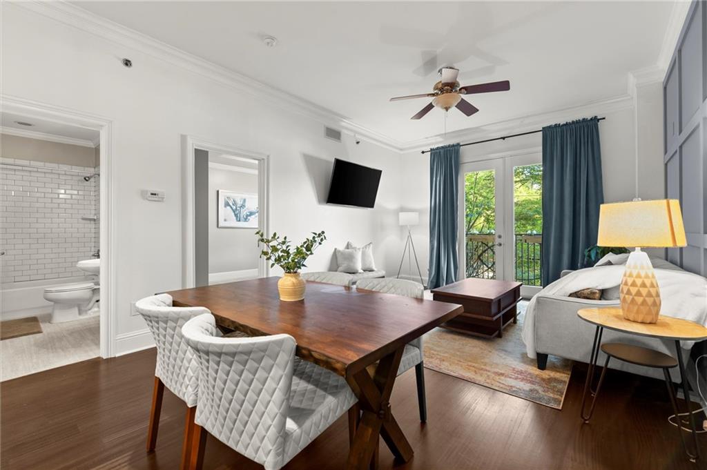 Hurry in to this STUNNING condo in the prestigious Aramore for the finest in in-town living! Beautifully renovated, this 2 Bed, 2 Bath unit features a gorgeous Open Plan, Custom Wainscoting, a spacious, inviting Living Area and a well-designed Kitchen with Quartz Counters, a Breakfast Bar, Designer Tile and ample Cabinetry. The Flex room off of the foyer, with its beautiful arched entry, is ideal as a Home Office, Formal Dining Room or Yoga/Home Gym space! Relax and unwind in luxury in the serene Primary Suite with an EXQUISITELY renovated Primary Bath featuring Dual Vanities, Marble Counters, a Soaking Tub AND Seamless Glass Shower with a wall of elegant Tile. Love to entertain? Plenty of room in the Airy, Open Great Room with its Dining Area and Tree-Lined Views through the French Doors. Step onto the elegant Juliet Balcony for a Bird’s Eye View of fabulous Peachtree Road – a perfect spot to view the July Fourth Road Race! At the Aramore you will find EVERYTHING you need…with incredible amenities, including an outdoor patio with grills and sitting areas, a community pool, fitness center, and shared facilities at the sister building, the Astoria, with a clubhouse, rooftop pool, hot tub, gym, and additional grilling space!! And the LOCATION! In Buckhead near Midtown, the Beltline, Fantastic Restaurants and Shopping, the Bobby Jones Golf Course Connector, Piedmont Hospital and easy interstate access to ALL POINTS including Downtown and the Airport. For EXTRA convenience, your TWO Deeded Parking Spots are on the SAME FLOOR as your condo, securely positioned within the Gated Parking Garage! Come and discover how you can live the In-Town Lifestyle you crave, in the luxury you deserve, and see why the Aramore is one of Buckhead’s most sought-after communities!