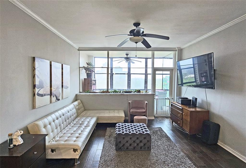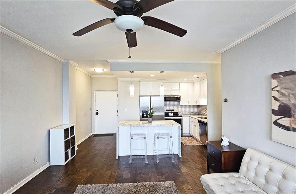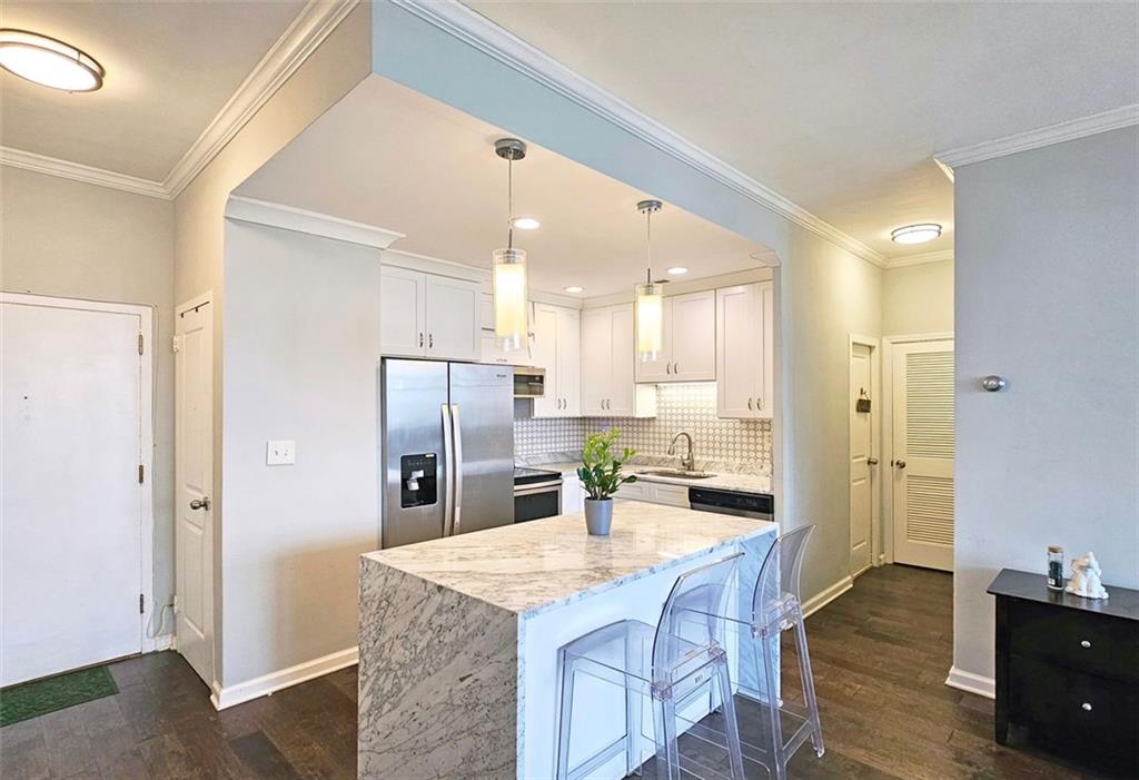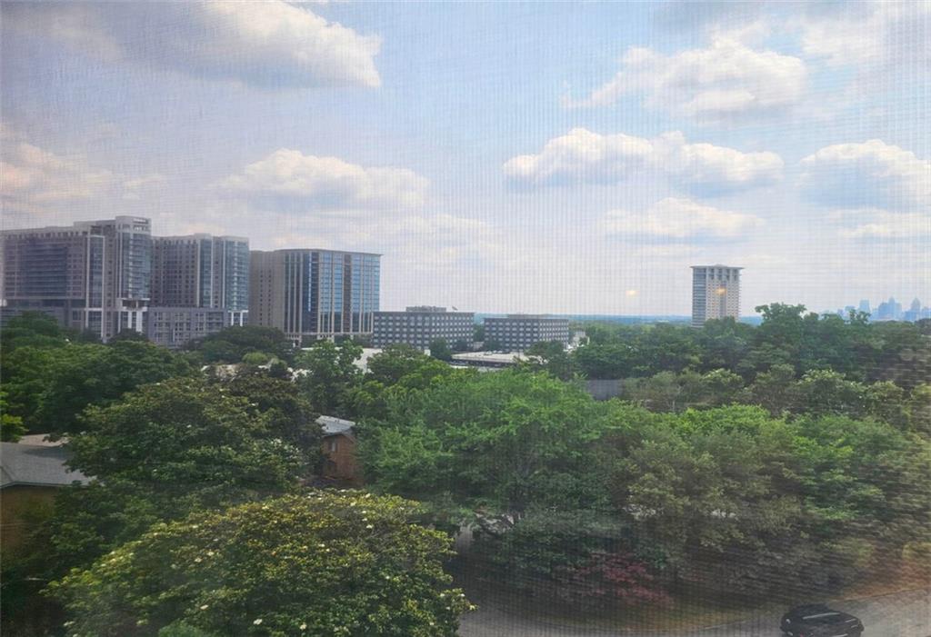 Welcome to your new home in the heart of Buckhead with HOA fees that include ALL Utilities !! Great view of Atlanta skyline from enclosed mirrored wall balcony! Remodeled unit in the heart of Buckhead tucked privately uphill in Cul-de-sac. Fresh neutral colors, cabinets and custom lightnings, fan,great open family rm with engineered hardwood floors. Kitchen has great counter tops, high end SS appliances. The bdrm has been extended to create more rm with closet. Built in laundry rm for a stack-able washer/dryer no more going to common area. Beautiful tiled floors and walls in bthrm, surround mirrored wall, updated vanity. Hoa includes utilities