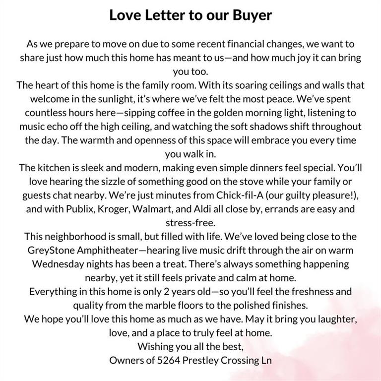 || MASTER ON MAIN || || OPEN-CONCEPT MAIN LIVING AREA || || SPA-LIKE MASTER BATH || || MARBLE FLOORS || || 14-FT CEILINGS || || CUSTOM 72-INCH WINDOWS || || PRIVATE 1-ACRE LOT || || SLEEK MODERN KITCHEN || || TOP-RATED SCHOOLS || ** What You’ll See ** Step inside and see the elegance unfold. Your eyes are drawn immediately to the SOARING 14-FOOT CEILINGS and CUSTOM 72-INCH WINDOWS, filling the home with natural light that dances across PRISTINE MARBLE FLOORS. The MODERN DESIGN shines in every detail—from the SLEEK WHITE KITCHEN with stone counters and a view to the family room, to the FLOATING DEEP SOAKING TUB that anchors the SPA-INSPIRED MASTER BATH. Outside, your PRIVATE 1-ACRE LOT feels like your own secluded retreat, bordered by trees and designed for serenity. ** What You’ll Hear ** What you won’t hear might be just as important—this home is set in a VERY QUIET NEIGHBORHOOD, where the stillness is only interrupted by soft birdsong or the occasional breeze. Inside, conversations flow effortlessly in the OPEN-CONCEPT LIVING SPACE, where family laughter echoes under high ceilings and soft music hums in the background as you cook or relax. ** What You’ll Feel ** From the moment you walk in, you’ll feel a calm sophistication. Cool marble underfoot. Warm sunlight through TINTED WINDOWS. The effortless comfort of MAIN-LEVEL LIVING, with your primary suite just steps away. In the bath, the luxurious sensation of stepping into the FLOATING TUB or rinsing off in a WALK-IN SHOWER designed for total relaxation. This is where elegance meets comfort. ** What You’ll Experience ** You’ll live just 5 MINUTES FROM THE MALL AND EXPRESSWAY, making errands, dining, and commuting effortless. You’ll have access to EXCELLENT SCHOOL OPTIONS, setting your family up for success. Whether you’re hosting, resting, or working from home, this CUSTOM MODERN HOME offers you a daily experience of grace, convenience, and peace—an unmatched blend of beauty and function.