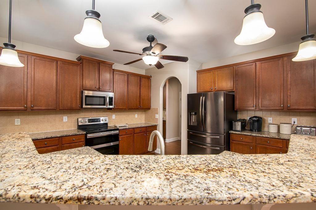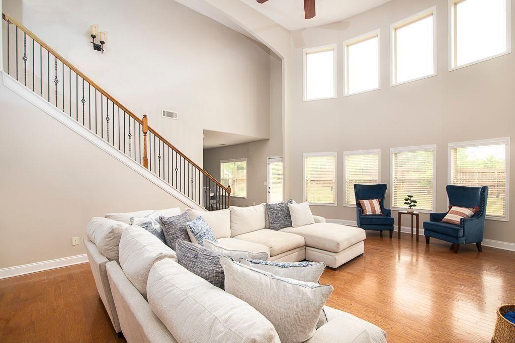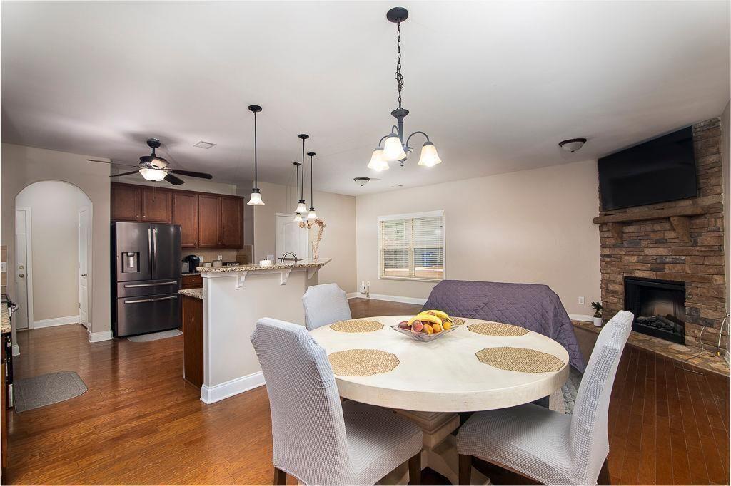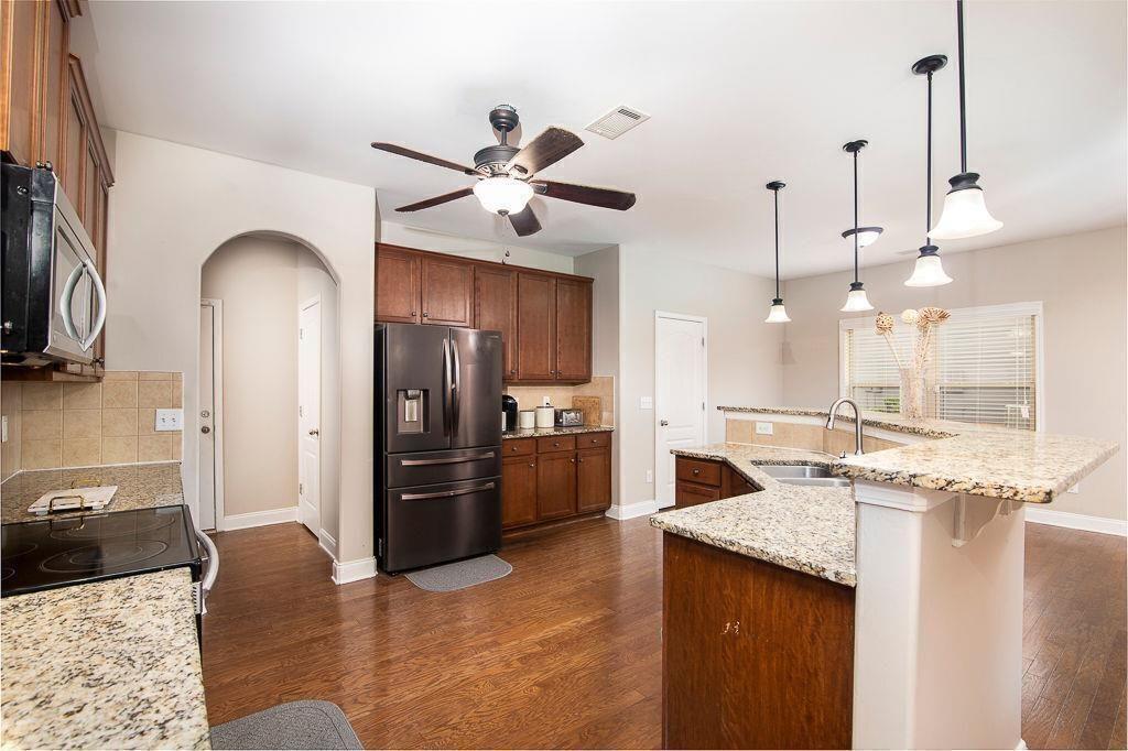 A stunning traditional two story craftsman style home in Kings Bridge Subdivision, a highly coveted, peaceful and family friendly neighborhood. In this 5 bedroom, 4 bath home you will experience the comfort of suburban tranquility and the style of modern conveniences. Conveniently located minutes from the interstate, local shopping centers, an array of dining choices, and close to recreational parks and sport facilities. Step inside and discover the elegance of this home where all the spaces are designed for your ultimate relaxation. The open view concept offers both a formal living room and a large formal dining room. The spacious great room is filled with natural light, floor to ceiling windows, a cathedral ceiling and a fireplace surrounded custom- built cabinets. You have the perfect location for personal relaxation or hosting large family and friend gatherings. A generous sized bedroom and bathroom are located on the main floor. Create your culinary delights in the gourmet kitchen with granite countertops and tiled backsplash, a large bar island and stainless steel appliances. Stock up the household goods in a huge walk-in pantry. Enjoy the fruits of your culinary creations in the spacious breakfast dining area while enjoying the ambiance of an electric fireplace. A butler's pantry, connecting the kitchen to the dining room, affords effortless entertainment. The open loft upstairs provides another living space. The huge owner's suite features a tray ceiling and a separate sitting area suitable for an office or for watching TV. Vacay at home in a spa bathroom boasting separate vanities, shower, tub and a water closet. Get lost in the walk- in closet of your dreams! The remaining three bedrooms are all spacious. Two are connected by a Jack and Jill bath, both having a private vanity. The fifth bedroom has its own bath. Bask in the comfort and seclusion of a back patio and an spacious,fenced in, back yard. The three car garage and an oversized driveway will provide ample parking space for family and friends. NEW ROOF -1 year Old!! NEW HVAC! HOME WARRANTY - transferred at closing! The features and details in this home exude luxury, comfort and convenience. Make it Yours!!!