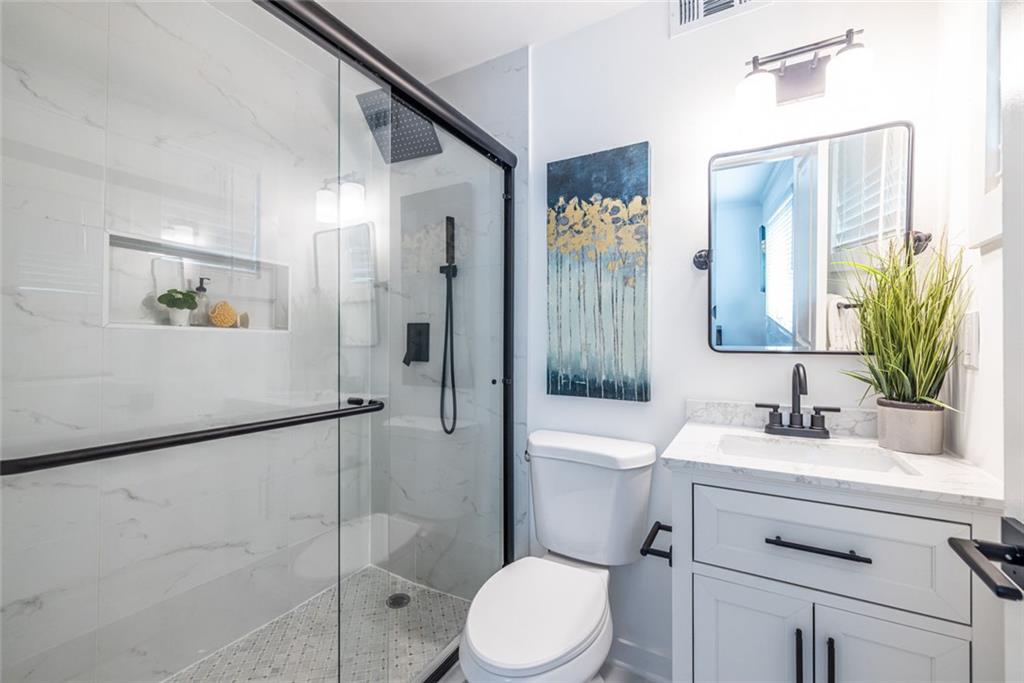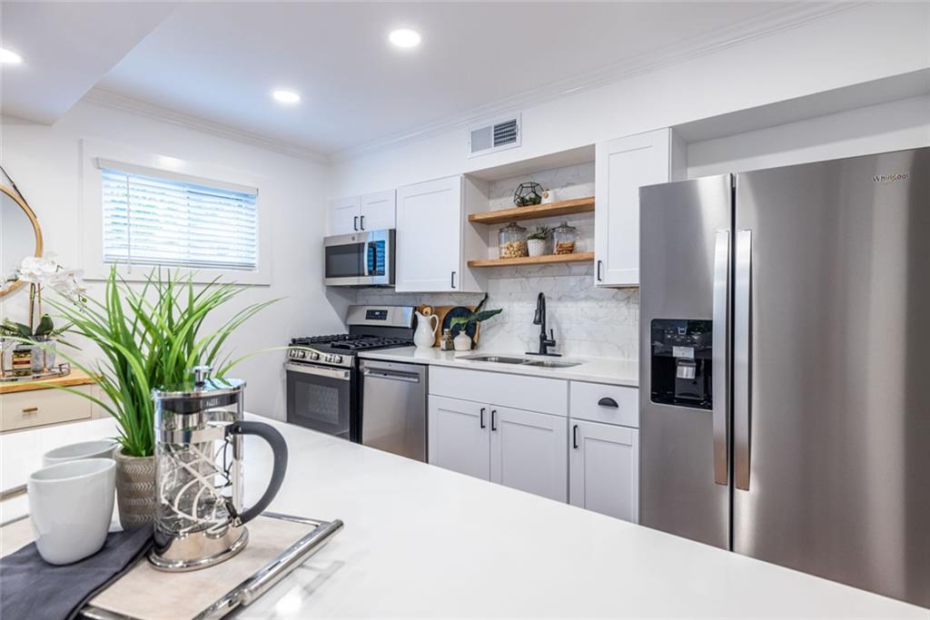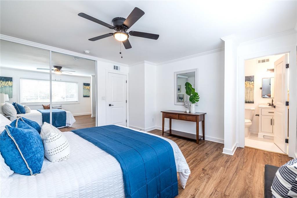 Welcome to this stylish completely renovated 3 BR / 2 BA Arborgate home! Spacious floor plan is the ideal setup for today's busy lifestyle.This is an end unit (one of the largest in the community) with three exterior walls and lots of windows that allow for ample natural light. The living space is perfect for entertaining and flows into the brand new kitchen featuring all new cabinetry (with tons of storage space), quartz countertops (enjoy your morning coffee in the kitchen!), and sparkling new stainless appliances just waiting for your very first dinner party! A beautiful & private gated patio is just off the kitchen. It's sun drenched, so you can let you inner gardener flourish during the day, & then enjoy evening get togethers on warm Summer nights. A primary owner's suite features a private bathroom with custom shower & vanity. The spacious custom wood shelved closet handles all of your storage needs! Two additional large bedrooms with spacious closets are perfect for a home office, roommate situation or a home gym. They share a fresh new full bath with a tub/shower combination, subway tile surround and new quartz counter vanity. There's even a convenient hall laundry closet! This quiet location in the back of the property has ample parking right at the building. Quick access to the Beltline, shops, restaurants & grocery stores - just minutes away! Easy close access to i85, i75, and Hwy Ga 400. This is a pet-friendly community with large dog-walking area & multiple pet-poo stations. Cul-de-sac community means no thru-traffic, but you're near everything Atlanta has to offer. Welcome Home!