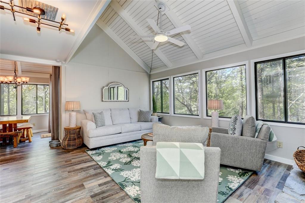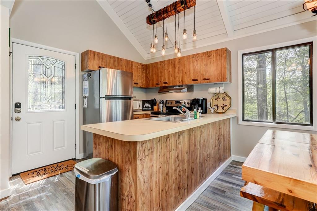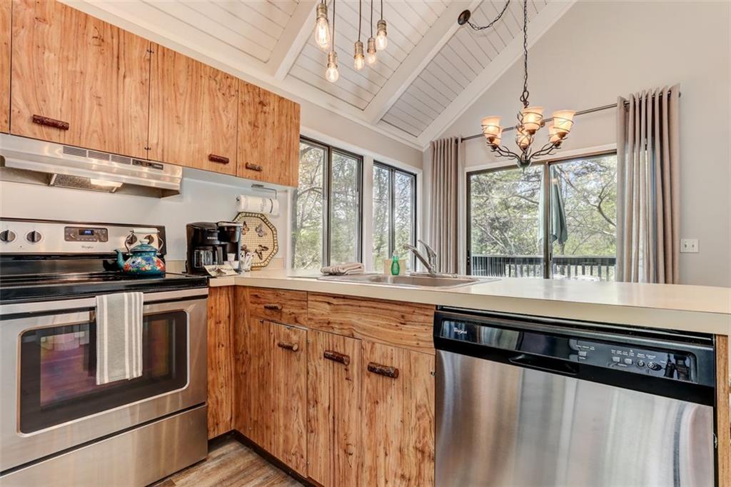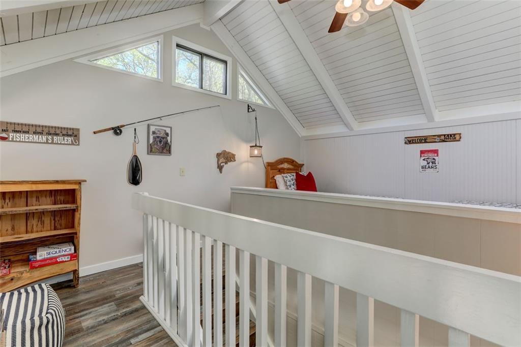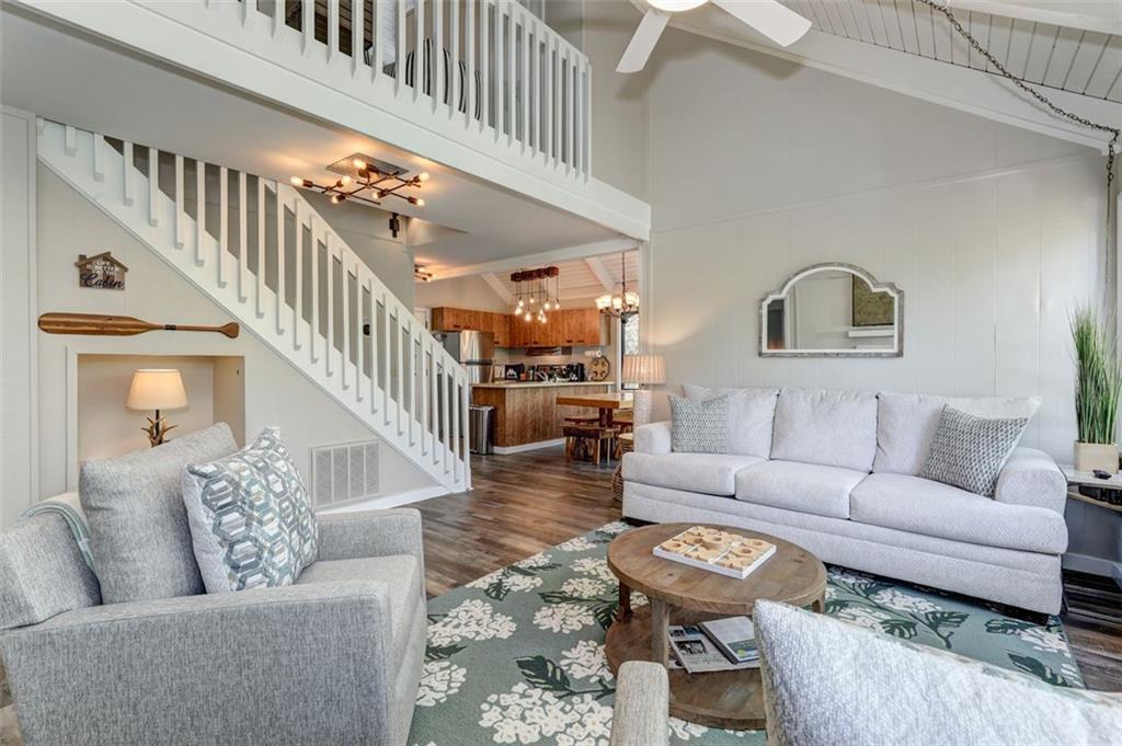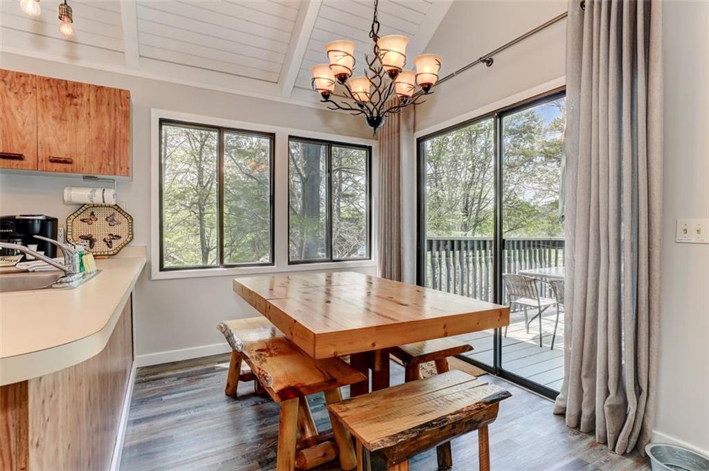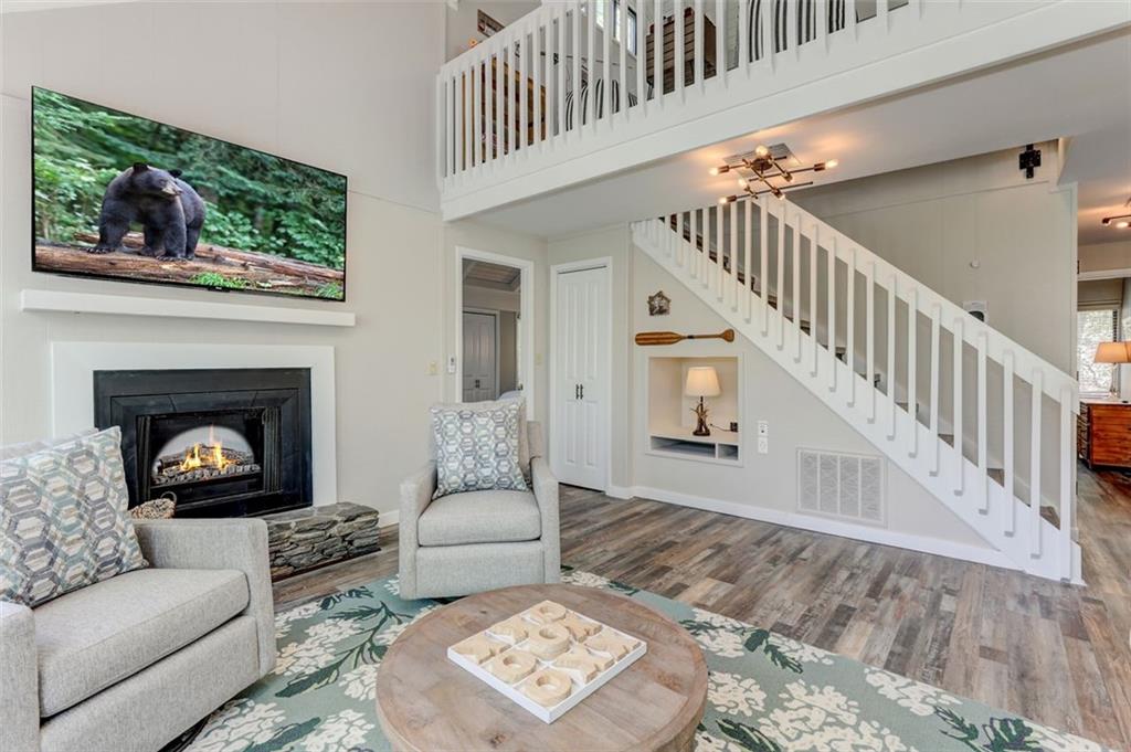 This spectacular villa offers seasonal views of Lake Petit and the majestic mountains in Big Canoe! The cottage is being Sold Fully Furnished (except for a few personal items) and is Rental Ready! It has been lovingly cared for, with recent renovations including a new roof, new flooring throughout, new light fixtures, and updated bathroom vanities. The freshly painted interior boasts 2 bedrooms, 2 full bathrooms and an upstairs loft. Bedroom 1 is located at the front of the house and features 2 closets, a King size bed, dresser, TV and an upholstered swivel chair. The adjoining ensuite bathroom was recently updated with a new vanity and shelving. Bedroom 2 features 2 closets, a Queen size bed, a dresser and TV, an ensuite bathroom with an updated vanity and shelving, AND access to the private deck through sliding glass doors which features a free standing gas fire pit & chairs to relax in. The Living Room is bright and spacious with an electric fireplace, vaulted ceiling, new ceiling fan and a wall of windows flooding the entire living area with naturally filtered light! There's plenty of room to relax as it is furnished with a sofa, end tables, a round coffee table, 2 upholstered swivel chairs and a Smart TV. There is a utility closet located under the stairs, great for storage! The Kitchen comes fully equipped with stainless steel appliances, coffee maker, cookware, baking trays, utensils and dishes! The indoor Dining Area is perfect for your family to enjoy a delicious meal, or you can relax and take in the fresh air on the adjoining deck. The deck includes an umbrella table, chairs and a gas grill. The Upstairs Loft is furnished with 2 Twin trundle beds, a game area overlooking the Living Room and 2 closets for extra storage. The Laundry closet is efficiently positioned in the hallway by the kitchen and includes a new stackable washer & dryer. The Basement has been converted into a Game Room and is perfect for entertaining the young at heart with Ping Pong and Air Hockey. The house is located in the heart of Big Canoe and convenient to all the wonderful amenities Big Canoe has to offer! The Gated Mountain Resort of Big Canoe is an Award Winning Community located just 1 hour North of Atlanta. It is an ideal escape for family fun, nature lovers and outdoor enthusiasts. Big Canoe offers a 27 Hole Championship Golf Course, Racquet Club with indoor and outdoor Tennis Courts, 10 Pickleball Courts, Bocce Club and Swim Club with two Pools. The Big Canoe Marine offers boating, kayaking, paddleboarding and fishing. Three beautiful lakes! And over 20 miles of hiking trails with waterfalls in the North Georgia Mountains. Enjoy first class dining at the Big Canoe Clubhouse, Black Bear Pub and the Lakeside Bistro. I am happy to show my listing without a penalty to your agent. ** Buyer to verify all information and dimensions deemed important. This home is perfect for full-time, part-time or short-term rental and is already enjoying an established rental income with bookings lined up until October! Agents: this is a gated community please use 1176 Wolfscratch Dr as the access address.