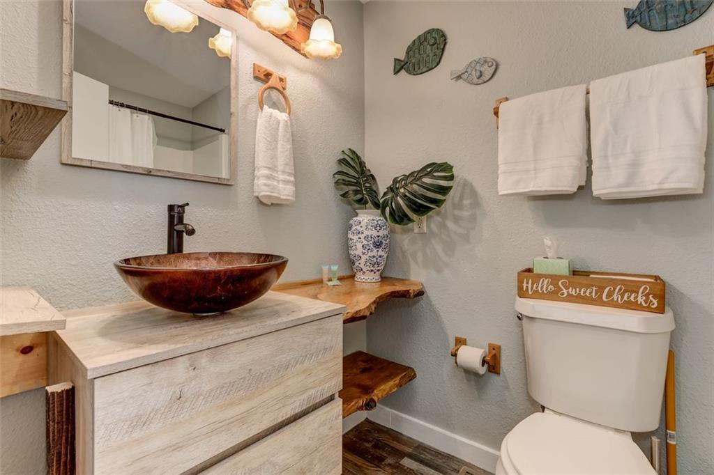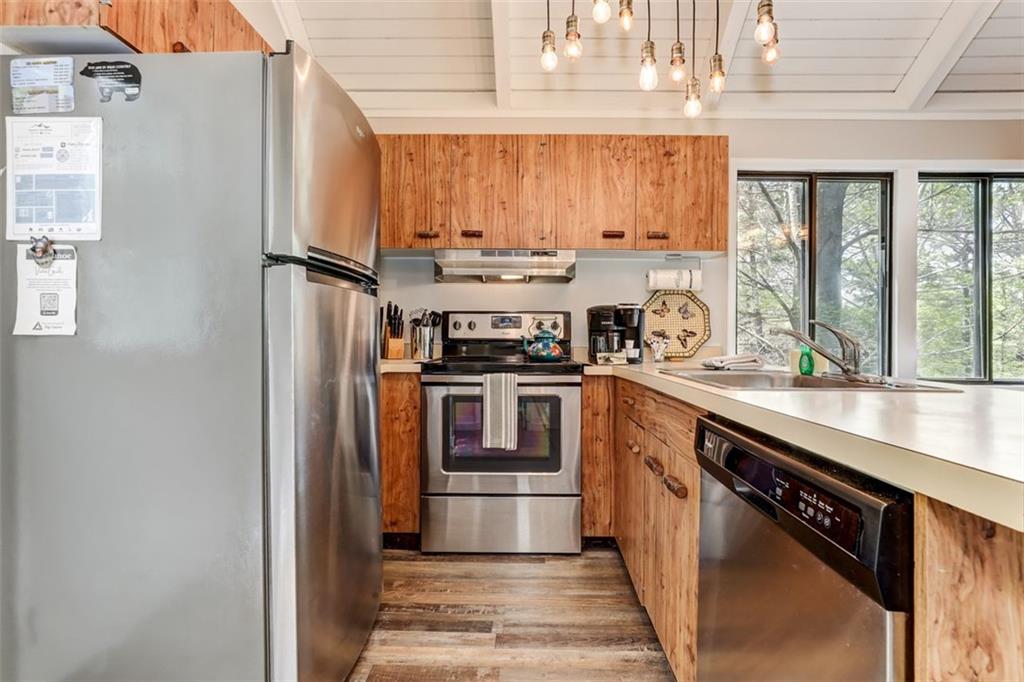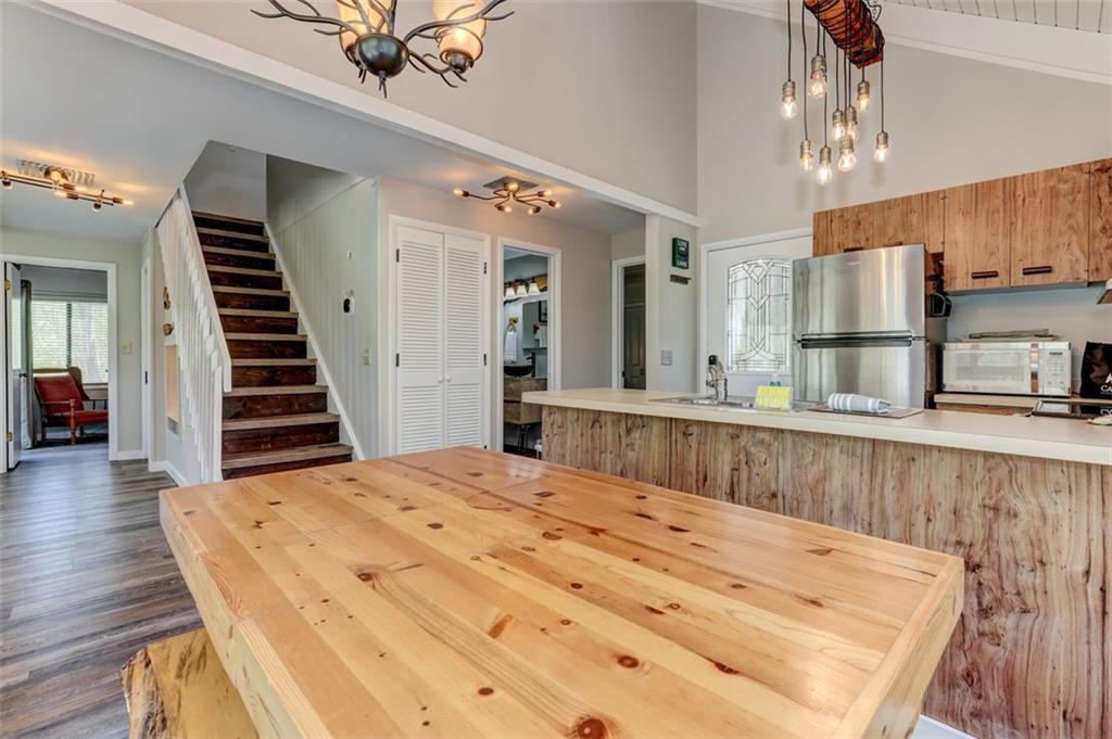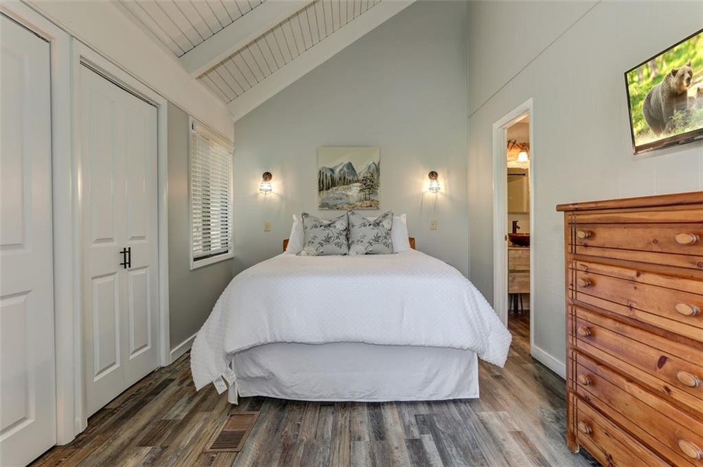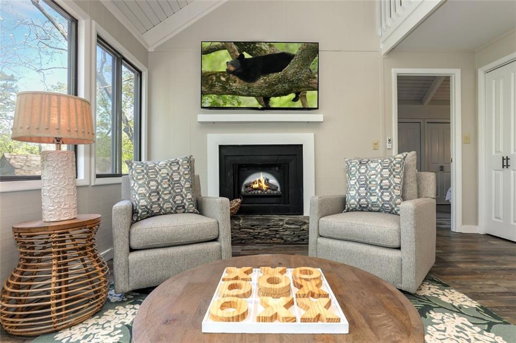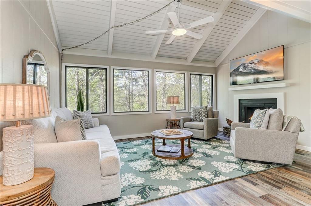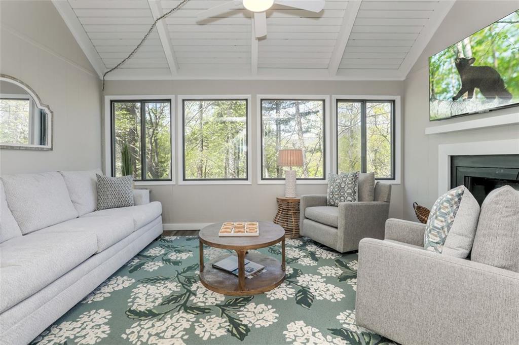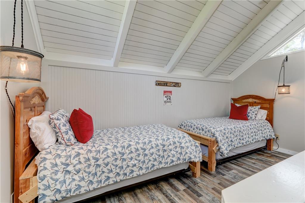 This spectacular villa offers seasonal views of Lake Petit and the majestic mountains in Big Canoe! The cottage is being Sold Fully Furnished (except for a few personal items) and is Rental Ready! It has been lovingly cared for, with recent renovations including a new roof, new flooring throughout, new light fixtures, and updated bathroom vanities. The freshly painted interior boasts 2 bedrooms, 2 full bathrooms and an upstairs loft. Bedroom 1 is located at the front of the house and features 2 closets, a King size bed, dresser, TV and an upholstered swivel chair. The adjoining ensuite bathroom was recently updated with a new vanity and shelving. Bedroom 2 features 2 closets, a Queen size bed, a dresser and TV, an ensuite bathroom with an updated vanity and shelving, AND access to the private deck through sliding glass doors which features a free standing gas fire pit & chairs to relax in. The Living Room is bright and spacious with an electric fireplace, vaulted ceiling, new ceiling fan and a wall of windows flooding the entire living area with naturally filtered light! There's plenty of room to relax as it is furnished with a sofa, end tables, a round coffee table, 2 upholstered swivel chairs and a Smart TV. There is a utility closet located under the stairs, great for storage! The Kitchen comes fully equipped with stainless steel appliances, coffee maker, cookware, baking trays, utensils and dishes! The indoor Dining Area is perfect for your family to enjoy a delicious meal, or you can relax and take in the fresh air on the adjoining deck. The deck includes an umbrella table, chairs and a gas grill. The Upstairs Loft is furnished with 2 Twin trundle beds, a game area overlooking the Living Room and 2 closets for extra storage. The Laundry closet is efficiently positioned in the hallway by the kitchen and includes a new stackable washer & dryer. The Basement has been converted into a Game Room and is perfect for entertaining the young at heart with Ping Pong and Air Hockey. The house is located in the heart of Big Canoe and convenient to all the wonderful amenities Big Canoe has to offer! The Gated Mountain Resort of Big Canoe is an Award Winning Community located just 1 hour North of Atlanta. It is an ideal escape for family fun, nature lovers and outdoor enthusiasts. Big Canoe offers a 27 Hole Championship Golf Course, Racquet Club with indoor and outdoor Tennis Courts, 10 Pickleball Courts, Bocce Club and Swim Club with two Pools. The Big Canoe Marine offers boating, kayaking, paddleboarding and fishing. Three beautiful lakes! And over 20 miles of hiking trails with waterfalls in the North Georgia Mountains. Enjoy first class dining at the Big Canoe Clubhouse, Black Bear Pub and the Lakeside Bistro. I am happy to show my listing without a penalty to your agent. ** Buyer to verify all information and dimensions deemed important. This home is perfect for full-time, part-time or short-term rental and is already enjoying an established rental income with bookings lined up until October! Agents: this is a gated community please use 1176 Wolfscratch Dr as the access address.