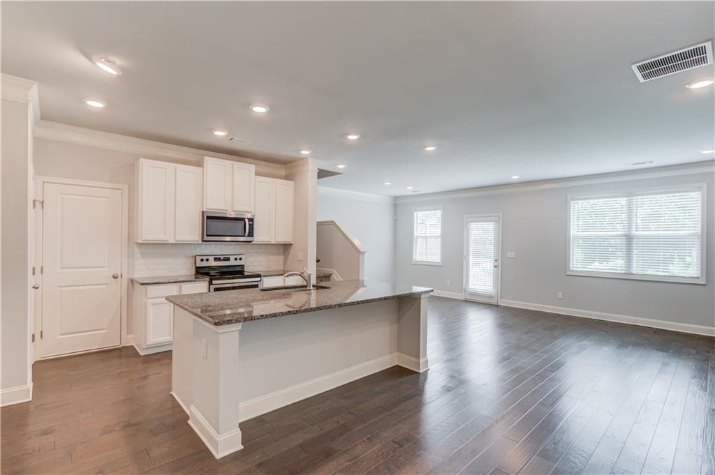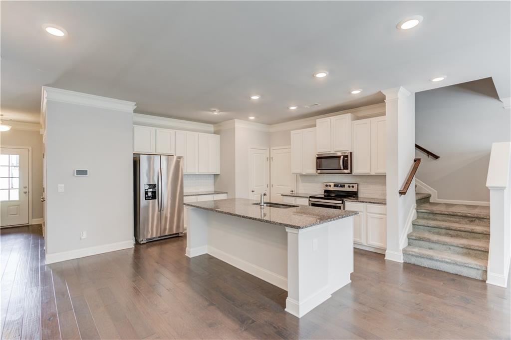 This immaculate townhome with basement is located in the highly desirable Mill Creek school district. The main level features stunning hardwood floors and a spacious great room that flows seamlessly into an open kitchen and dining area. The kitchen boasts an oversized center island with bar seating, granite countertops, stainless steel appliances and a generous walk-in pantry, perfect for both daily living and entertaining. Upstairs you'll find a luxurious owner's suite complete with a large walk-in closet and an oversized shower. This level also includes two additional bedrooms, two full bathrooms, a den and a convenient laundry room. Enjoy the outdoors with an upper deck off the dining room, a patio accessible from the basement, and a spacious backyard with green space. Easy access to I-85, and just minutes from local restaurants, shoppings and more.