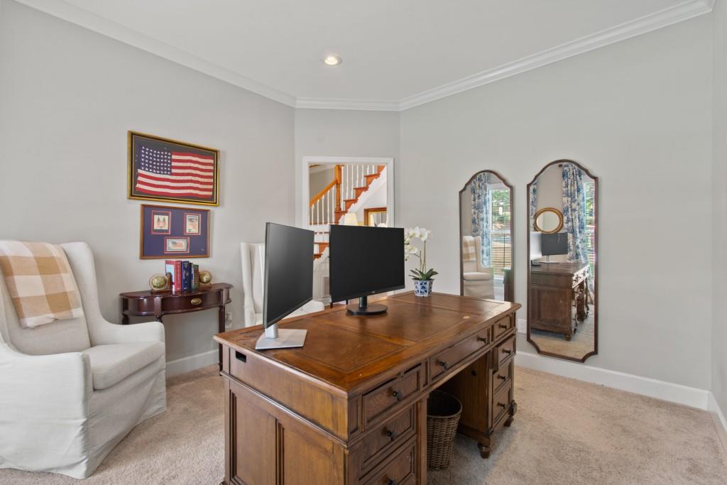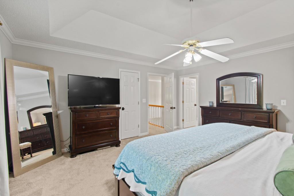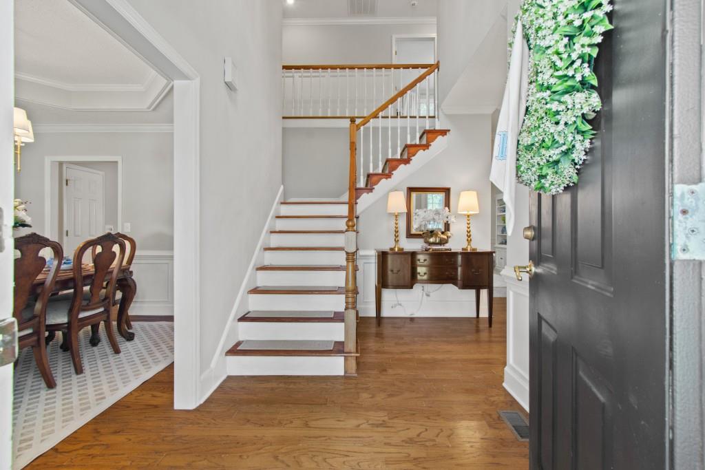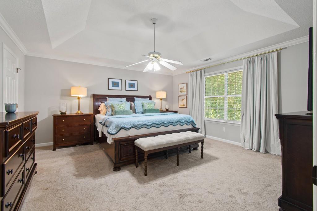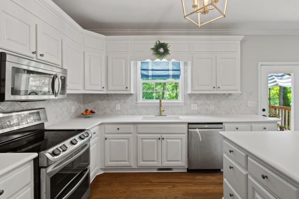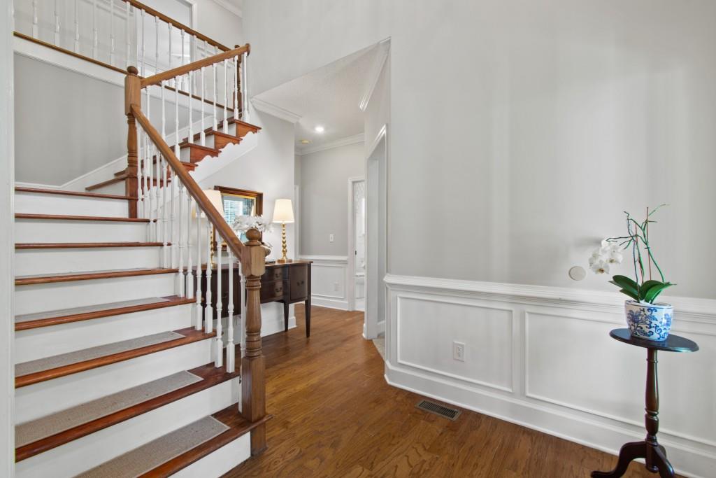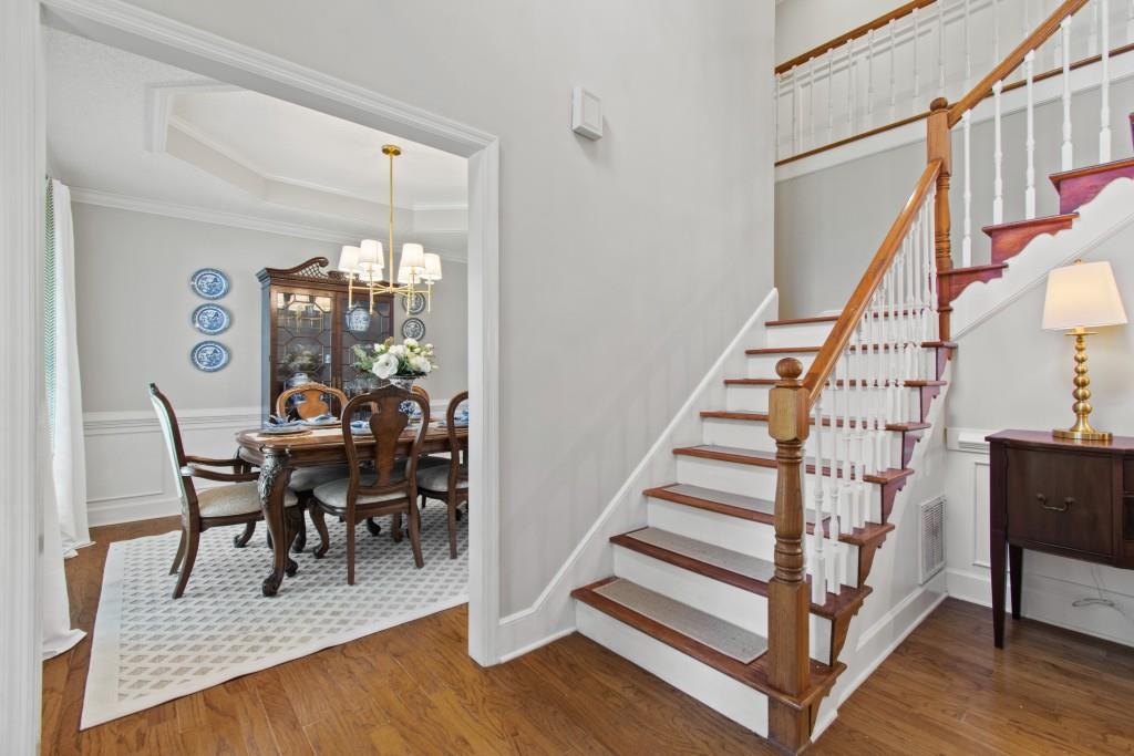 North Hall/Mt. Vernon Traditional - Space, Style & Comfort! Welcome to this charming North Hall home, perfectly nestled in a well-established and sought-after lake community. The inviting rocking chair front porch sets the tone for the warmth and livability you'll find inside. Designed with both everyday living and entertaining in mind, the main level features a formal dining room and a spacious white, kitchen that flows seamlessly into the fireside great room-perfect for gathering with family and friends-also the perfect Home Office /Flex Room. Upstairs, the generous Primary En Suite is so inviting complete with an updated spa-inspired bath featuring a freestanding soaking tub-ideal for unwinding after a long day. Two additional guest en suite bedrooms offer comfort and privacy with their own full baths. The finished terrace level expands your living space with a large bonus/family room, a fourth bedroom, full bath, could be In-Law / Tween Space and a rare unfinished storage area for all your extras. Step outside to the main-level deck overlooking large backyard that offers both space and privacy-perfect for play, relaxation, or entertaining outdoors. This location is really hard to beat! Convenient to the new Publix shopping center, medical clinic, boat ramp, NH High School, MIddle School and Mt. Vernon Elementary, Chattahoochee Golf Course and about 10 minutes to Historic Downtown Gainesville Square. If you're looking for location, layout, and livability, this North Hall gem checks all the boxes!
