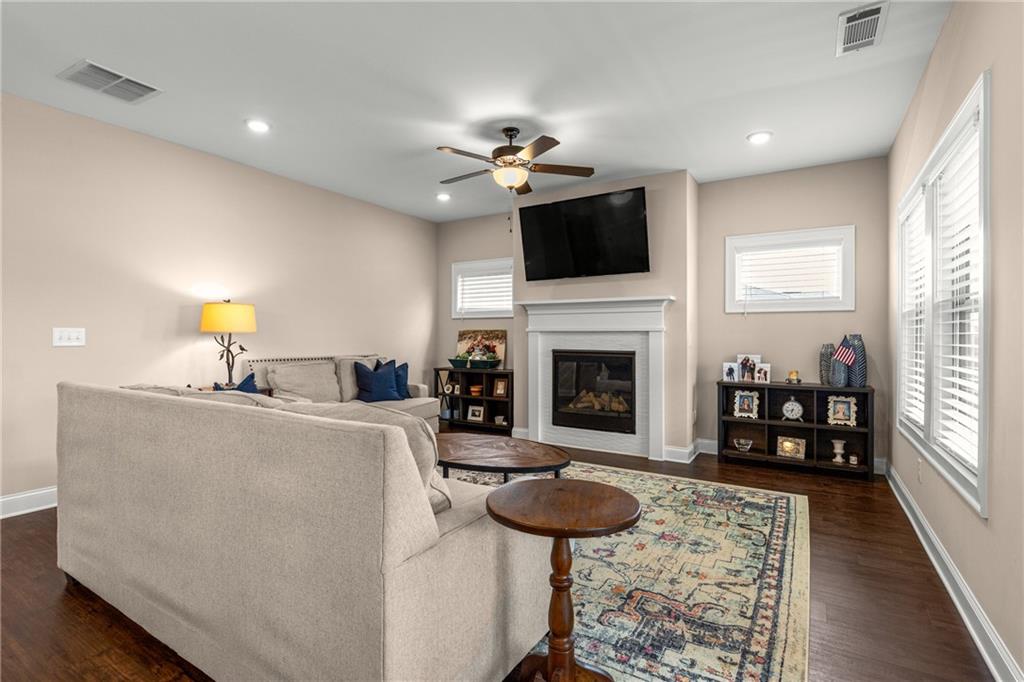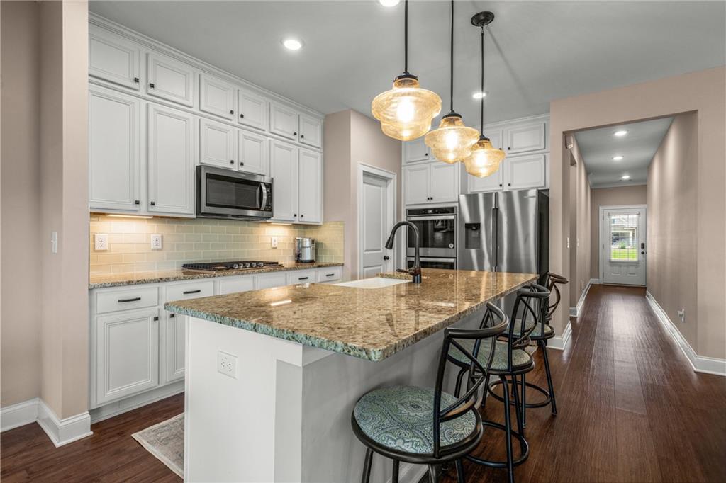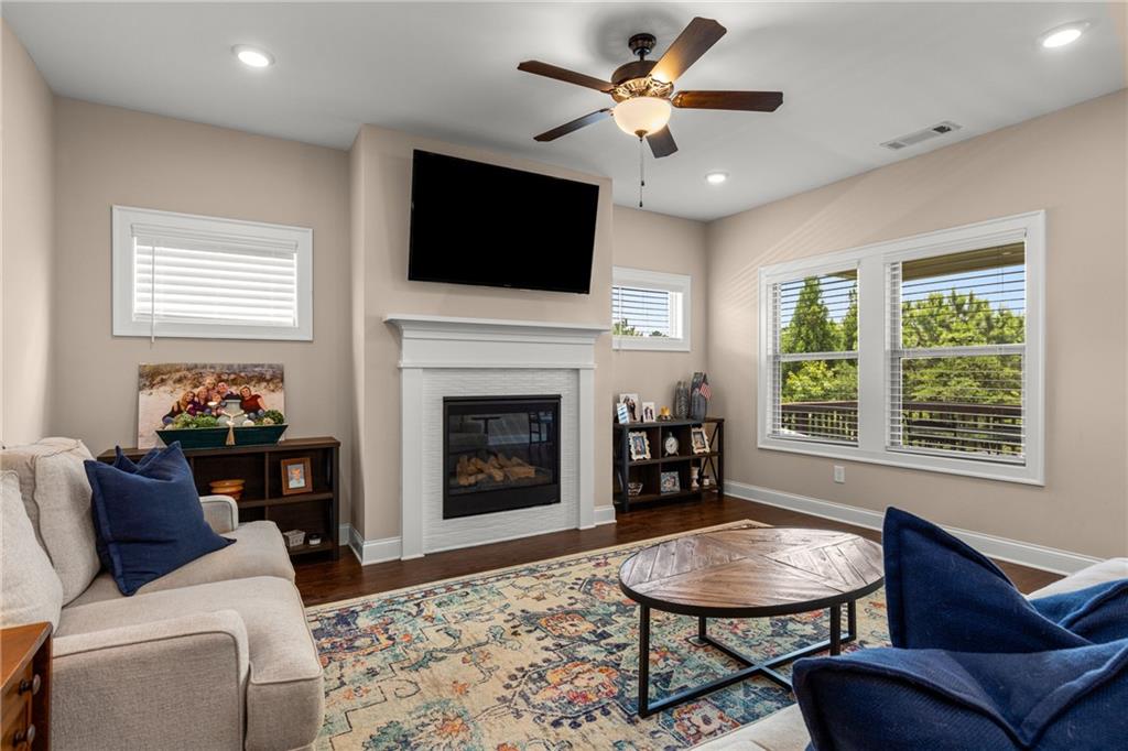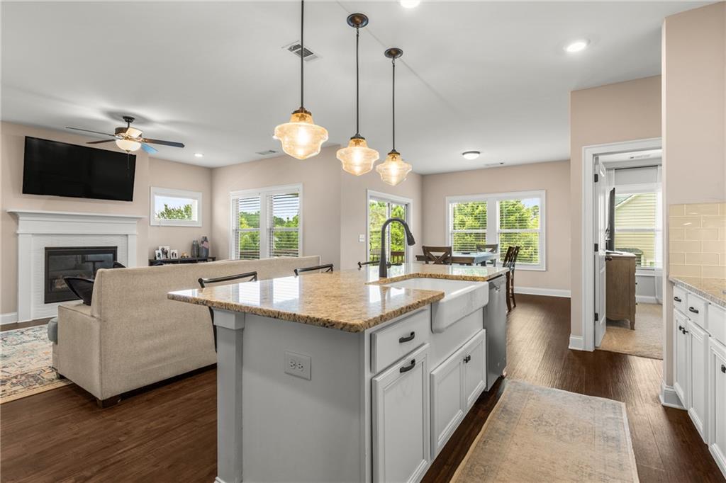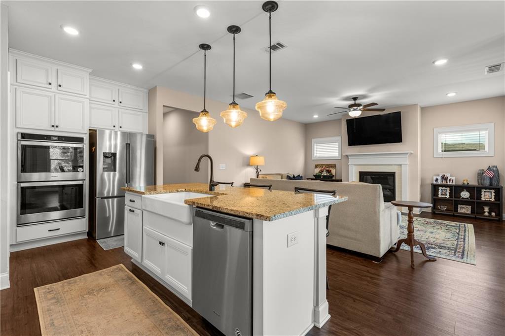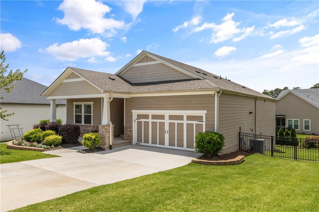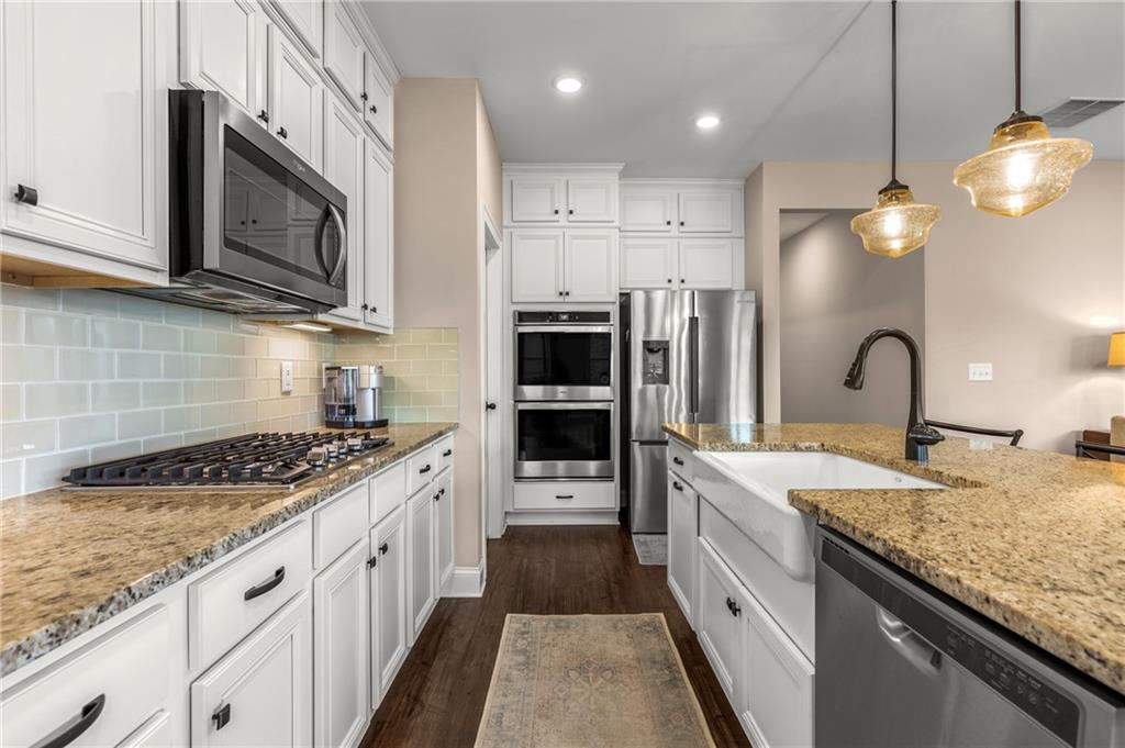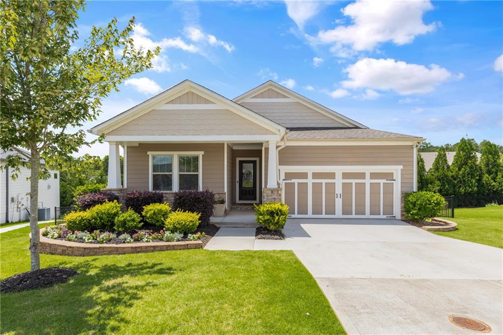 Beautiful Ranch on Cul-de-Sac Lot with Finished Basement in Sought-After Lauren Canyon! This energy-efficient, one-level living ranch home offers an ideal blend of comfort, style, and function. Open-concept layout seamlessly connects the kitchen, family room, and dining area. The stunning chef’s kitchen features a farmhouse sink, granite countertops, floor-to-ceiling white cabinetry, subway tile backsplash, 4-seater island, walk-in pantry, and premium stainless steel appliances, including double wall ovens, separate gas cooktop, built-in microwave, and dishwasher. USB ports in the kitchen add modern convenience. Enjoy abundant natural light from numerous windows on the main level. LVP flooring flows through the main level, excluding bedrooms. The family room boasts a cozy fireplace and charming decorative windows, while upgraded light fixtures enhance every space. Full walk-in laundry room. The primary suite impresses with a tray ceiling, dual vanity with granite, large walk-in shower, tile flooring, white cabinetry, and huge walk-in closet. Downstairs, the massive, finished basement offers incredible flexibility with space for two offices, a second family room, bedroom with walk-in closet, full bath, workout room, and unfinished storage. Enjoy Southern charm from your rocking chair front porch and relax in the fully fenced backyard with an oversized access gate, covered back patio, and covered deck off the breakfast room—perfect for entertaining! Take advantage of resort-style Lauren Canyon amenities, including a pool, fitness center, clubhouse, tennis, golf, and playground. Conveniently located near Northside Hospital-Cherokee, I-575, shopping, and dining.