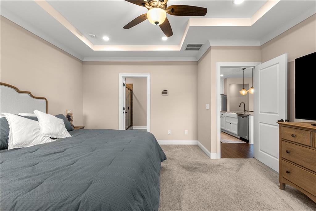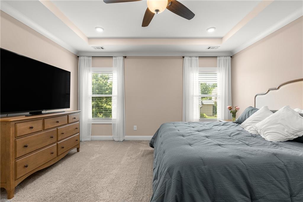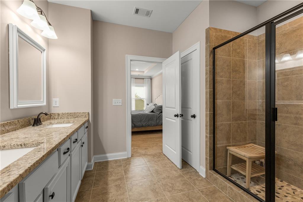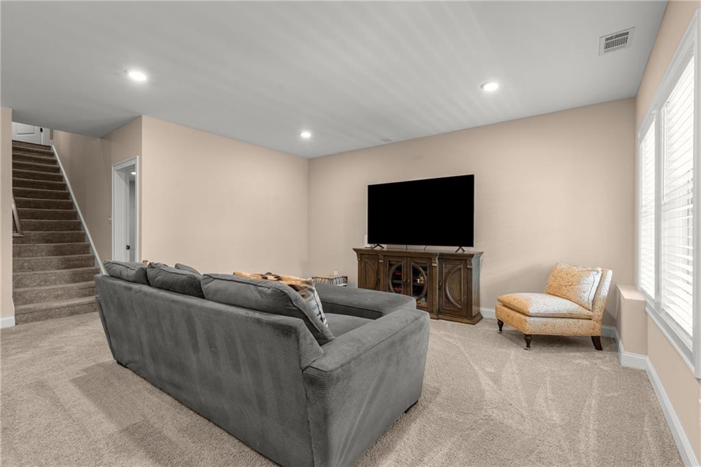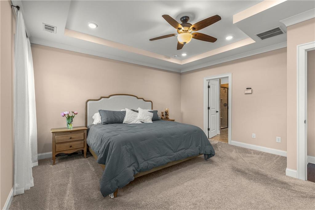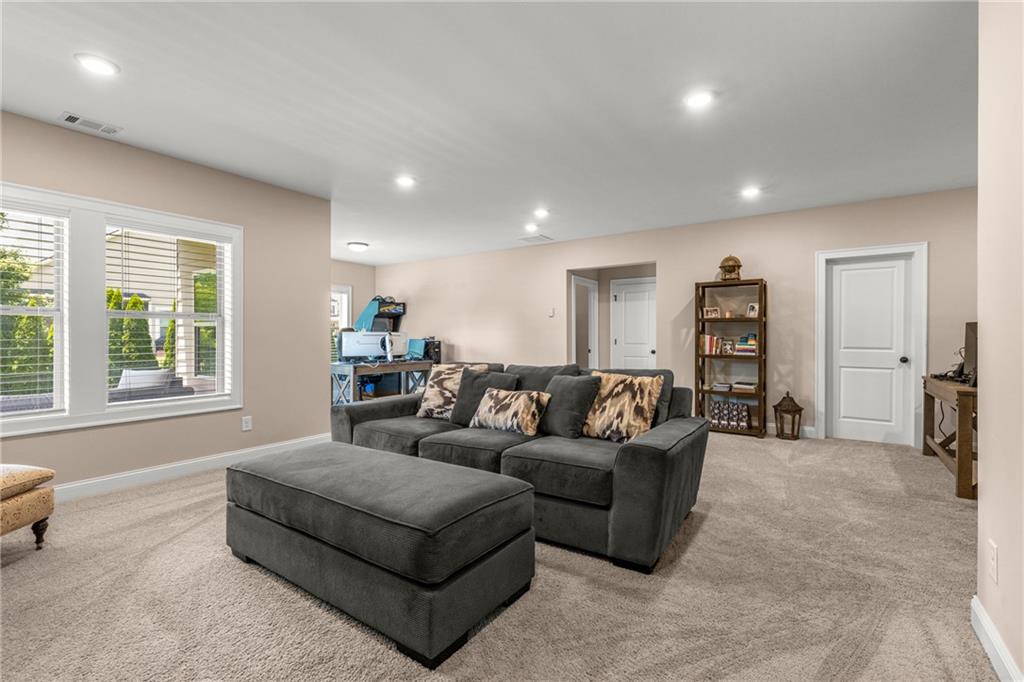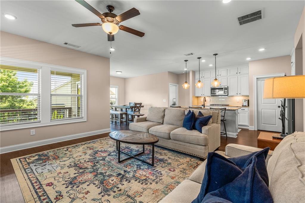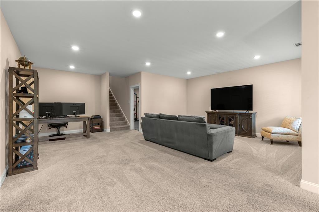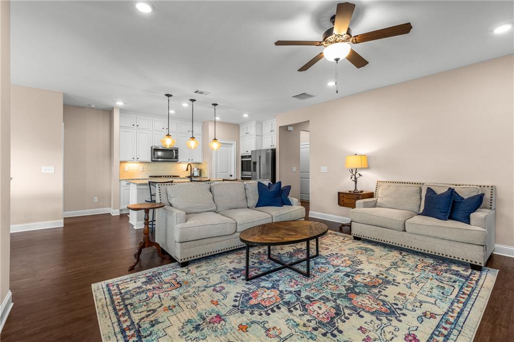 Beautiful Ranch on Cul-de-Sac Lot with Finished Basement in Sought-After Lauren Canyon! This energy-efficient, one-level living ranch home offers an ideal blend of comfort, style, and function. Open-concept layout seamlessly connects the kitchen, family room, and dining area. The stunning chef’s kitchen features a farmhouse sink, granite countertops, floor-to-ceiling white cabinetry, subway tile backsplash, 4-seater island, walk-in pantry, and premium stainless steel appliances, including double wall ovens, separate gas cooktop, built-in microwave, and dishwasher. USB ports in the kitchen add modern convenience. Enjoy abundant natural light from numerous windows on the main level. LVP flooring flows through the main level, excluding bedrooms. The family room boasts a cozy fireplace and charming decorative windows, while upgraded light fixtures enhance every space. Full walk-in laundry room. The primary suite impresses with a tray ceiling, dual vanity with granite, large walk-in shower, tile flooring, white cabinetry, and huge walk-in closet. Downstairs, the massive, finished basement offers incredible flexibility with space for two offices, a second family room, bedroom with walk-in closet, full bath, workout room, and unfinished storage. Enjoy Southern charm from your rocking chair front porch and relax in the fully fenced backyard with an oversized access gate, covered back patio, and covered deck off the breakfast room—perfect for entertaining! Take advantage of resort-style Lauren Canyon amenities, including a pool, fitness center, clubhouse, tennis, golf, and playground. Conveniently located near Northside Hospital-Cherokee, I-575, shopping, and dining.