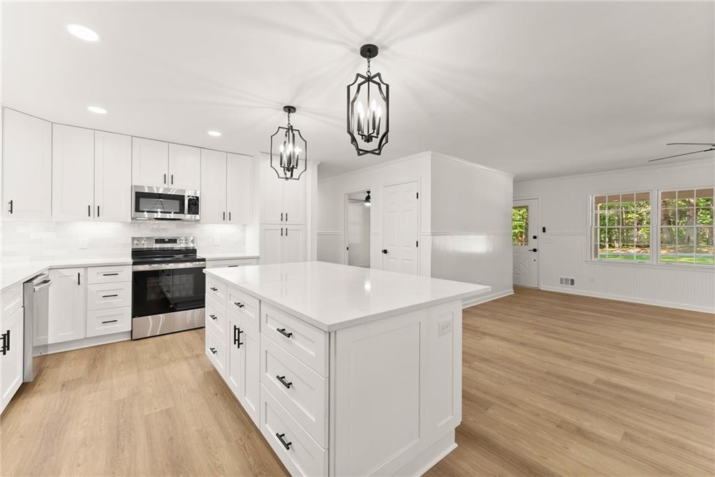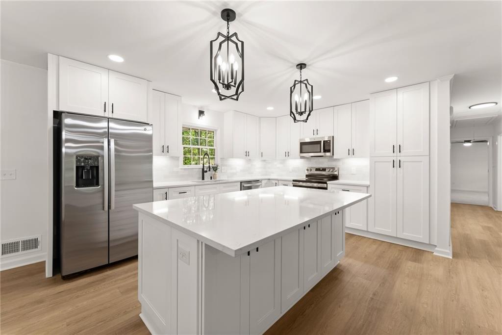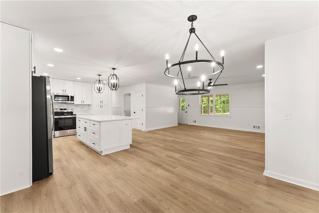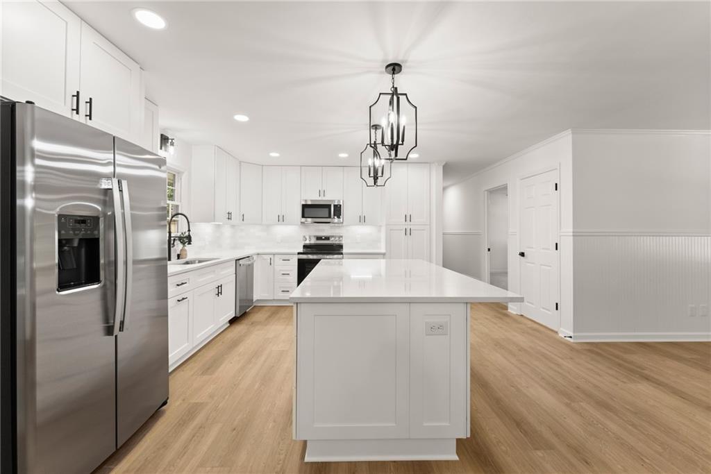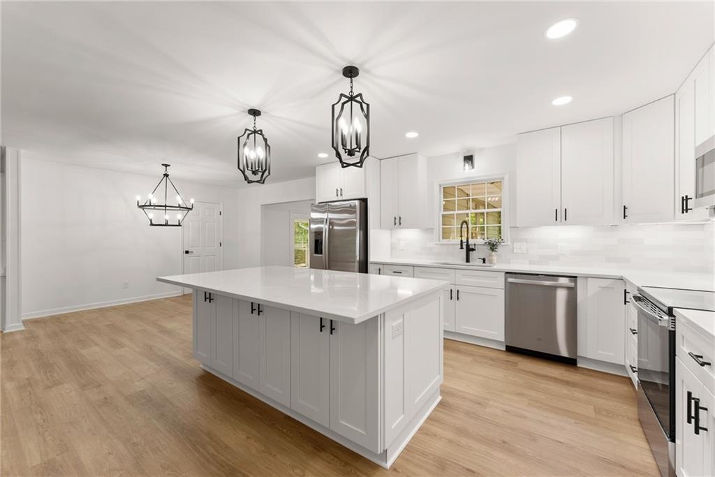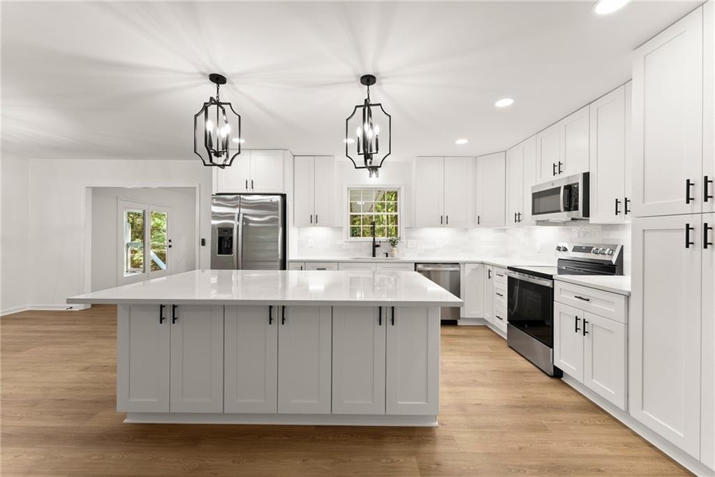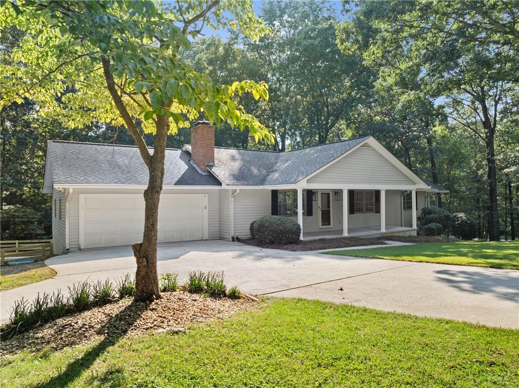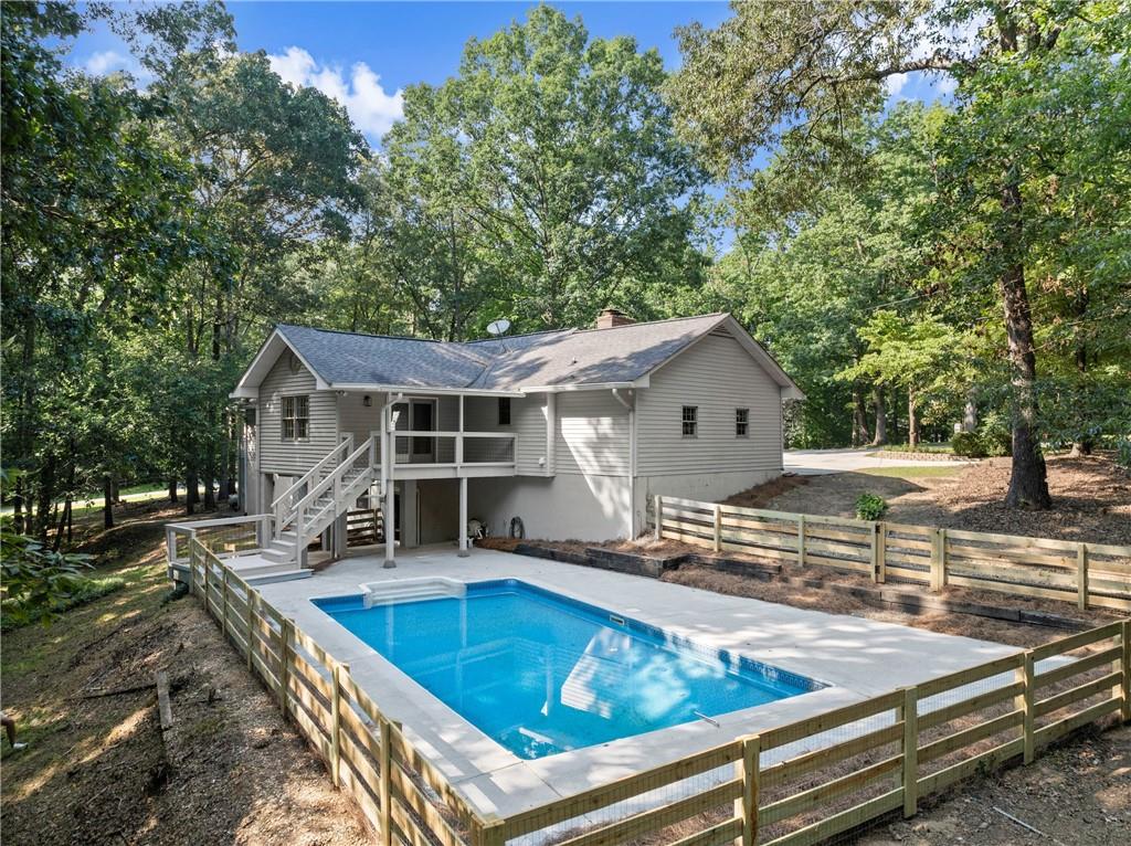 Welcome to your dream home! This stunning 3-bedroom, 3-bath renovated ranch on an unfinished basement perfectly blends modern elegance with natural charm. Situated on a corner lot and surrounded by lush greenery, this home features a spacious master-on-main suite with a luxurious bath offering a double vanity, separate shower, and tub/shower combo. The gourmet kitchen is a chef’s dream, showcasing white cabinets, a breakfast bar, kitchen island, solid surface counters, pantry, and an open view to the family room perfect for entertaining. The open-concept dining area flows seamlessly into the inviting family room, complete with a cozy fireplace. Enjoy the sunroom with its panoramic wooded views, and take advantage of the main-level laundry for added convenience. Downstairs, the unfinished basement offers endless possibilities with bath stub-out, daylight access, a second fireplace, and exterior entry. Step outside to your private backyard oasis featuring a fenced yard, in-ground pool, and a spacious deck ideal for summer lounging and entertaining. A secondary driveway provides easy access to the backyard, offering added convenience for guests or storage. Additional highlights include hardwood and carpet flooring, cathedral ceilings, walk-in closets, insulated windows, and a 2-car attached garage. Don’t miss your chance to call this serene retreat home, schedule your showing today!