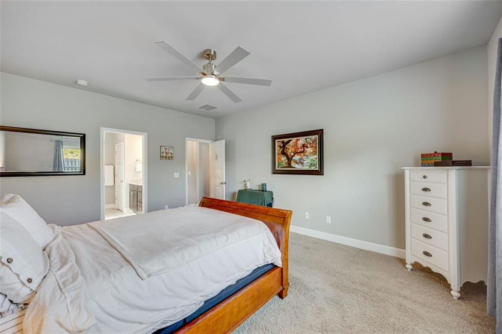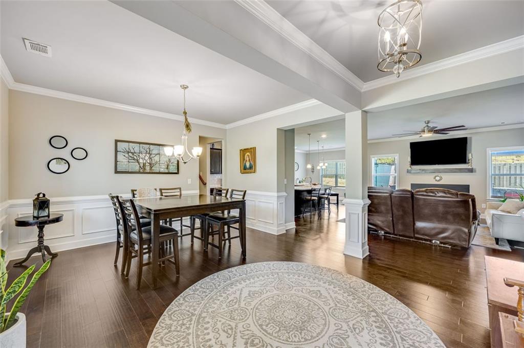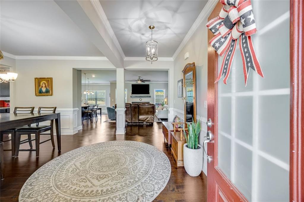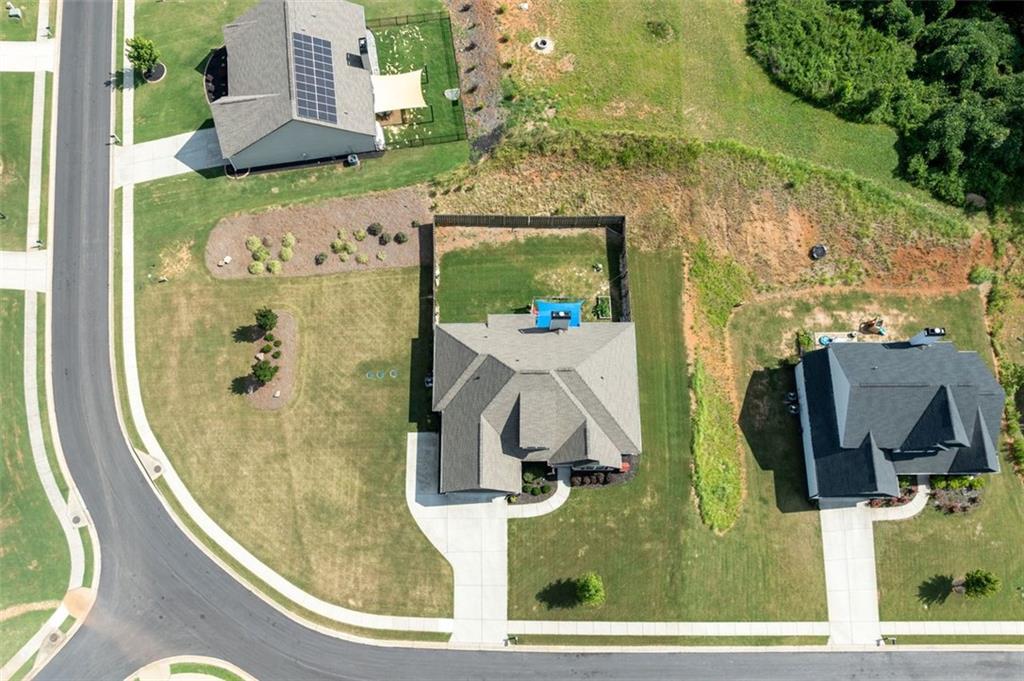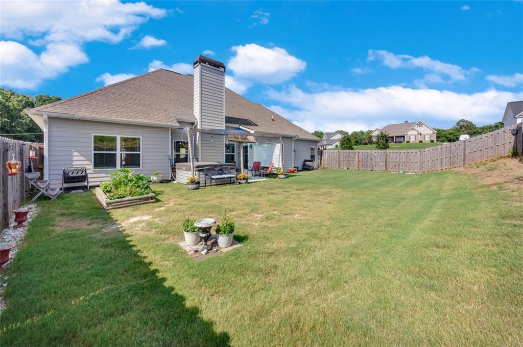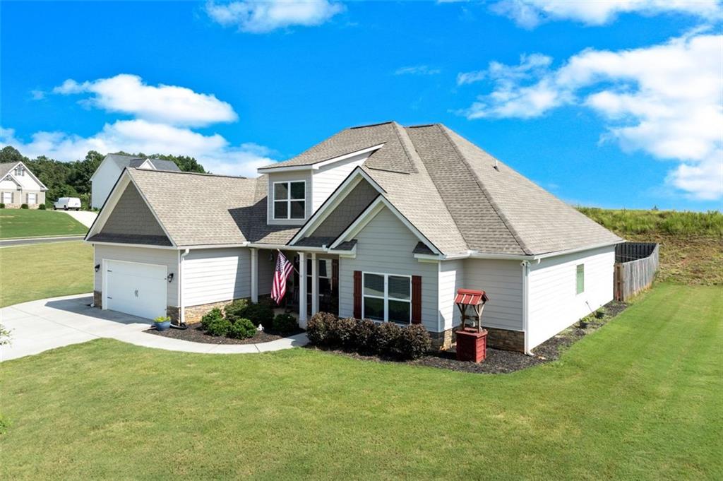 Impressive corner lot home in Highland Gates community of North Hall offering everything you need in this spacious open floor plan (The Ferdinand) on a generous level half-acre with five bedrooms and four bathrooms designed for comfortable living with a covered front porch, foyer, formal dining room open to your kitchen, and family room. Massive kitchen area with breakfast area and large island, granite countertops, stainless appliances and tons of storage. The main floor features a luxurious owner's suite with a master bath with a separate shower and garden tub. Main level also offers three additional bedrooms and/or office space, two full bathrooms, and a convenient laundry room located off the kitchen near a private guest suite. Upstairs offers a versatile fifth bedroom, which could also serve as a bonus room and includes a full bath and its own separate HVAC control for personalized comfort. Outdoor amenities include a fenced-in yard with a patio, hot tub, and a raised garden bed. The home is also equipped with Ring cameras. Additional parking space added to driveway. Residents can enjoy access to a community pool and playground.