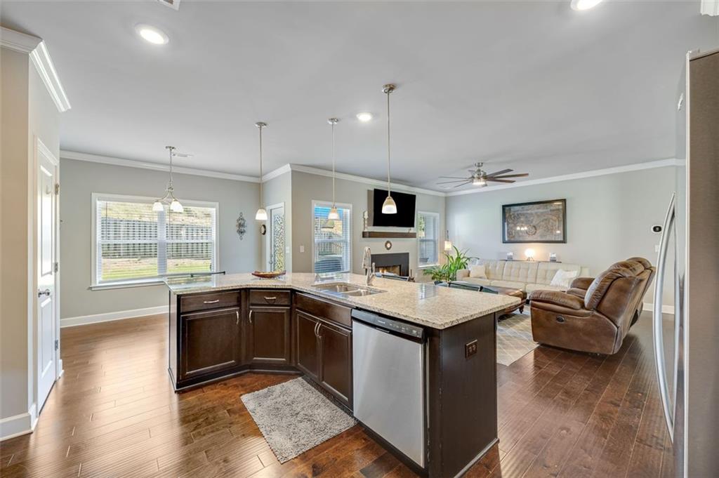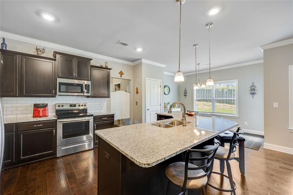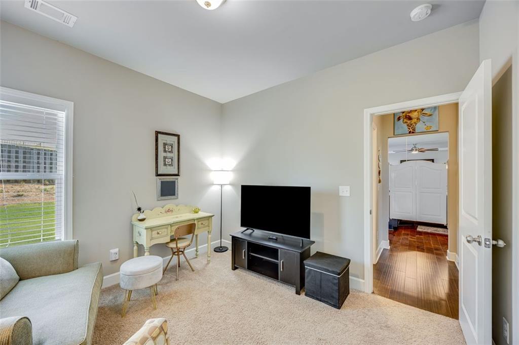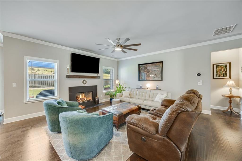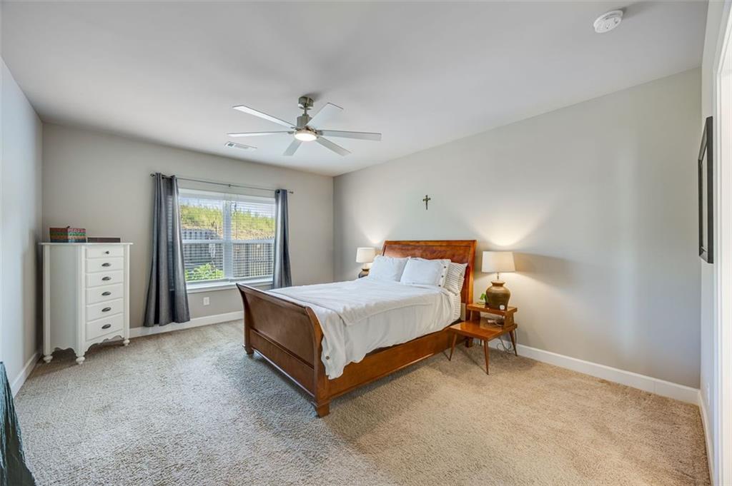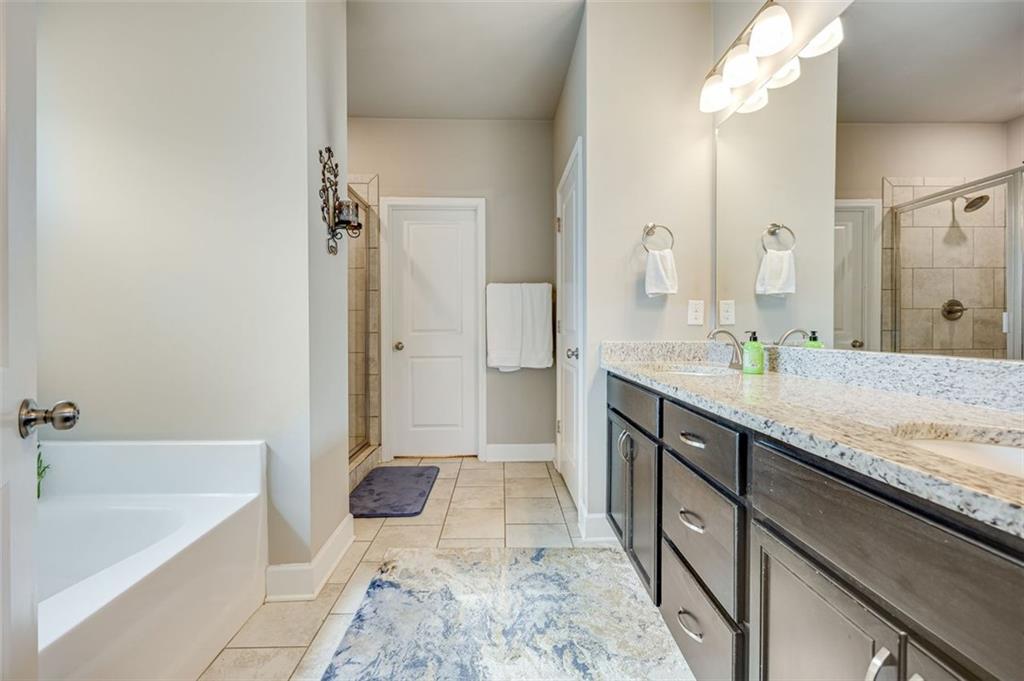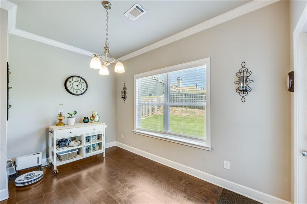 Impressive corner lot home in Highland Gates community of North Hall offering everything you need in this spacious open floor plan (The Ferdinand) on a generous level half-acre with five bedrooms and four bathrooms designed for comfortable living with a covered front porch, foyer, formal dining room open to your kitchen, and family room. Massive kitchen area with breakfast area and large island, granite countertops, stainless appliances and tons of storage. The main floor features a luxurious owner's suite with a master bath with a separate shower and garden tub. Main level also offers three additional bedrooms and/or office space, two full bathrooms, and a convenient laundry room located off the kitchen near a private guest suite. Upstairs offers a versatile fifth bedroom, which could also serve as a bonus room and includes a full bath and its own separate HVAC control for personalized comfort. Outdoor amenities include a fenced-in yard with a patio, hot tub, and a raised garden bed. The home is also equipped with Ring cameras. Additional parking space added to driveway. Residents can enjoy access to a community pool and playground.