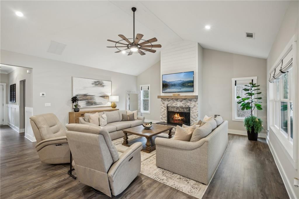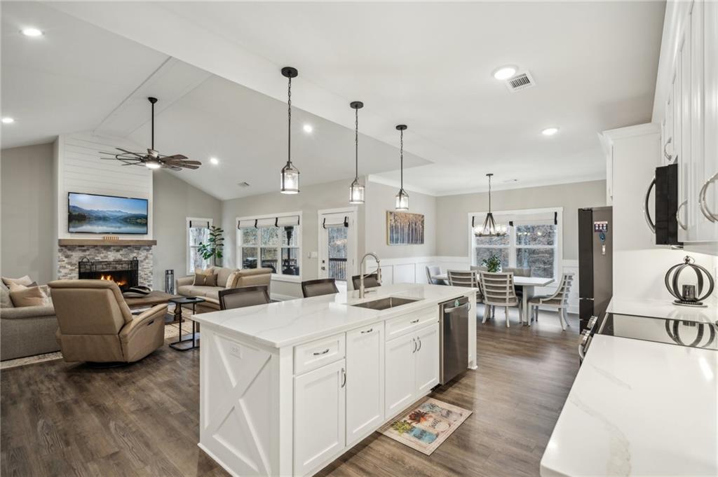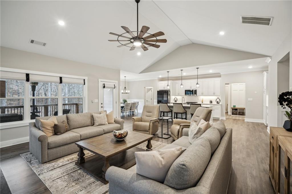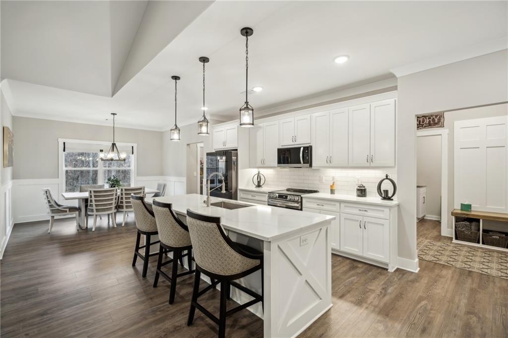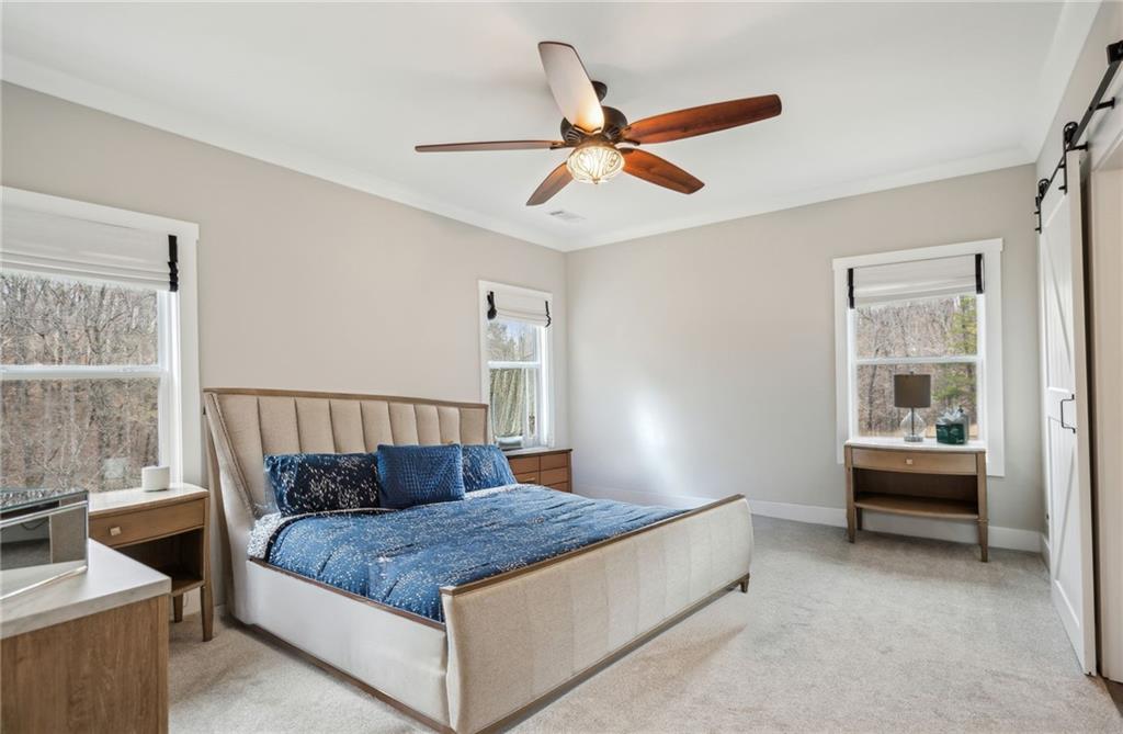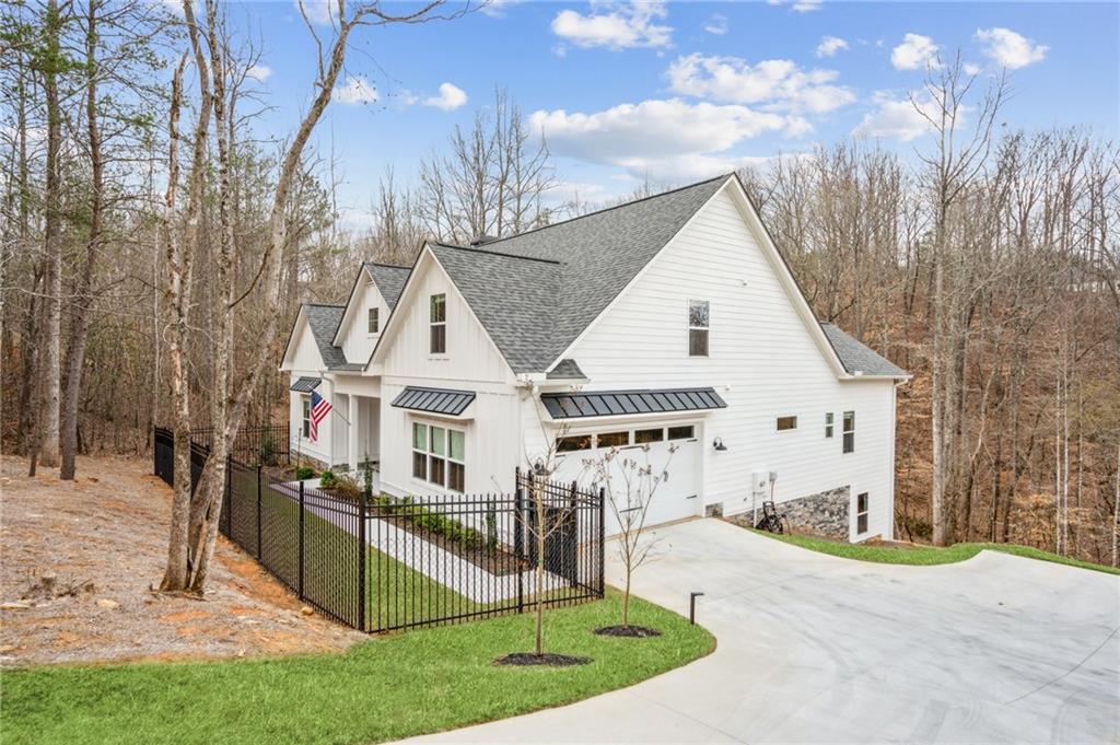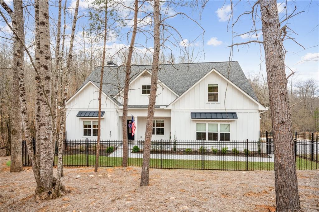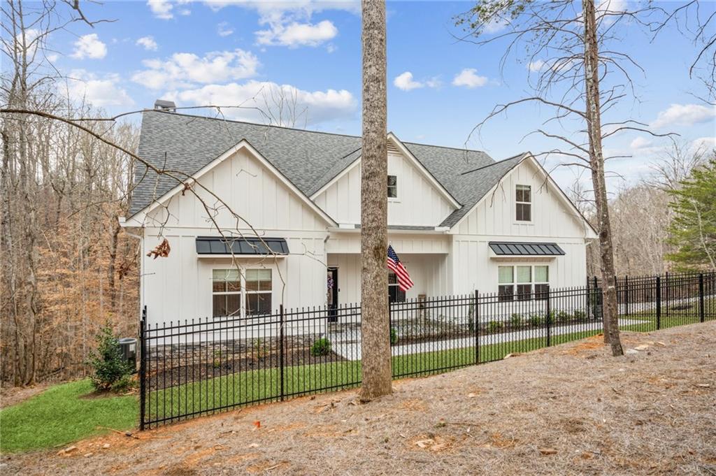 PRICE IMPROVEMENT WELL BELOW MARKET VALUE! LENDING OPTIONS AVAILABLE THROUGH OUR PREFERRED LENDERS THAT COULD BRING YOUR INTEREST RATE AS LOW 5.875% w/ ONLY 10% DOWN AND NO PMI for qualified applicants! Stunning Custom-Built Home on 2.24 Acres with running creek in your back yard** Nestled on a private 2.24-acre cul-de-sac lot in the highly sought-after Overlook subdivision in North Hall, this exceptional 4-bedroom, 3.5-bath custom-built masterpiece offers the perfect blend of modern farmhouse aesthetics and luxurious living. Enjoy the soothing sounds of a gentle creek flowing behind the property as you unwind on your expansive 14' x 18' covered rear deck. Step inside this like-new home (built in 2023) and be greeted by an inviting layout crafted for both comfort and style. Featuring a clever design with two master suites conveniently located on the main floor (with a total of three bedrooms on the main level), this home is perfect for families and guests alike. The upper floor includes a spacious fourth bedroom and a third full bath, providing ample space for everyone. The heart of the home is an expansive, open living area and kitchen, which boasts a large island ideal for meal prep and casual seating for all your guests. It is equipped with all stainless steel/high end appliances/fixtures, quartz countertops, and beautiful tile backsplash. The open kitchen/living room boasts a large breakfast area, custom shaker solid wood cabinets with soft-close features, under-cabinet lighting, huge windows allowing for tons of natural light, and an elegant custom fireplace. Enjoy beautiful tongue and groove wood ceilings on the porch, along with a large master en-suite showcasing a luxurious tiled shower with a bench. Custom trim and crown molding throughout the home add an additional touch of sophistication. This smart and energy-efficient home is equipped with LED lighting, Wi-Fi garage opener, and doorbell, ensuring modern conveniences at your fingertips. You'll also find a wealth of closet and storage space, perfect for all your organizational needs. Situated in a serene cul-de-sac, this property offers you the rare benefit of no HOA, giving you the freedom to fully enjoy your beautiful surroundings. With its prime location close to Mt. Vernon Road and Hwy 60, you will appreciate the perfect balance of tranquility and accessibility. Don’t miss out on this move-in-ready gem. Schedule your private showing today and experience the lifestyle you've always wanted!