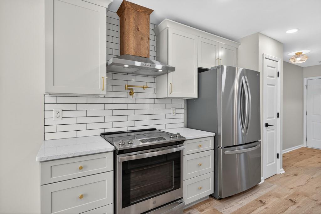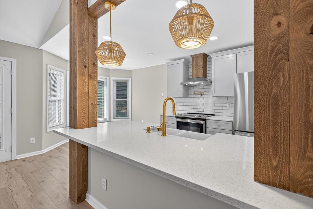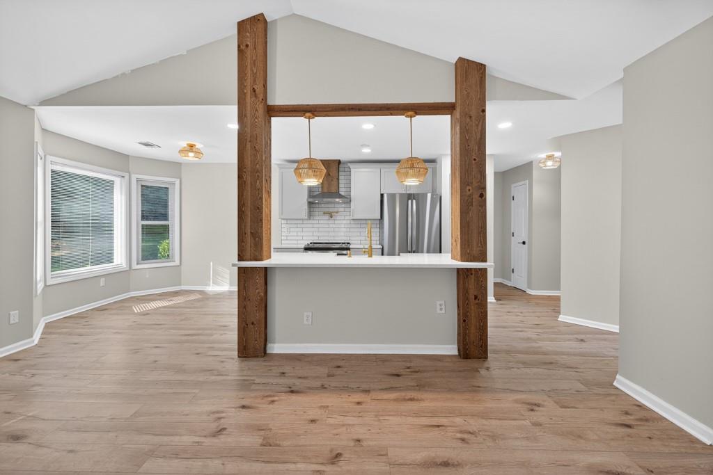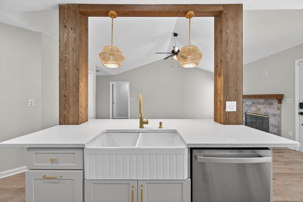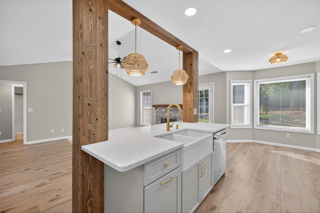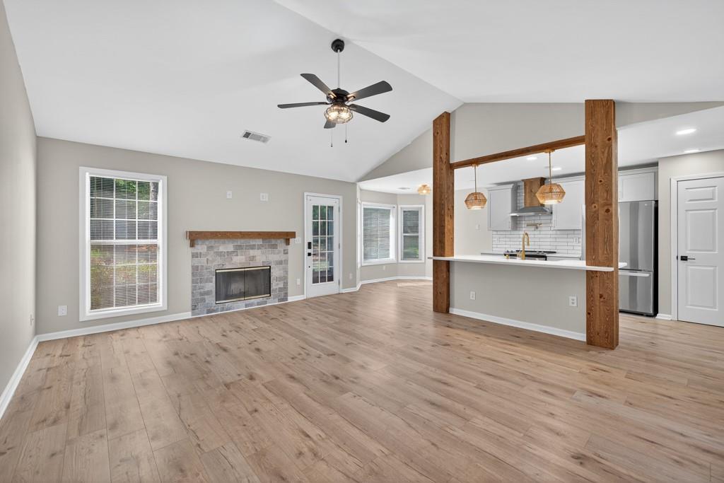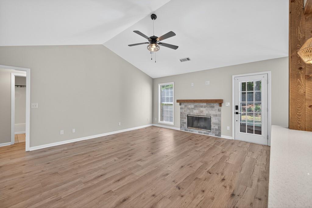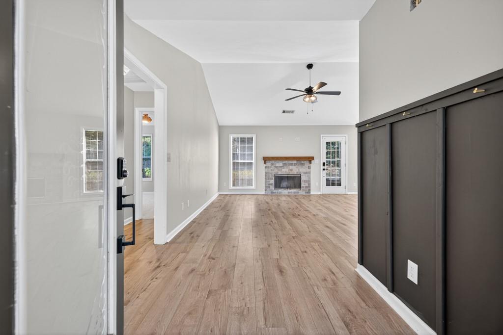 Meticulously maintained ranch home located in Hoschton, GA. Open and bright with beautiful landscaping around the house. Recently renovated to give the house an open concept floor plan. Dining room views into the large living room which opens to a fully renovated kitchen with a huge island. New kitchen cabinets, diamond quartz countertops, farmhouse sink and stainless steel appliances. There is a pot filler faucet above the stove and the new vent hood vents to the exterior of the house. Fireplace was redesigned to match the kitchen design. Large primary bedroom with a beautifully renovated bathroom. Secondary bedrooms are a split bedroom plan with a large hall bath. LVP floors throughout the house. All the carpets in the house from the rooms to the closets are brand new. Interior freshly painted. 2 car side entry garage. Outside is landscaped with a level backyard ready to enjoy. Large lot with plenty of room from the neighbors. Great location with Little Mulberry Park minutes away. Convenient to stores and restaurants and all that the Hamilton Mill area offers. Wonderful and highly rated schools. This is one of the few neighborhoods in this area with no HOA. This home, neighborhood and area offers so much. Call today for a tour.