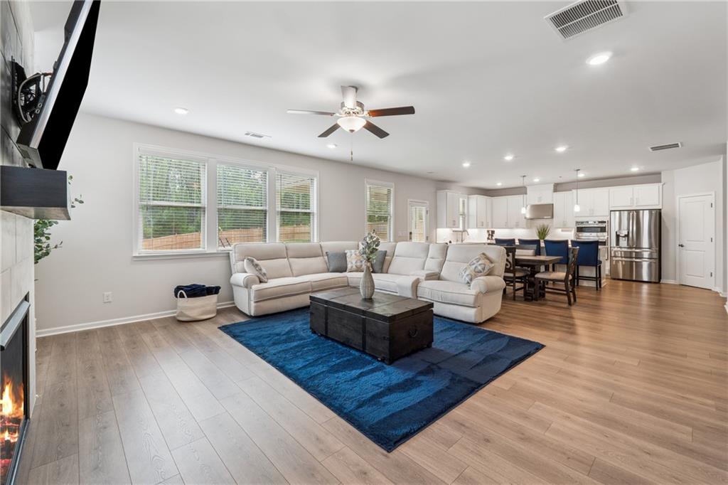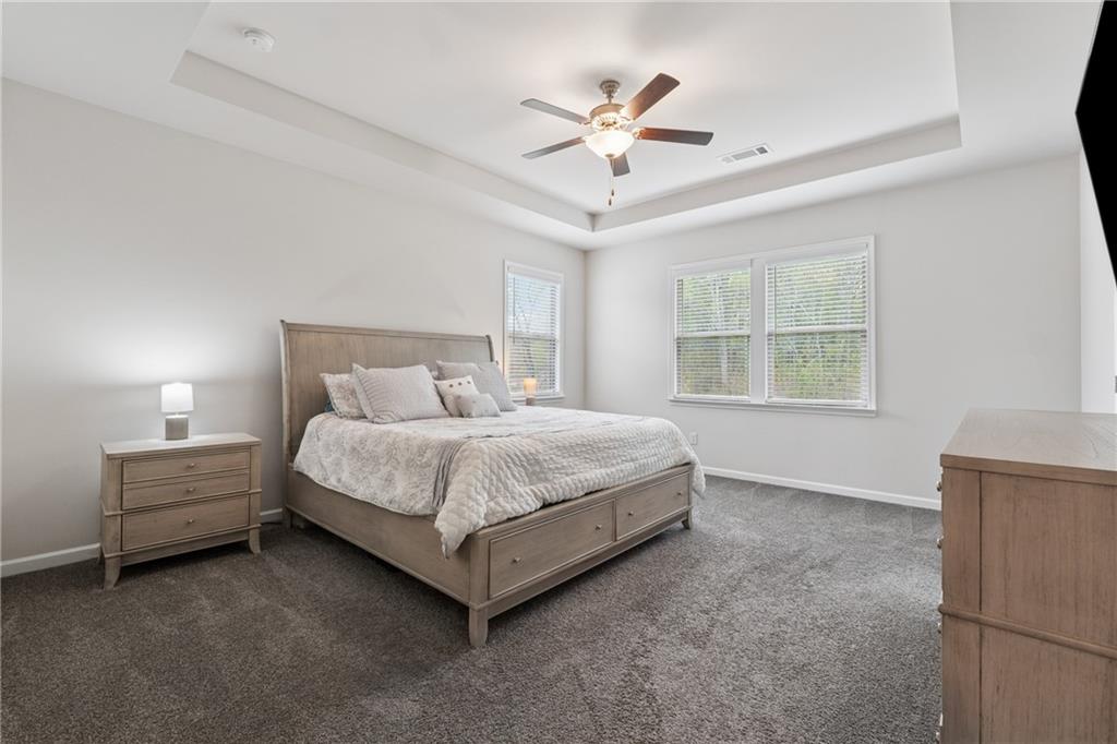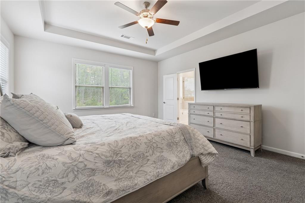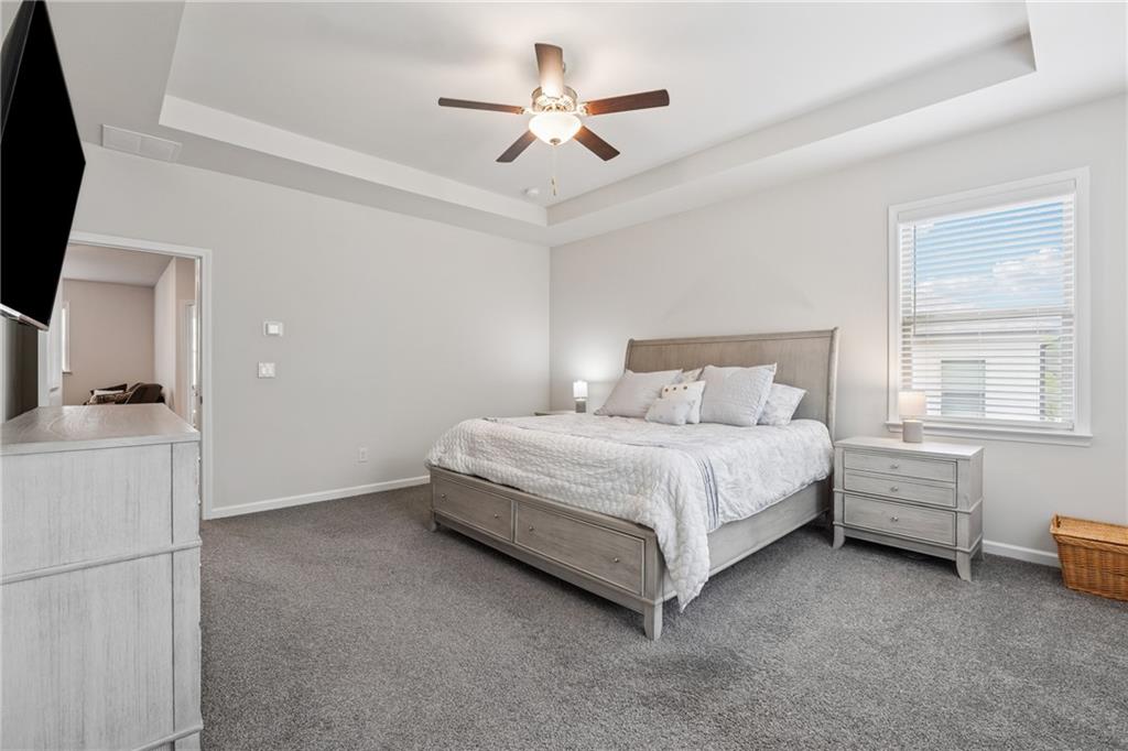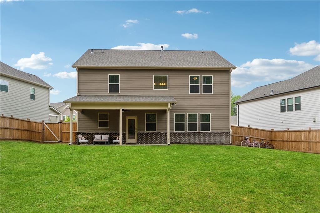 Motivated Sellers! Nestled on the second-largest lot in the community, this home boasts the largest fenced backyard, providing an incredible outdoor oasis with endless possibilities for entertaining, relaxation, and recreation. Step inside to be greeted by an open-concept design that seamlessly blends the kitchen and living areas, creating a bright and inviting space perfect for gatherings. The gourmet kitchen features premium finishes, ample cabinetry, and a spacious island, making it a chef’s delight. A generously sized first-floor bedroom with a private ensuite offers the perfect retreat for guests or multi-generational living, along with a convenient half-bathroom for added functionality. Upstairs, the expansive master suite is a true sanctuary, featuring his and her vanities, a soaking tub, a separate shower, and dual walk-in closets. A cozy loft area provides the perfect space for relaxation, an office, or an additional entertainment zone. Another spacious bedroom with its own private ensuite offers exceptional comfort, while two additional oversized bedrooms share a beautifully appointed bathroom. The upstairs laundry room adds convenience, making everyday living effortless. With generously sized bedrooms throughout, this home offers space, privacy, and flexibility for any lifestyle. Don’t miss this rare opportunity to own one of the largest and most desirable properties in the community!