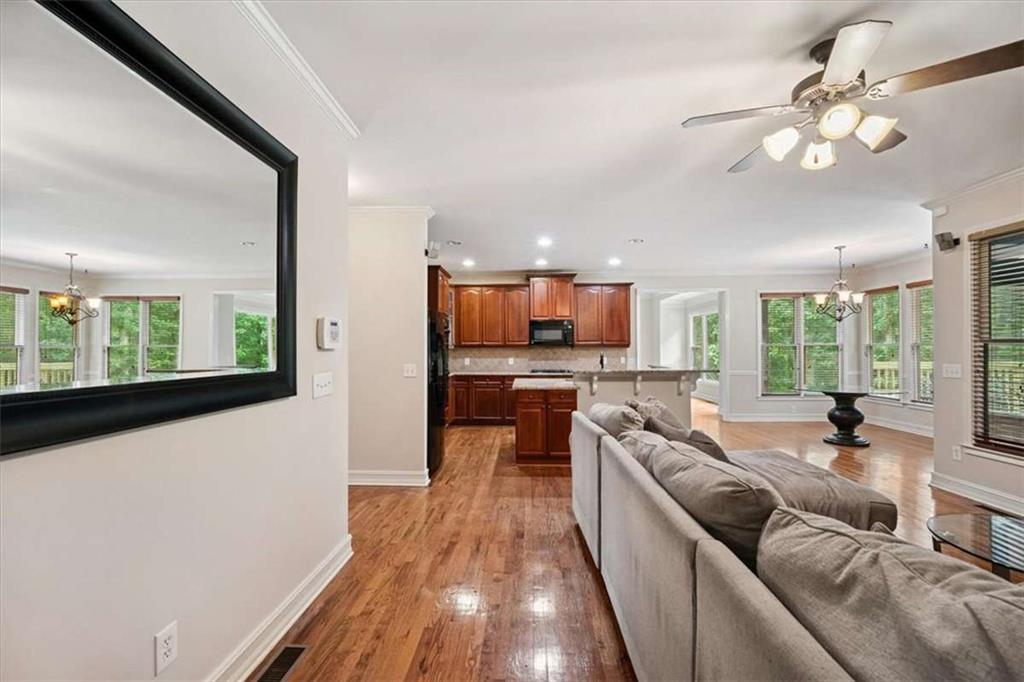 Looking for space and privacy at the same time? This home can accommodate you. This home was customized by the original owner with a full bedroom and bath on the main level. Calling all chefs to this large kitchen that can handle the gadgets and array of food selections, spices, and condiments with all of cabinets and countertop space. Breakfast area and keeping room with fireplace. Large dining room, and family room with fireplace overlooking backyard.