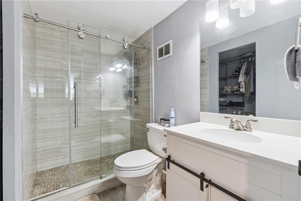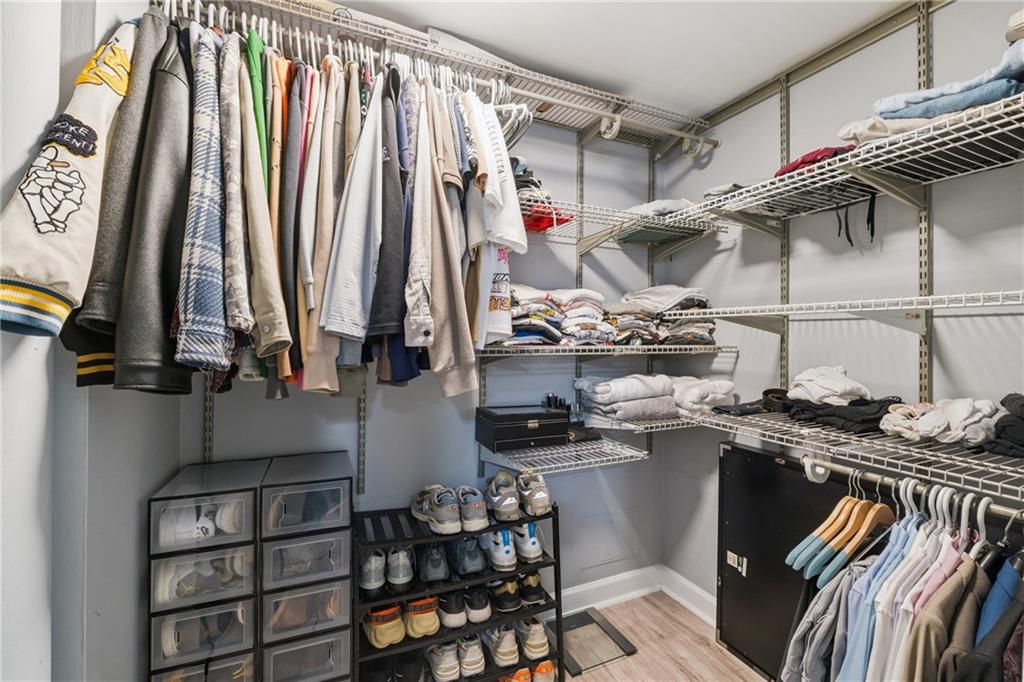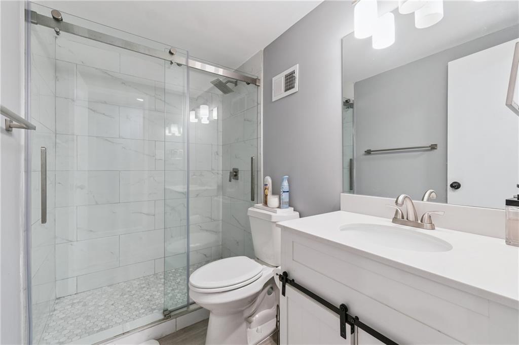Welcome to one of the largest and most upgraded 2-bedroom units in Slaton Manor, where modern living meets smart technology in the heart of Buckhead. This spacious 2-bedroom, 2-bath condo features full Google Smart Home integration—just add your Nest Hub. Enjoy smart lighting, a smart thermostat, and a security system that provide convenience and peace of mind. Recessed lighting highlights the sleek, open-concept layout, while oversized windows fill the home with natural light and offer serene treetop views. The updated kitchen boasts quartz countertops, stainless steel appliances, and a stylish backsplash. Both bedrooms are generously sized with upgraded finishes and ample closet space. One reserved parking space is included (monthly fee applies), offering added convenience in this highly sought-after community near premier shopping, dining, and entertainment. Seller incentive: With an acceptable offer, the seller will cover six months of HOA special assessments.