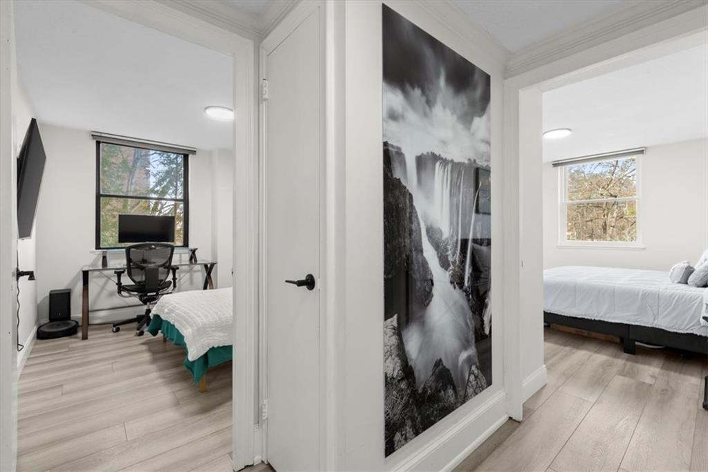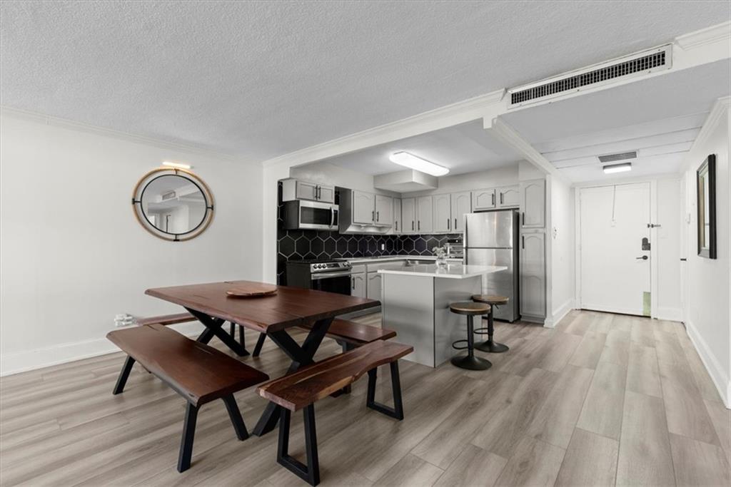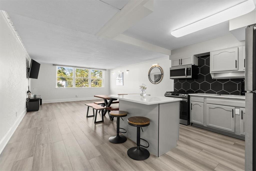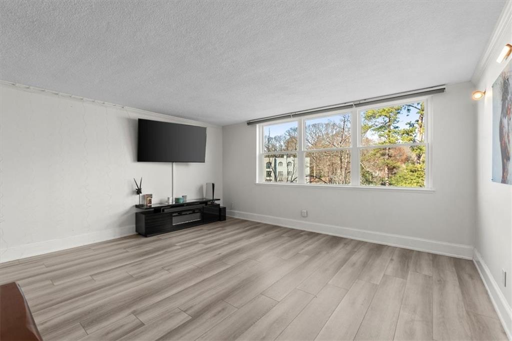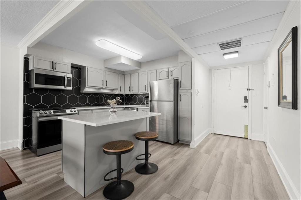 Discover effortless living in this beautifully renovated 2-bedroom, 2-bath condo located in the Slaton Manor building. This condo exudes modern charm with upgrades that include sleek LVP flooring, an open floor plan, and a kitchen that boasts quartz countertops, a stylish tiled backsplash, and storage. Both full bathrooms have been tastefully renovated, adding to the contemporary appeal. Enjoy the convenience of a reasonable monthly fee that covers ALL utilities except cable and internet. The building offers fantastic amenities, including a lower-level laundry room, a community room with a full kitchen, secure storage rooms, and mailboxes. Step into the backyard oasis featuring a fenced pool—accessed easily via the back door of the main lobby. Additional perks include two reserved garage parking spaces transferable to the new owner. Situated just steps from Peachtree Road, you'll be moments away from everything Buckhead has to offer—from grocery stores and coffee shops to trendy restaurants and luxury shopping. NO FHA, VA Loans Allowed. HOA: INCLUDES ALL UTILITES