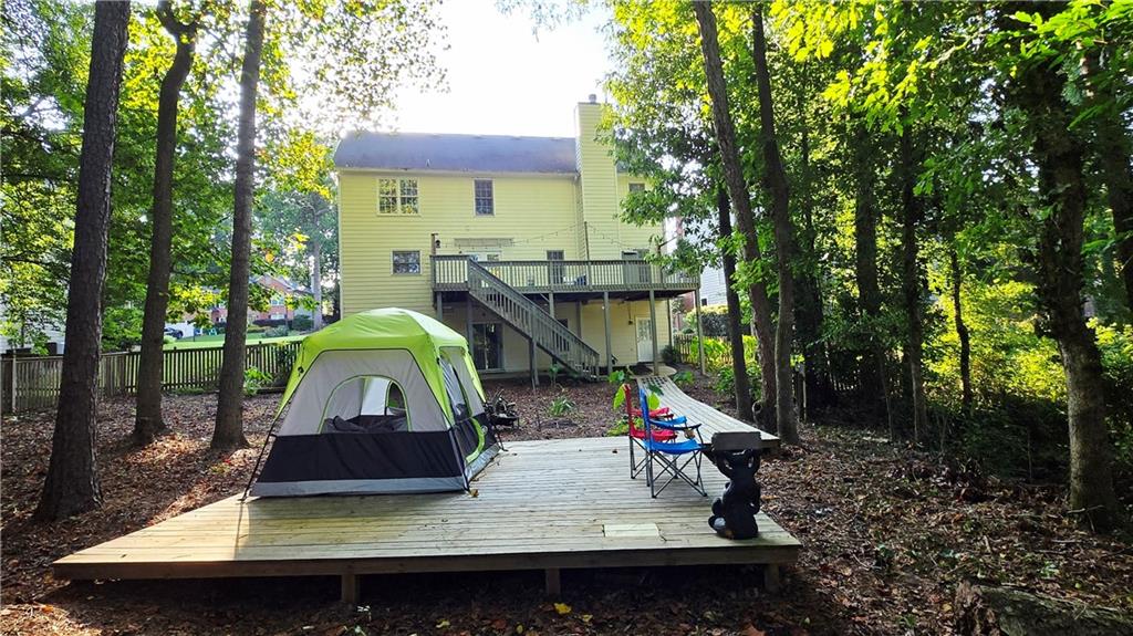 This property is nicely located near Highway. Just 30 min away from Atlanta Airport. The Property has the biggest private backyard with a tranquil creek to do anything you want. Fully finished basement you can use for any other moment in the future.