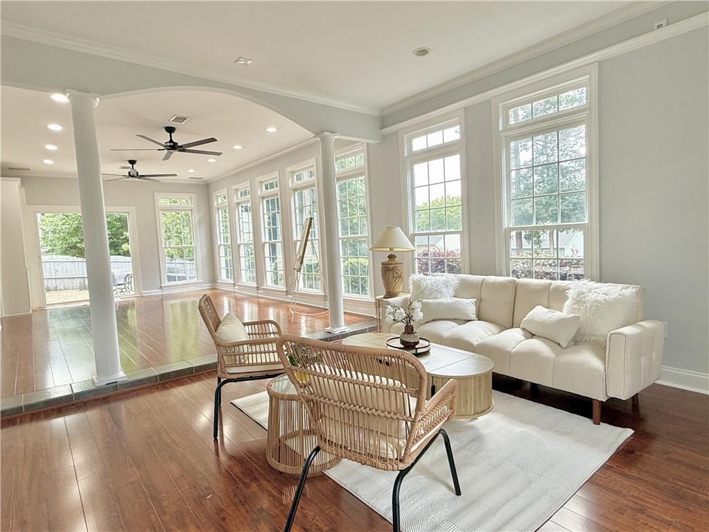 Discover your dream home in one of Georgia's most desirable communities! Close to I-85, Collins Hill Park, lake recreation, and so on! Nestled in a quiet neighborhood, 445 Sweet Ivy Ln offers a perfect balance of charm, space, and modern convenience. This beautifully maintained residence features 5 spacious bedrooms, 3 full bathrooms, a recently renovated kitchen, a spacious living room, a fully enclosed sunroom with hardwood flooring, and a large backyard. The home is fully repainted, with all the restrooms just renovated before the listing. On top of that, the full renovation was less than a year ago! The backyard was fully redesigned after the current owner's occupancy, adding many functional features but maintaining the privacy setting. The fully enclosed sunroom provides extra indoor recreation spaces, rain or shine. It is a true gem waiting for its next owner.