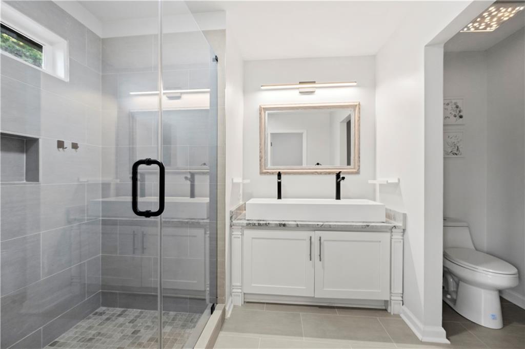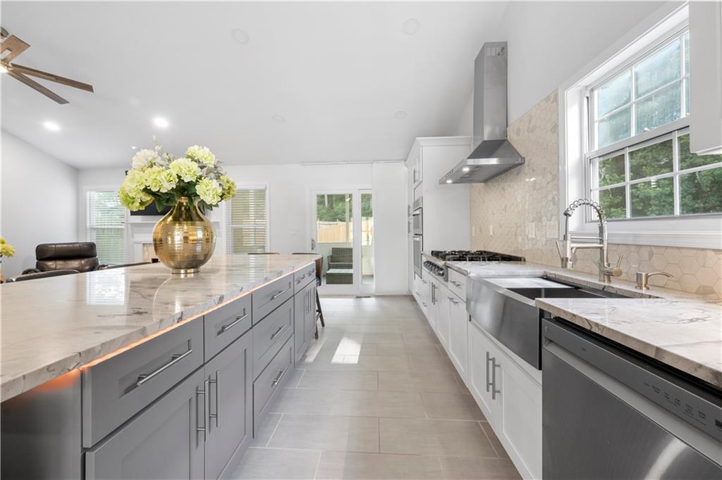 This elegantly designed, centrally situated residence offers four spacious bedrooms and three full bathrooms. This home has been fully remodeled inside and out providing an opportunity to indulge in luxurious living! Upon entering the upper level, one is immediately struck by the refined design of the expansive open-concept floor plan, which features abundant natural light, elevated ceilings, and high-end finishes. The gourmet kitchen offers both functionality and style, with ample storage, stainless steel appliances, a prominent vent hood, wall climbing backsplash, custom shaker cabinets, an oversized island seating more than eight people plus upgraded quartz countertops! The spacious dining and living areas, complemented by a covered terrace enhance the usable living space. Meanwhile, the bedrooms and designer spa-style bathrooms achieve a harmonious balance between luxury and versatility. The lower level includes laundry facilities and features an elegantly designed bathroom situated between a spacious bonus room and a large bedroom. Additionally, there is a substantial storage area located adjacent to the garage, and the property benefits from a recently installed roof. Contact the listing agent to arrange a tour of this impressive home!!