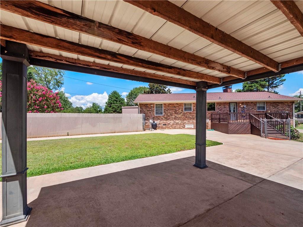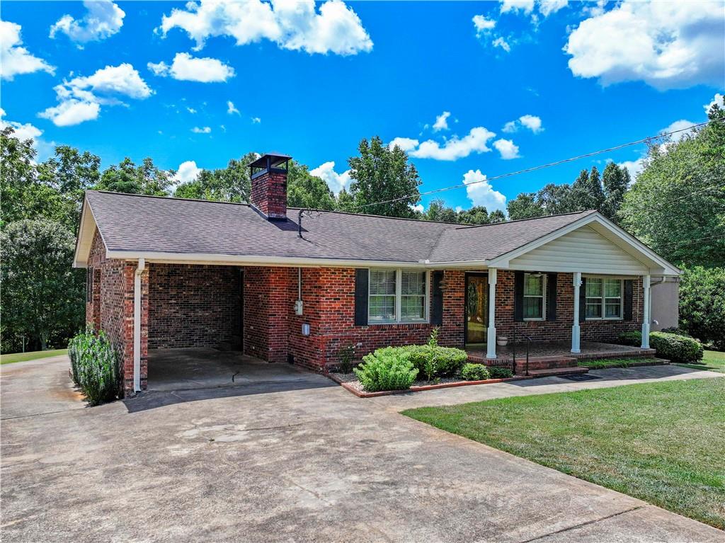 100% USDA Financing Eligible! Right in the heart of Hall County’s top school district, this charming brick home offers the perfect blend of comfort, character, and convenience. From the inviting front porch, you can take in beautiful mountain views. The spacious, level yard boast a brand new, underground dog fence and is surrounded by mature trees and lush shrubbery, creating a perfect space for kids and pets to play. The expansive backyard is perfect for entertaining, with plenty of room for outdoor gatherings. A fenced-in pool area (now filled in) provides potential for your personal touch. In addition, a large workshop in the backyard offers ample storage space for tools and equipment, while a separate pull-in area is perfect for lawnmowers or other outdoor gear. Inside, the living room features a cozy rock-faced fireplace and warm wood walls, creating a welcoming atmosphere. The wood cabinetry throughout adds rustic charm to the interior. Located just 3 miles from the North Hall Community Center and a variety of great restaurants, this home offers the best of both quiet living and easy access to local amenities.