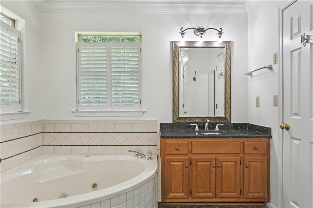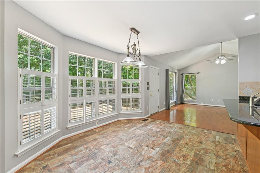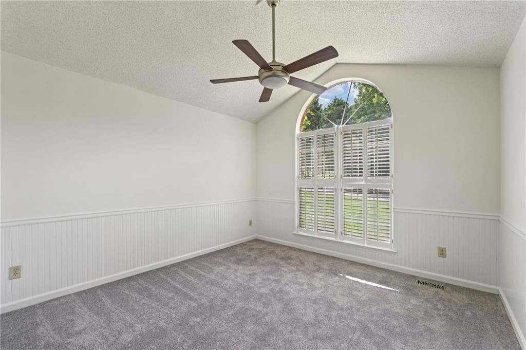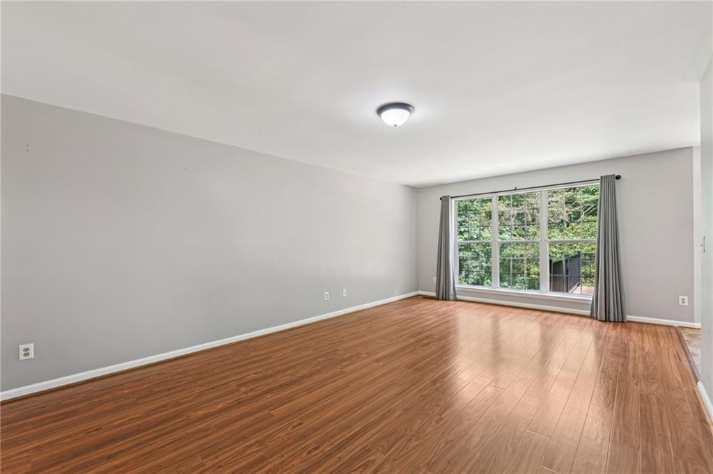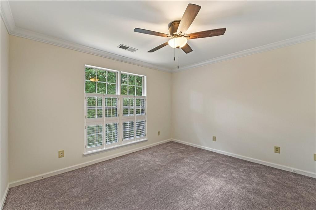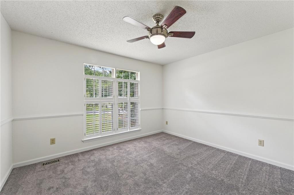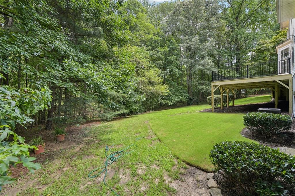 Beautiful home in a perfect setting! So close to shops, restaurants, loads of entertainment venues, and yet tucked away from the hustle and bustle. This large home features loads of living space on main floor, with the upper floor providing an additional bedroom, full bathroom, and a large entertaining room which easily converts to a 5th bedroom! Main floor features a huge dining room, family room, and even a large second living room. The spacious kitchen has a peninsula with lovely, stained wood cabinets and granite countertops, new stainless-steel refrigerator and dishwasher, walk-in pantry, and bayed window breakfast area. Master bedroom is oversized with high trey ceilings, large walk-in closet, and master bathroom with dual vanities, large corner whirlpool tub, and separate shower. New flooring throughout! New upstairs HVAC system! Fresh paint throughout. Don't miss the new oversized deck! This high-quality structure with no-rust aluminum railing is so lovely and made for entertaining! Crawl space is at least six feet high and offers great accessible storage space. Private backyard overlooks the neighbor's pond. Such a peaceful setting and yet within two miles of Coolray Field, Andretti's, Top Golf, Pickle & Social! Too many to name - simply a great location.