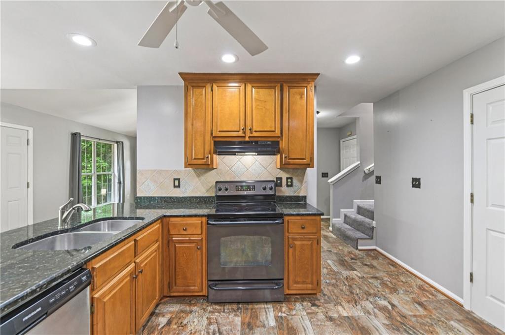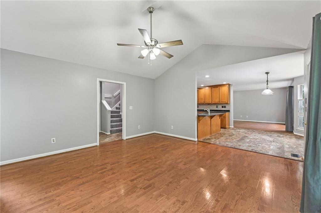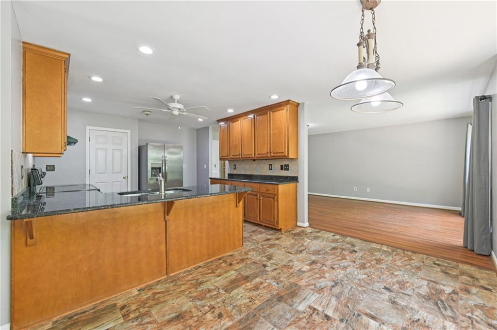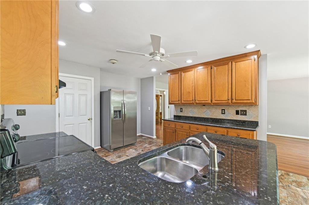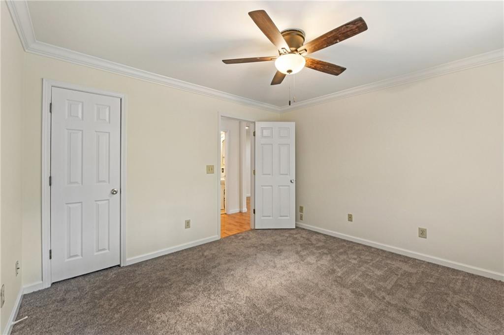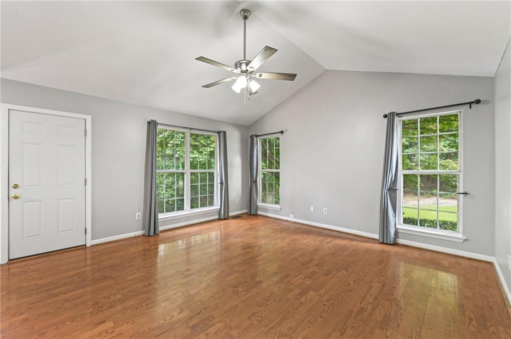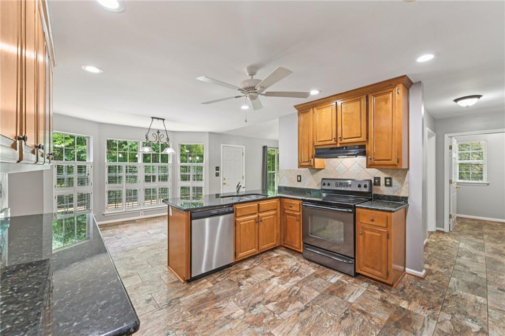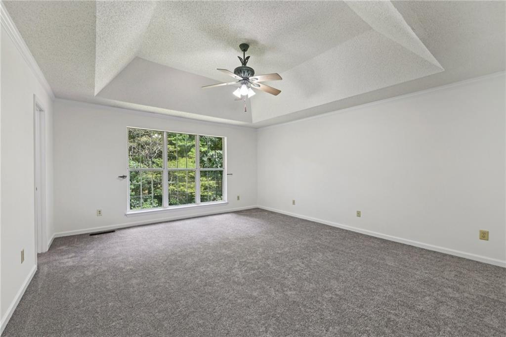 Beautiful home in a perfect setting! So close to shops, restaurants, loads of entertainment venues, and yet tucked away from the hustle and bustle. This large home features loads of living space on main floor, with the upper floor providing an additional bedroom, full bathroom, and a large entertaining room which easily converts to a 5th bedroom! Main floor features a huge dining room, family room, and even a large second living room. The spacious kitchen has a peninsula with lovely, stained wood cabinets and granite countertops, new stainless-steel refrigerator and dishwasher, walk-in pantry, and bayed window breakfast area. Master bedroom is oversized with high trey ceilings, large walk-in closet, and master bathroom with dual vanities, large corner whirlpool tub, and separate shower. New flooring throughout! New upstairs HVAC system! Fresh paint throughout. Don't miss the new oversized deck! This high-quality structure with no-rust aluminum railing is so lovely and made for entertaining! Crawl space is at least six feet high and offers great accessible storage space. Private backyard overlooks the neighbor's pond. Such a peaceful setting and yet within two miles of Coolray Field, Andretti's, Top Golf, Pickle & Social! Too many to name - simply a great location.