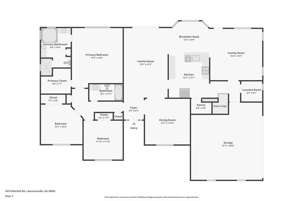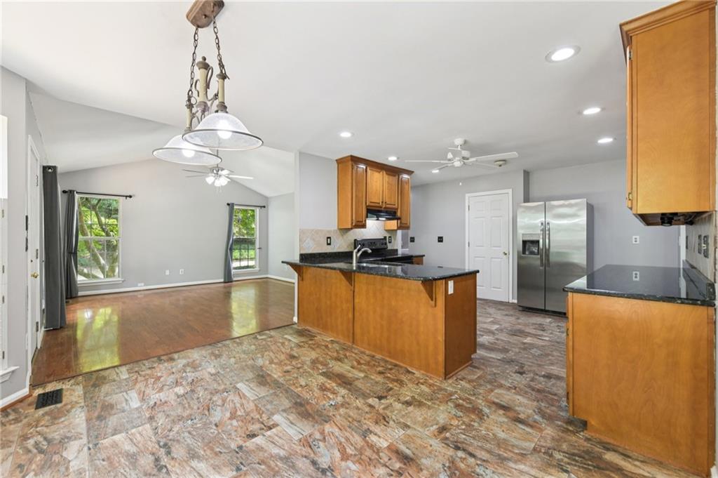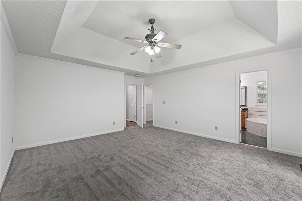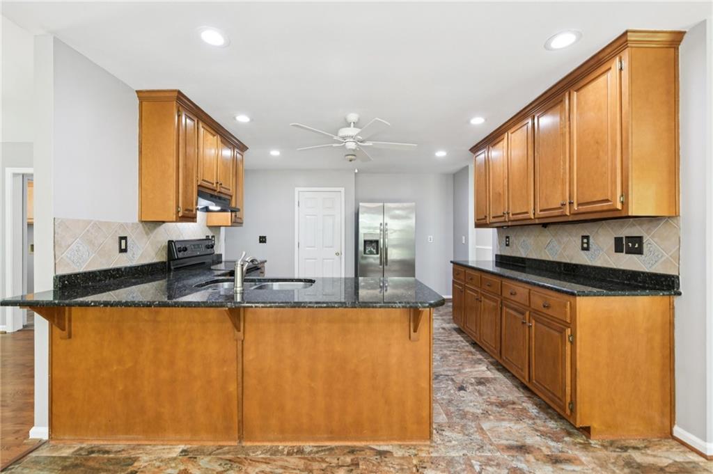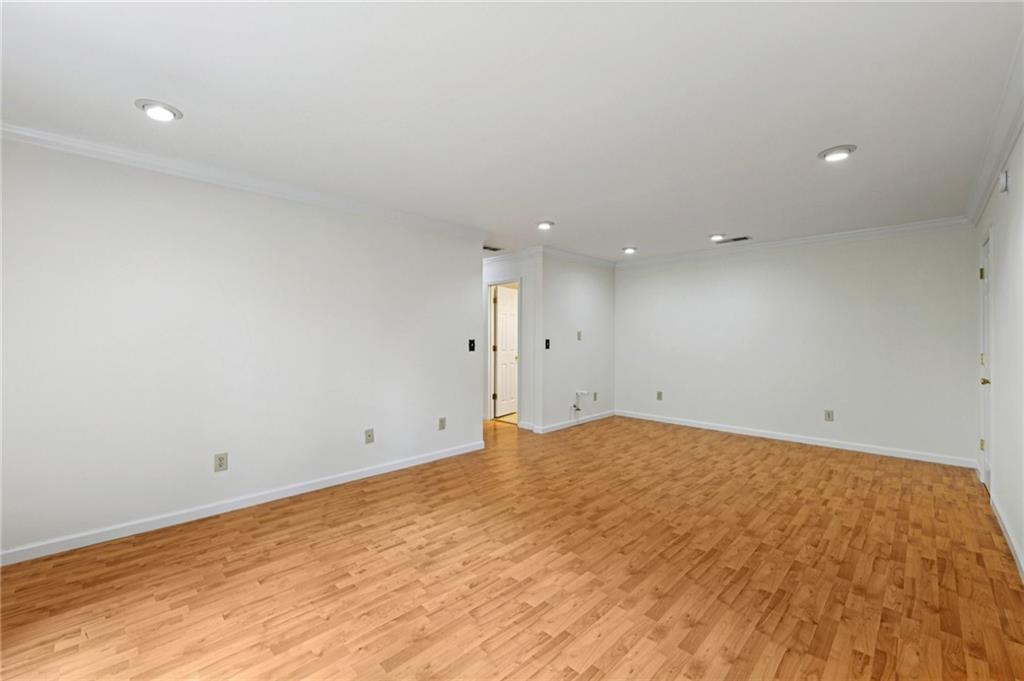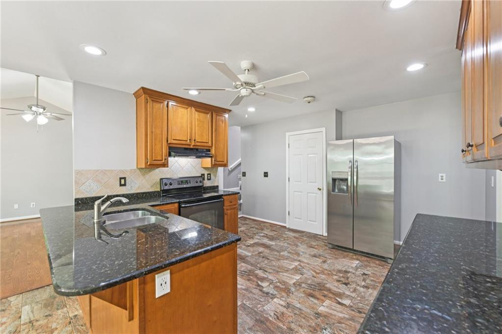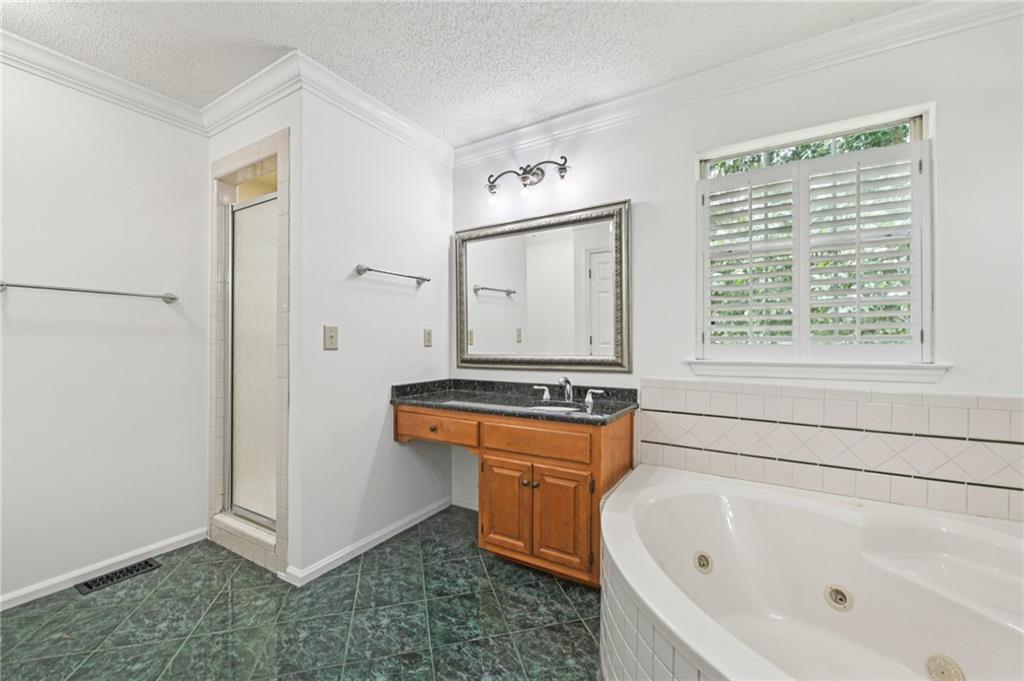 Beautiful home in a perfect setting! So close to shops, restaurants, loads of entertainment venues, and yet tucked away from the hustle and bustle. This large home features loads of living space on main floor, with the upper floor providing an additional bedroom, full bathroom, and a large entertaining room which easily converts to a 5th bedroom! Main floor features a huge dining room, family room, and even a large second living room. The spacious kitchen has a peninsula with lovely, stained wood cabinets and granite countertops, new stainless-steel refrigerator and dishwasher, walk-in pantry, and bayed window breakfast area. Master bedroom is oversized with high trey ceilings, large walk-in closet, and master bathroom with dual vanities, large corner whirlpool tub, and separate shower. New flooring throughout! New upstairs HVAC system! Fresh paint throughout. Don't miss the new oversized deck! This high-quality structure with no-rust aluminum railing is so lovely and made for entertaining! Crawl space is at least six feet high and offers great accessible storage space. Private backyard overlooks the neighbor's pond. Such a peaceful setting and yet within two miles of Coolray Field, Andretti's, Top Golf, Pickle & Social! Too many to name - simply a great location.