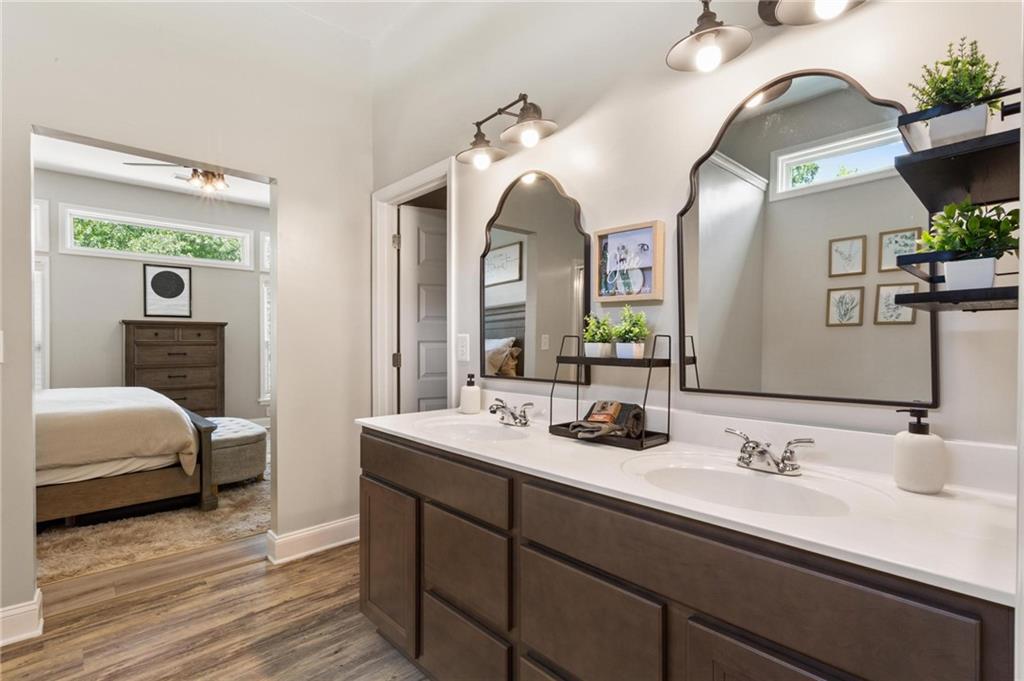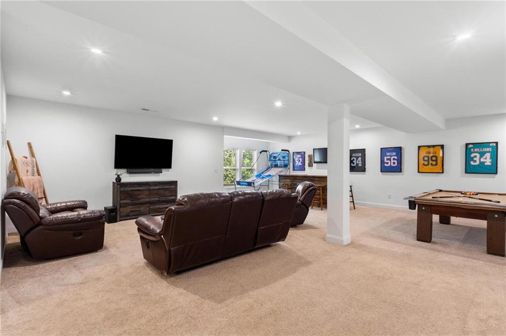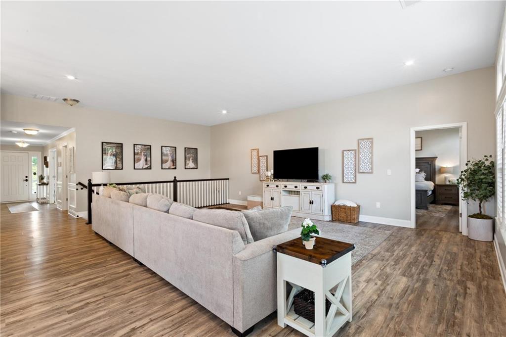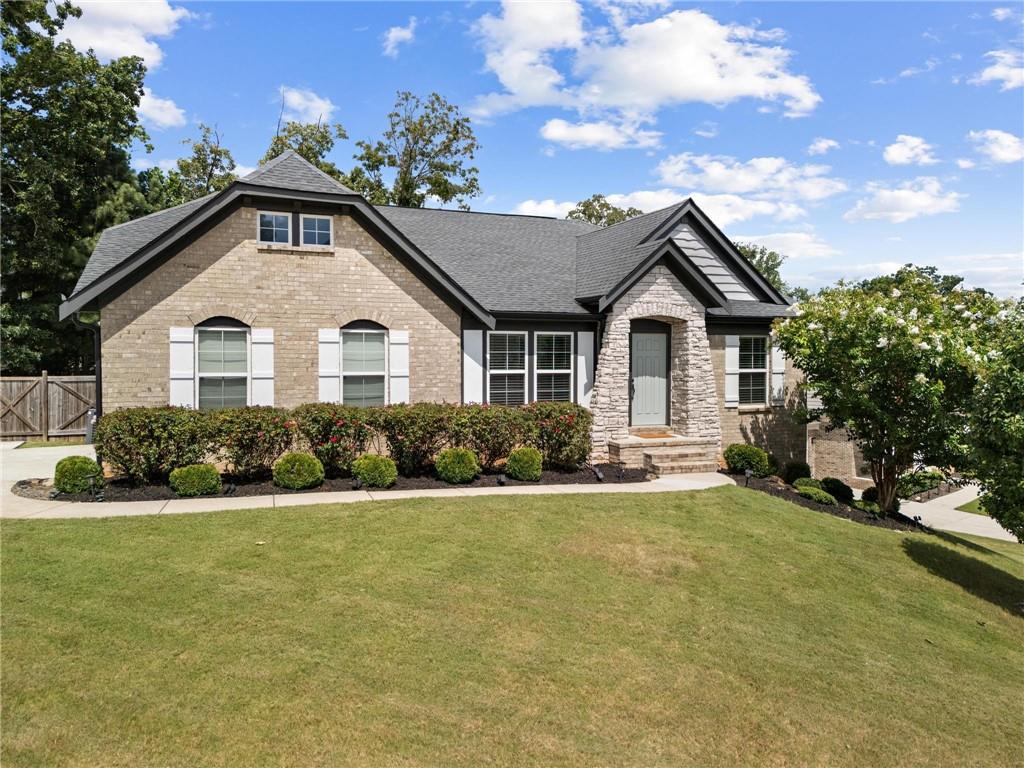 The home you have been waiting for is here!! Welcome Home to this beautiful like-new RANCH on a .3 acre corner lot located in the Towne Mill community offering desirable amenities, nearby access to Hickory Log Creek, and close proximity to Canton golf courses, shopping, dining, and the Mill on Etowah. This stunning home is truly a RARE FIND in this highly desirable area offering a spacious ranch floor plan with premium finishes throughout, a private two-level rear patio, and a finished basement with room to expand offering extra space that is hard to come by with a ranch floor plan! You will be in awe from the curb appeal before you even pull into the enlarged driveway as you see your home perched on top of the manicured front yard. Once make your way around the front walkway, you'll step into the home instantly stunned by all of the natural light beaming in through the rear windows lining the back of the home with a direct view to the recently refinished main level deck. The wide entry hallway and open concept offers a cozy & spacious feel as you enter into the huge family room, kitchen, and dining area. Prepare to fall in love with the high-end chef's kitchen including custom cabinetry, stone countertops, massive island, stainless steal appliances, farmhouse sink, designer tiled backsplash, and walk-in pantry - all with a direct view to the family room & back deck. This kitchen is a DREAM. Just a step away from the living room is the primary bedroom beaming with natural light with an en-suite bathroom featuring new flooring, double vanities, a separate shower/tub, and large walk-in closet. On the main level you will also find a secondary bedroom, a full bathroom, and bonus room enclosed with french doors making the perfect office, play room, or flex space. The open stairway will take you down to the finished basement that includes a huge second living area, full bathroom, and additional bedroom. To top it off, the basement also has a large unfinished area offering a ton or storage space or the ability to be finished out providing even more living space in the home. Access to the garage is conveniently located on the main level and the home is equipped with a Cleanstart laundry filtration system and Airmaster whole-home air filtration system! Head outside from the main or lower levels to an entertainers dream back yard including a recently refinished main level deck and large lower level stone patio including an underdeck drainage system offering both covered and uncovered space to utilize. Have I said enough? This home is an absolute GEM with truly rare qualities in one of the most desirable Cherokee County area that I know you'll quickly fall in love with. RUN, don't walk, to see this stunning home for yourself!