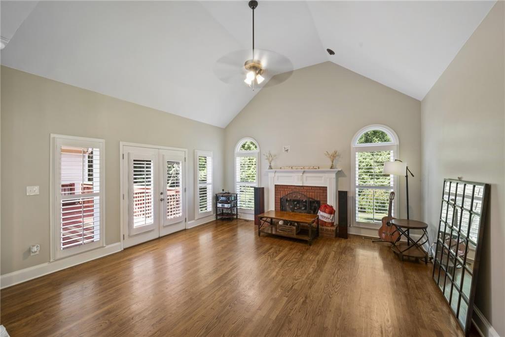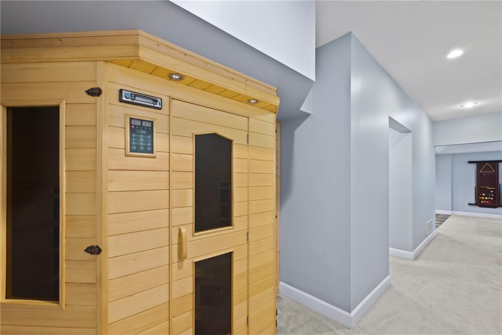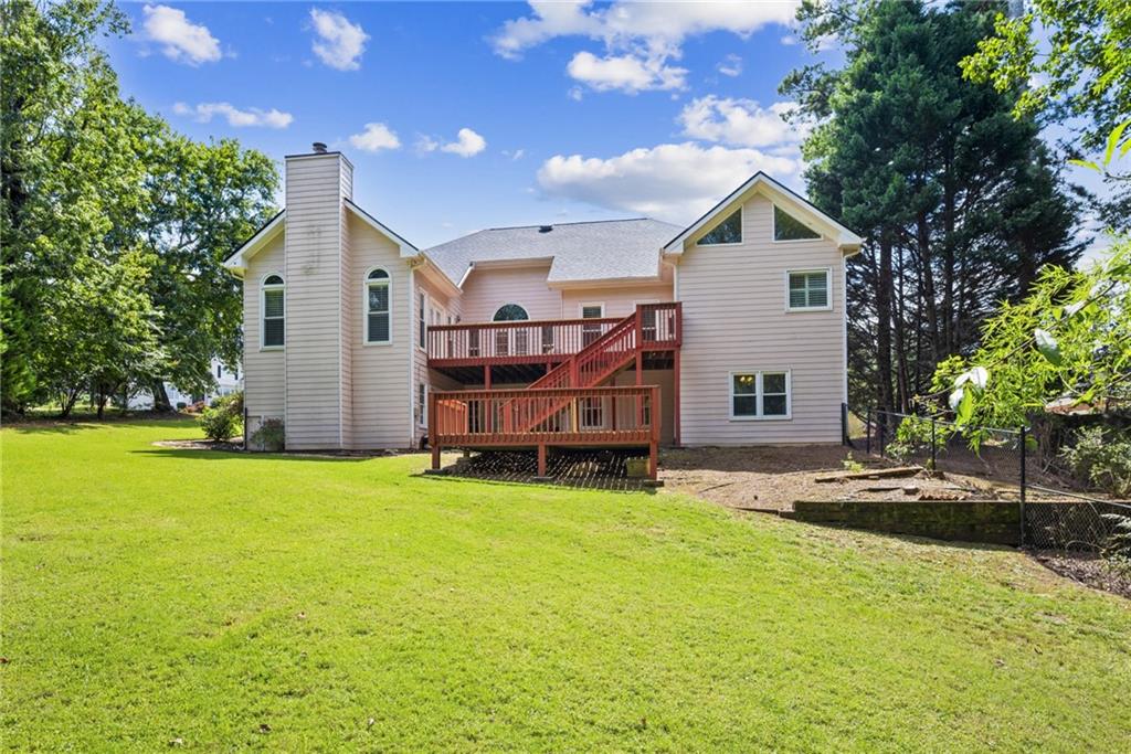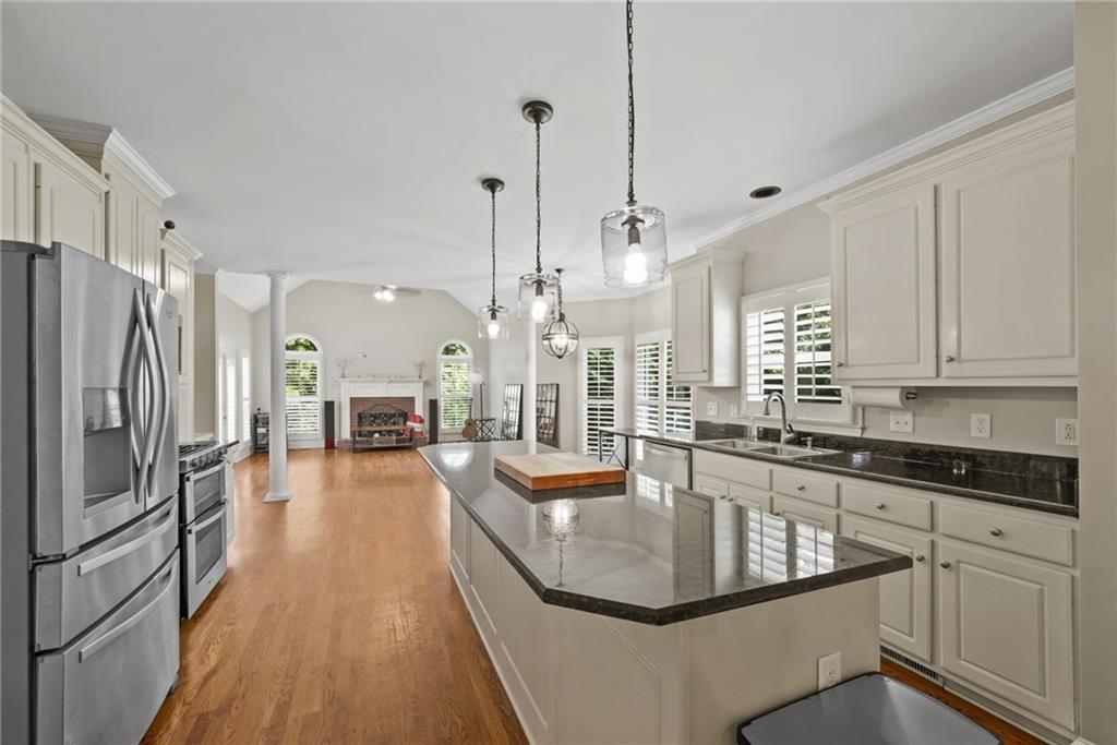 Beautifully upgraded ranch in a quiet cul-de-sac just minutes from I-85! This spacious home offers hardwood floors throughout the main level, an open granite kitchen with large island and fireside keeping room, and plantation shutters on all main level windows. The owner’s suite features trey ceilings, hardwoods, and a vaulted, spa-like bath with jetted tub and tile shower. Three additional bedrooms and a formal living/dining area complete the main level. Step out to two oversized decks overlooking a fenced backyard cleared for open enjoyment. Terrace level includes a full bar, slate floors, large bath with slate shower, sauna, and open recreation space—plus approximately 50% unfinished area perfect for a home theater, golf simulator, gym, or in-law suite. Major upgrades include a brand-new roof (June 2025) with lifetime warranty, windows replaced and under lifetime warranty, plantation shutters throughout main level triple sump pump system with battery backup, front step leveling with lifetime warranty, newer garage door/motor, and professional pest intrusion system. Don’t miss this rare opportunity—freedom to live without HOA restrictions and unbeatable location! Listing agent is also the property owner.