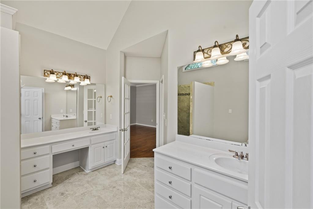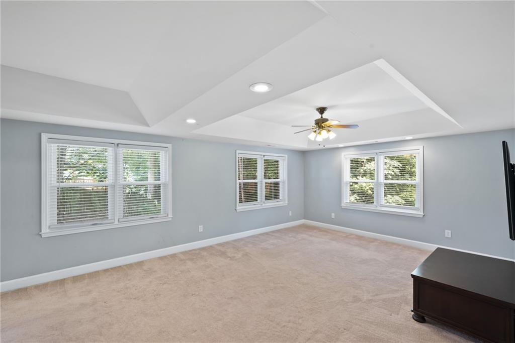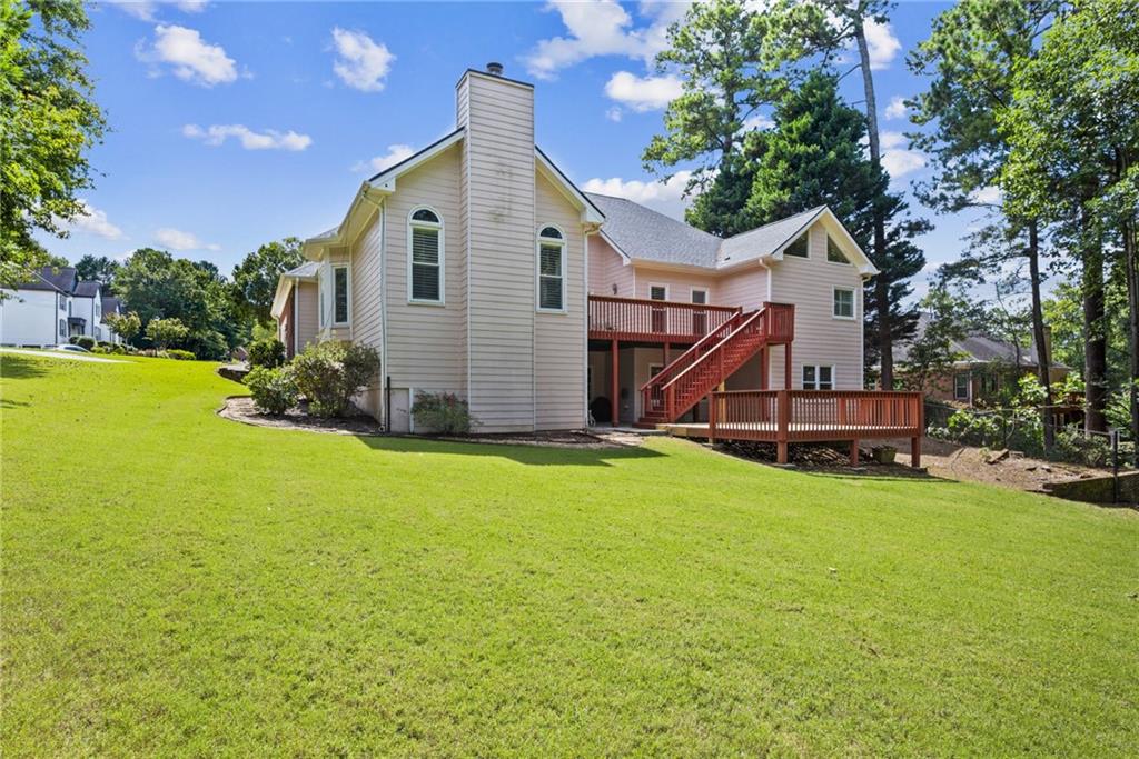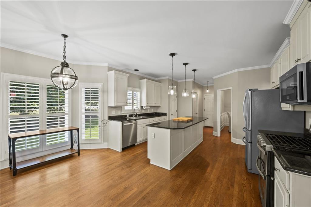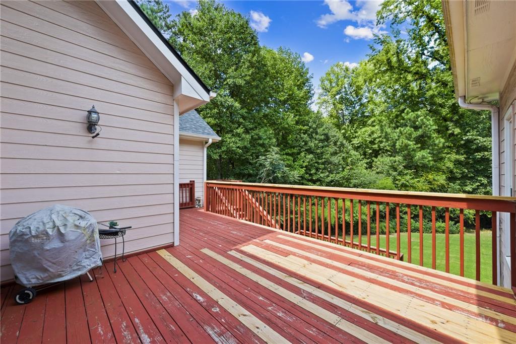 Beautifully upgraded ranch in a quiet cul-de-sac just minutes from I-85! This spacious home offers hardwood floors throughout the main level, an open granite kitchen with large island and fireside keeping room, and plantation shutters on all main level windows. The owner’s suite features trey ceilings, hardwoods, and a vaulted, spa-like bath with jetted tub and tile shower. Three additional bedrooms and a formal living/dining area complete the main level. Step out to two oversized decks overlooking a fenced backyard cleared for open enjoyment. Terrace level includes a full bar, slate floors, large bath with slate shower, sauna, and open recreation space—plus approximately 50% unfinished area perfect for a home theater, golf simulator, gym, or in-law suite. Major upgrades include a brand-new roof (June 2025) with lifetime warranty, windows replaced and under lifetime warranty, plantation shutters throughout main level triple sump pump system with battery backup, front step leveling with lifetime warranty, newer garage door/motor, and professional pest intrusion system. Don’t miss this rare opportunity—freedom to live without HOA restrictions and unbeatable location! Listing agent is also the property owner.