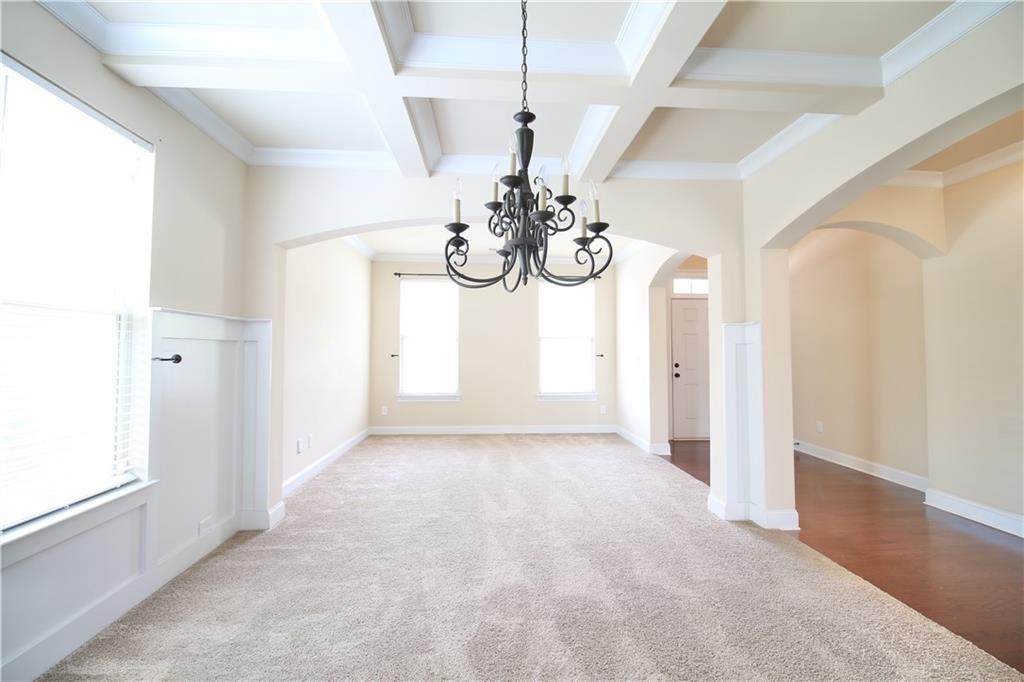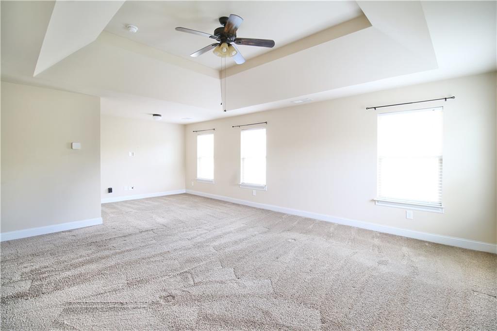 Refrigerator, Washer & Dryer Included. Brick Front Beauty on Corner Lot with A Bedroom & Full Bath on Main! This stunning 4-bedroom, 3-full-bath with loft home offering the perfect blend of comfort and functionality. Nestled on a fenced corner lot with a side-entry garage, this home greets you with timeless curb appeal and a charming front porch. Step inside the elegant 2-story home to find formal living and dining rooms enhanced by coffered ceilings and craftsman-style trim details. The island kitchen seamlessly opens to the family room, where a stacked stone corner fireplace and an abundance of natural light create the perfect gathering space. A bedroom and full bath on the main level offer convenience and flexibility for guests or multi-generational living. Upstairs, you’ll be wowed by the oversized loft – ideal as a second living room, media room, or play area. Retreat to the massive primary suite, complete with a sitting area, ENORMOUS walk-in closets, and a spa-like bath featuring a double vanity, tiled shower with glass enclosure, and plenty of space to unwind. Every bedroom includes walk-in closets, and a second oversized bedroom with sitting area feels like another primary suite. Enjoy outdoor living on the covered back patio and spacious fenced yard – perfect for relaxing or entertaining.