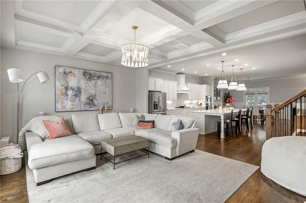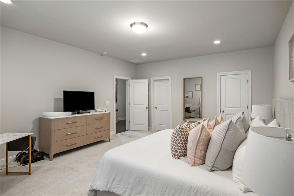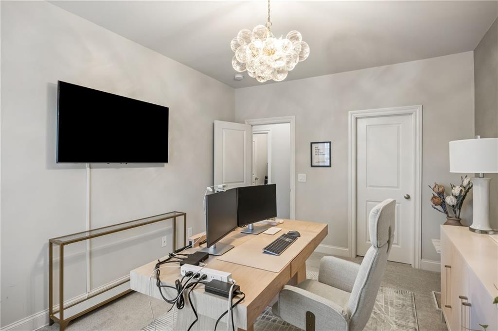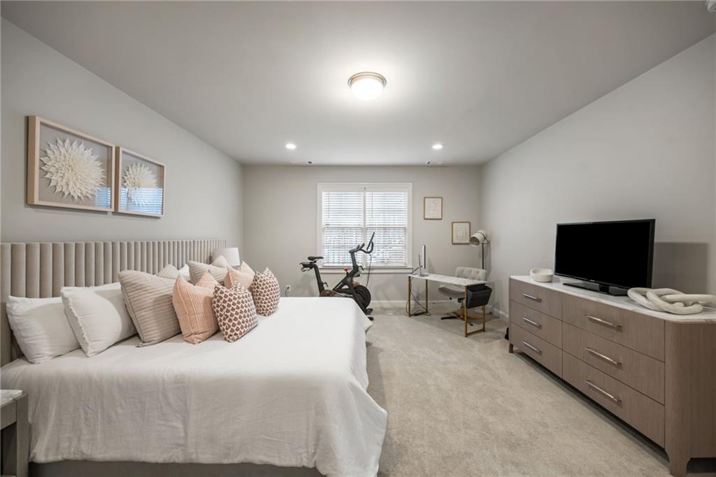Welcome to this exceptional end-unit townhome in the sought-after Skyland Brookhaven community, showcasing the largest floor plan available and one of the most desirable locations in the neighborhood—privately nestled among green space and just moments from Dresden Village, PDK, and a vibrant array of shops and restaurants. Inside, soaring ceilings and gleaming hardwood floors create a warm, inviting atmosphere, while an open-concept layout seamlessly connects the living, dining, and kitchen areas for effortless everyday living and entertaining. The family room features a gas fireplace flanked by custom built-ins and is bathed in natural light from expansive windows. The chef’s kitchen is a standout, complete with a generous quartz island, walk-in pantry, and ample space for casual dining or morning coffee. A Juliet balcony off the dining area and a stylish powder room complete the main level. Upstairs, the spacious primary suite is a true retreat, offering vaulted tray ceilings, additional windows exclusive to end units, and a spa-inspired bath with dual vanities, a soaking tub, and a separate glass-enclosed shower. The expansive walk-in closet features custom-designed built-ins, maximizing both storage and organization. The terrace level includes a versatile bonus room with a full bath—ideal for a guest suite, home office, or second living area. A rare blend of space, light, and location, this home is a standout opportunity in Brookhaven.
