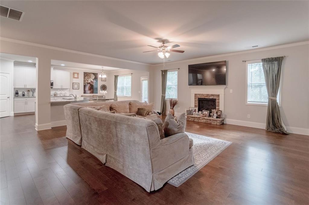 Welcome to your next home, this five-bedroom, four full bathroom, meticulously maintained home (by an owner with impeccable taste and attention to detail), a true gem in a vibrant neighborhood. The home features a bedroom and a full bathroom on the main level. The oversized owner's suite sits in its own corner offering an in-home space anyone will be happy to come home to. The bedroom features two sizable walk-in closets and a beautiful bathroom with a double vanity. Upstairs includes three additional bedrooms, one with its own ensuite bathroom and the other two bedrooms have a shared jack-and-jill bathroom between them. The loft upstairs offers an additional in-home lounging or entertainment space. If you enjoy the outdoors, the home features two back patios (one off the main level and one off the terrace level). If the main two levels aren't enough, you have the full unfinished 1,806 square foot basement, which can add to your living space. The possibilities are endless with this home! The home is within close walking distance to the community pool and clubhouse, making utilizing the amenities easy and convenient. To sweeten up this deal, the owner is willing to include some of the furniture as well as a car! Enjoy a rare, stunning view of Tyler Perry’s compound from this immaculate, move-in-ready home in one of Douglasville’s most sought-after communities. Tributary Village offers year-round activities — from holiday porch crawls, book clubs, and food truck nights to swim/soccer lessons, Screen on the Green, and more.