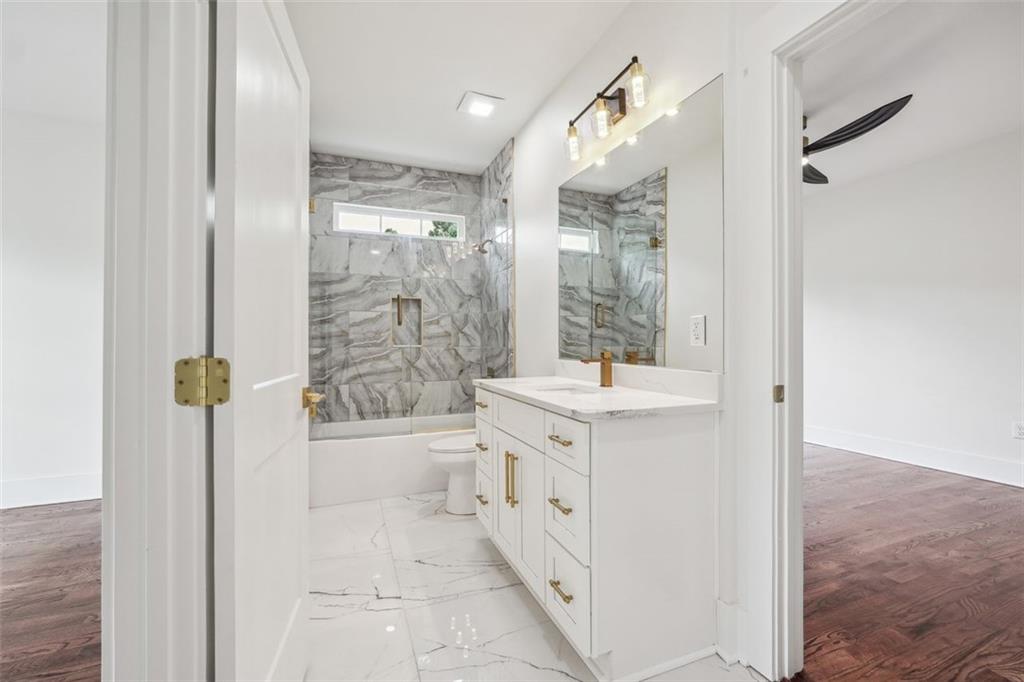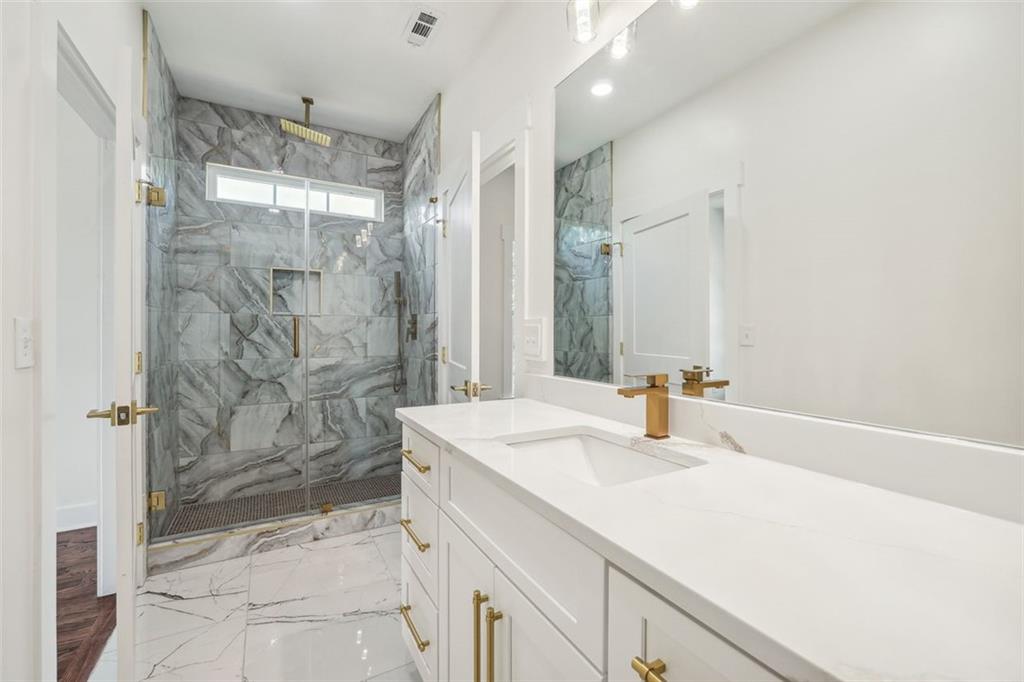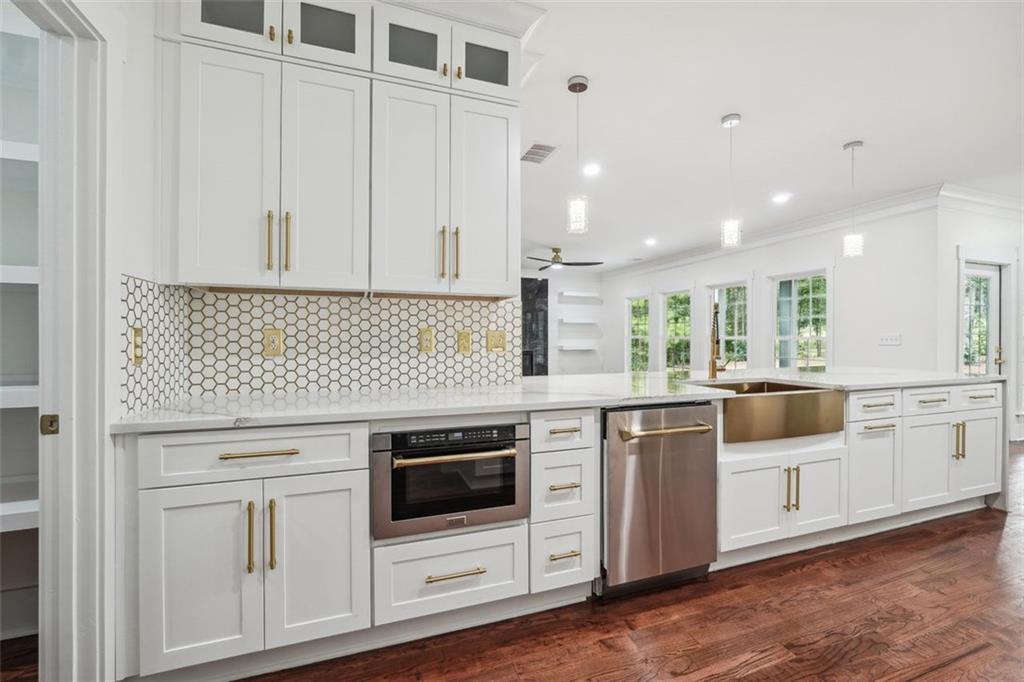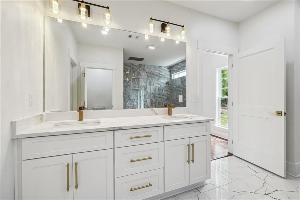 Enter into instant equity with this home! Classic southern charm beautifully marries with chic style and modern upgrades in this fully renovated home nestled within the coveted Hampton Mills! A two tiered, rocking chair, front porch greets you as you approach, perfect for sipping your morning coffee as you gaze across your well-manicured lawn. Inside warm, glossy hardwoods beautifully contrast with crisp white walls and offer a sense of timeless luxury. An open living area showcases custom bookshelves, a striking fireplace and tall ceilings. Overlooking the living area is your new chef's kitchen! Delight in discovering delectable delicacies within its spacious interior, quartz counters, brand new stainless steel appliances, farmhouse sink and chic backsplash. A large pantry with custom shelving and laundry room with sink and counters are the icing on the cake! From the kitchen step outside onto the upper tier of a large, covered patio. Enjoy crisp fall mornings curled up with a book while taking in the lush mature trees of your backyard. The hardwoods continue upstairs into the spacious bedrooms. A stunning owner's ensuite boasts an enviable marble, walk-in shower, with the secondary bathrooms showcasing the same elegant tile work. A second laundry room and large two car garage finish off the immaculate intentional touches within this home. Located within close proximity to shopping, Arbor Place Mall, SweetWater Creek Park, eateries, and I-20! Book your showing today and discover an idyllic suburban life within Douglasville!