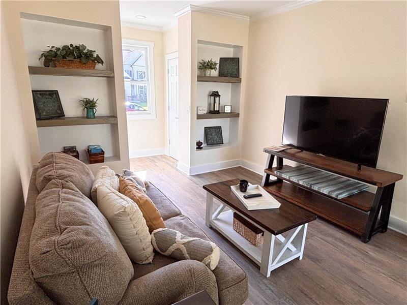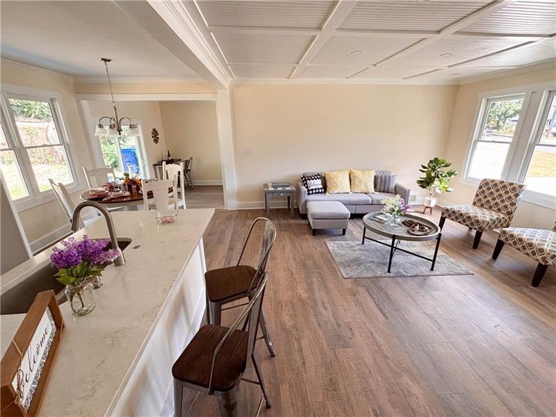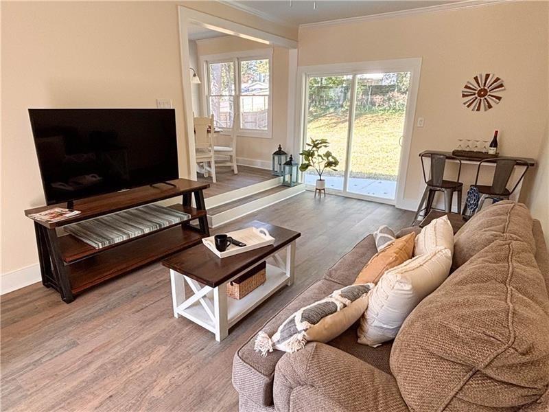 Come see this beautiful home in Brookhaven, GA! This fully remodeled 3bed/2baths ranch sits on a nice level lot, with patio and private backyard. A perfect atmosphere for those looking for peace and light, the multiple windows throughout the house allow the natural sunlight to fill every corner, creating a warm and serene environment. Upon entering from the front porch, you will be greeted by a welcoming living area offering coffered ceilings and recessed dimmable lights, that flows harmoniously to the open kitchen, with breakfast bar, white cabinets and floating shelves, a dining area overlooking the dining/family room, featuring built in shelves and two convenient storage closets. Every space of the house, including the three bedrooms and both bathrooms are equipped and planned with modern and functional details, neutral colors and open spaces to provide comfort and best use of space without sacrificing style. This home can provide a perfect place for family/friends gatherings and cozy quiet evenings to relax at the end of each day. The outdoors space is perfect for enjoyment as your own little corner, whether it's for a morning coffee or to enjoy an afternoon with the family, this home has everything you need to live in comfort and style. Don't miss the opportunity to be part of this wonderful property in Brookhaven! Come and discover everything this home has to offer.
